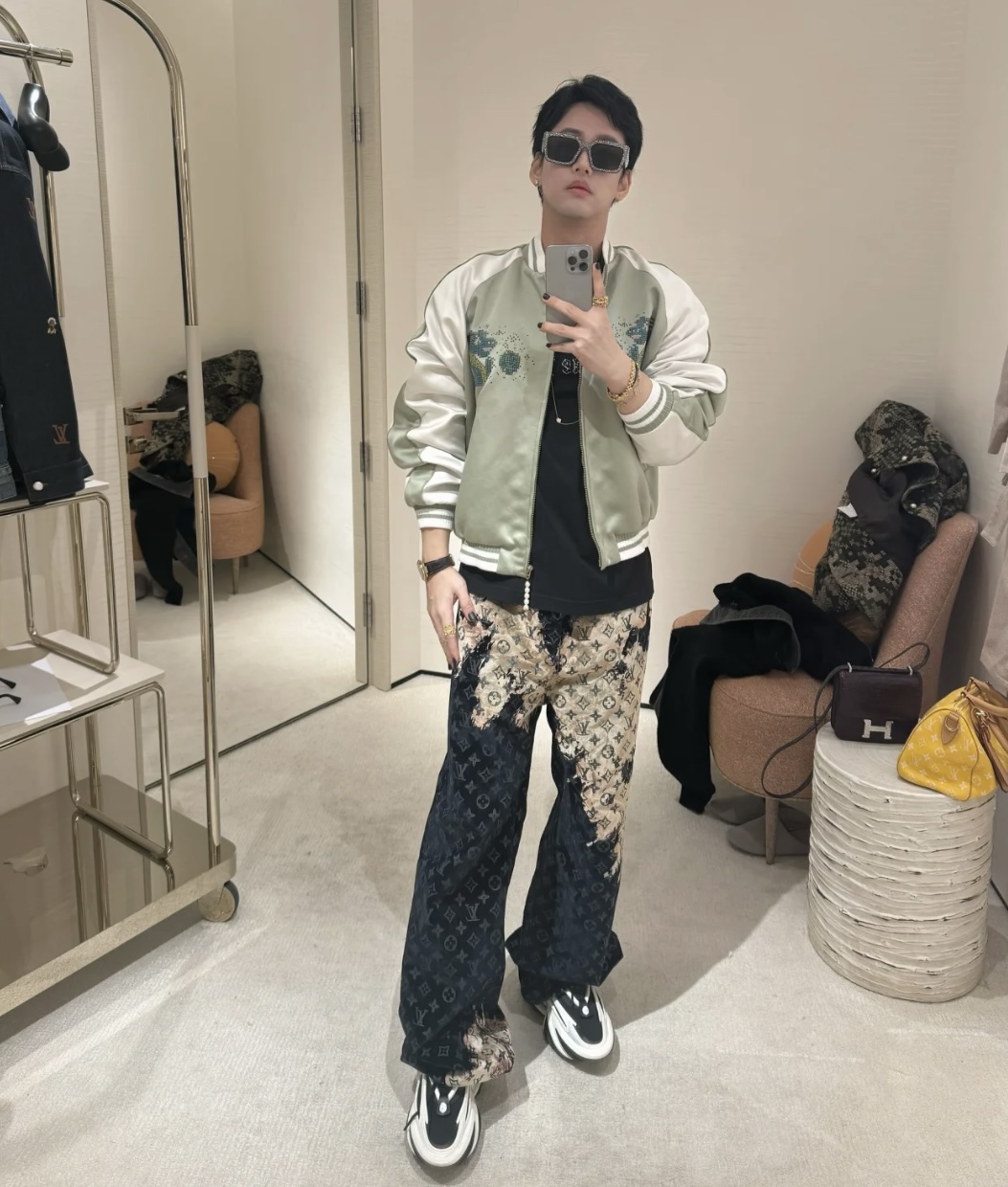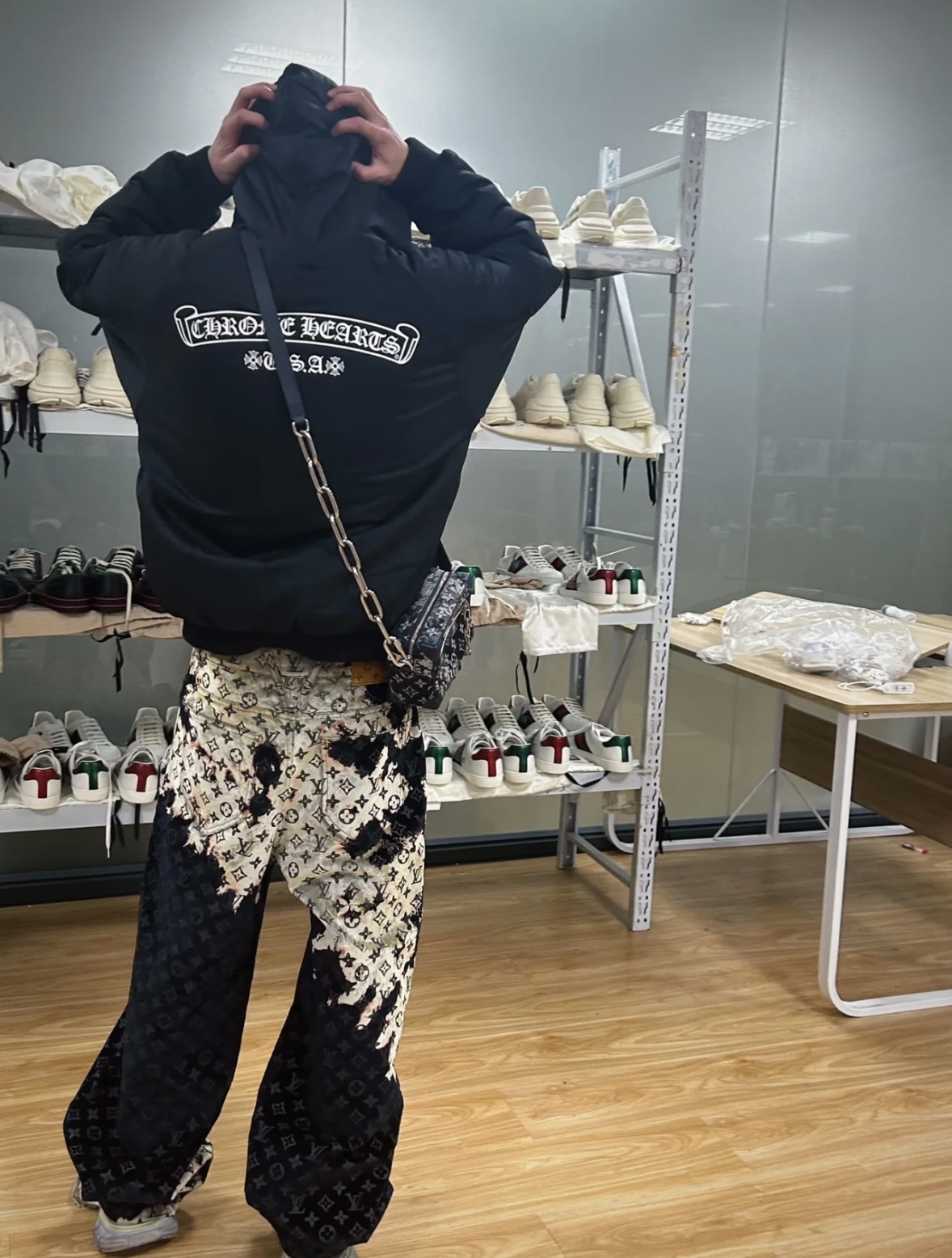 Louis Vuitton路易威登24SS 篝火植绒牛仔长裤 上身效果#