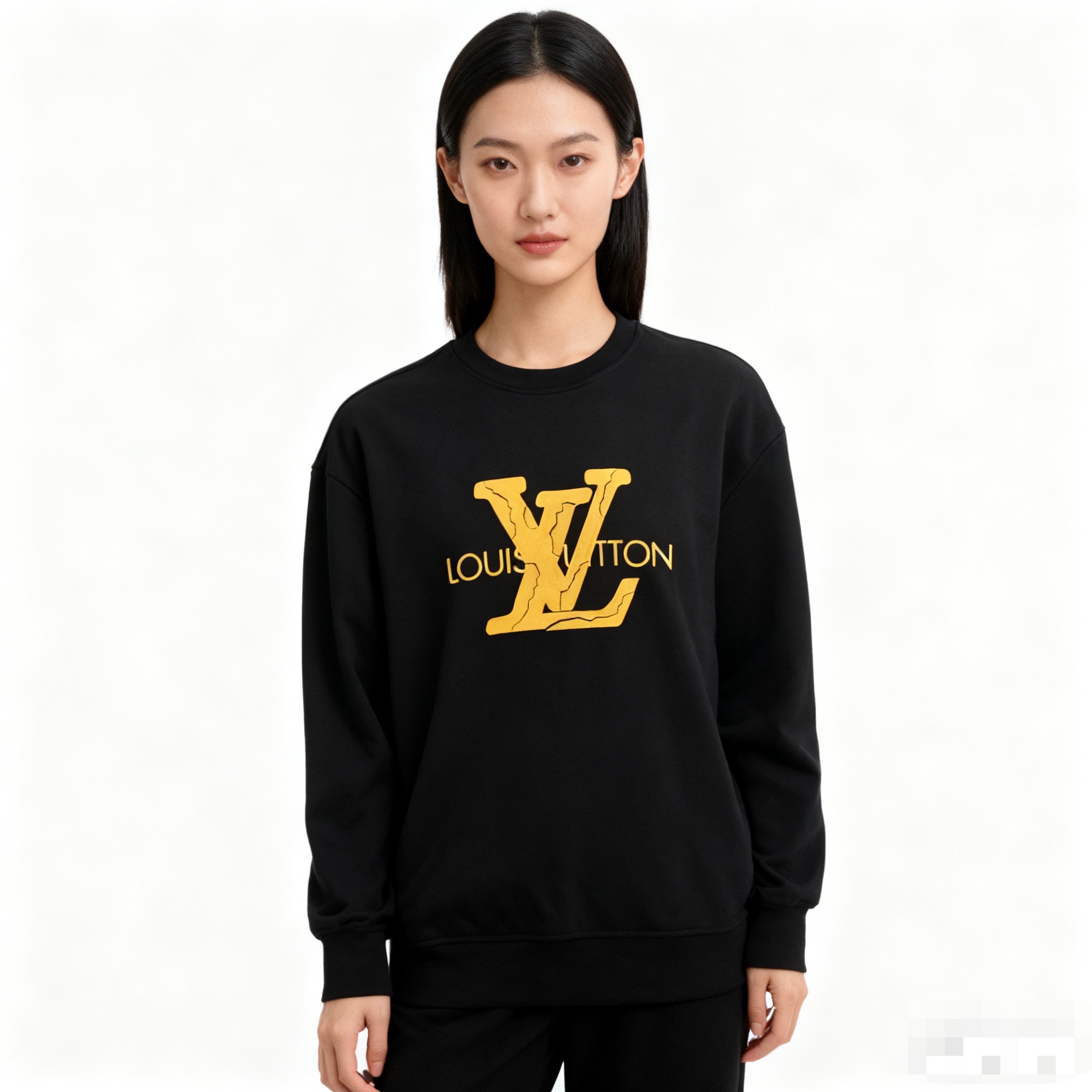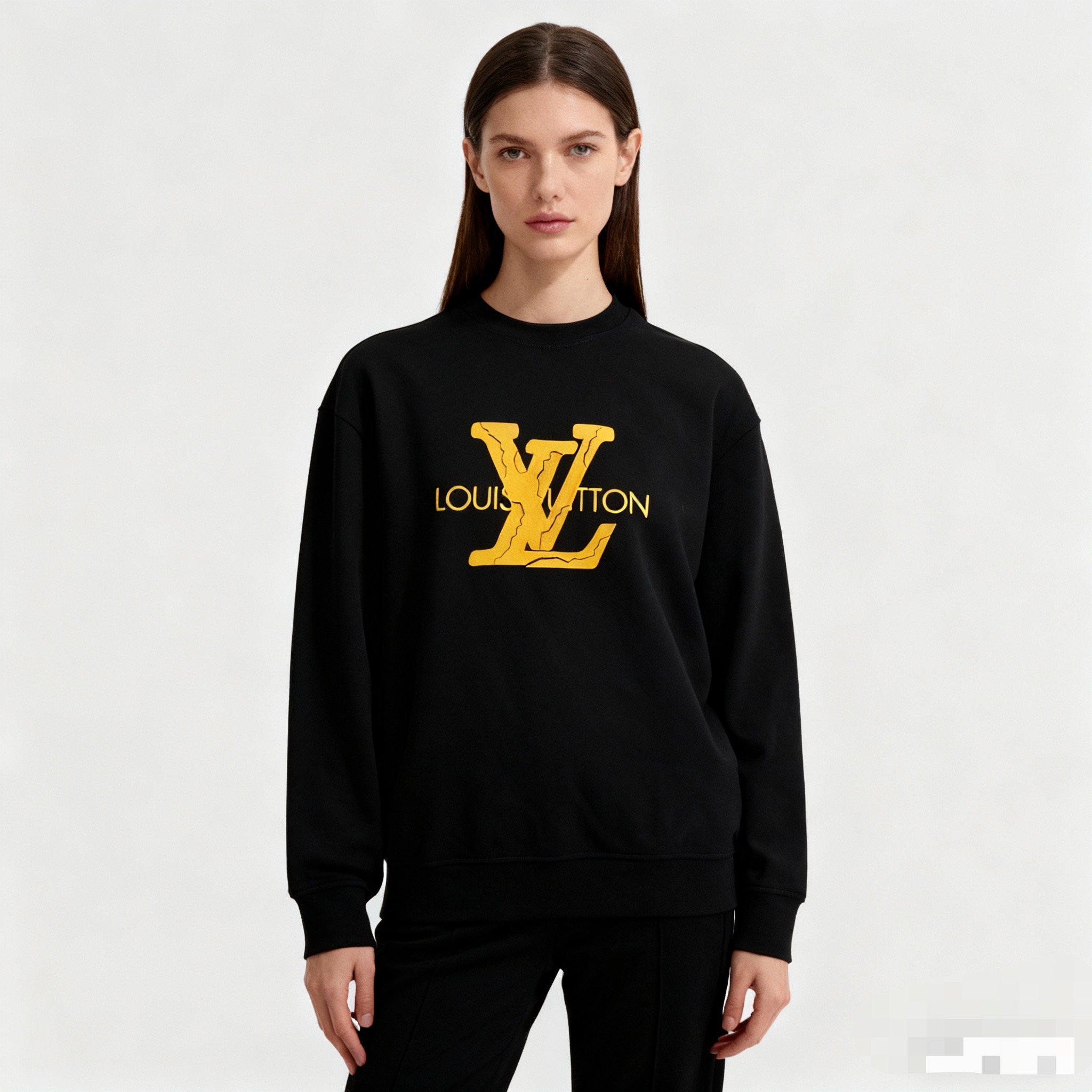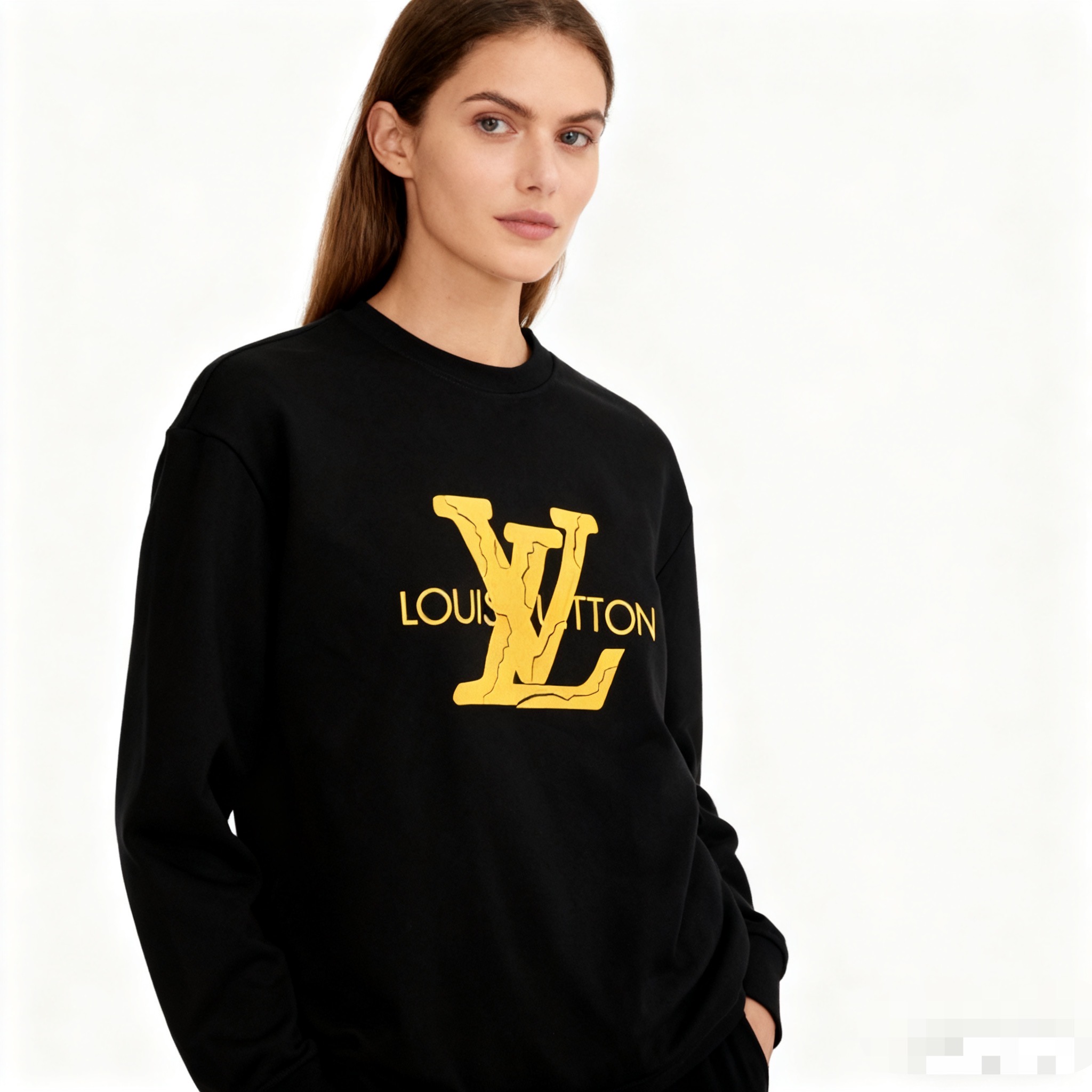 #Louis Vuitton/路易威登 25Fw 立体logo印花圆领卫衣上身效果
