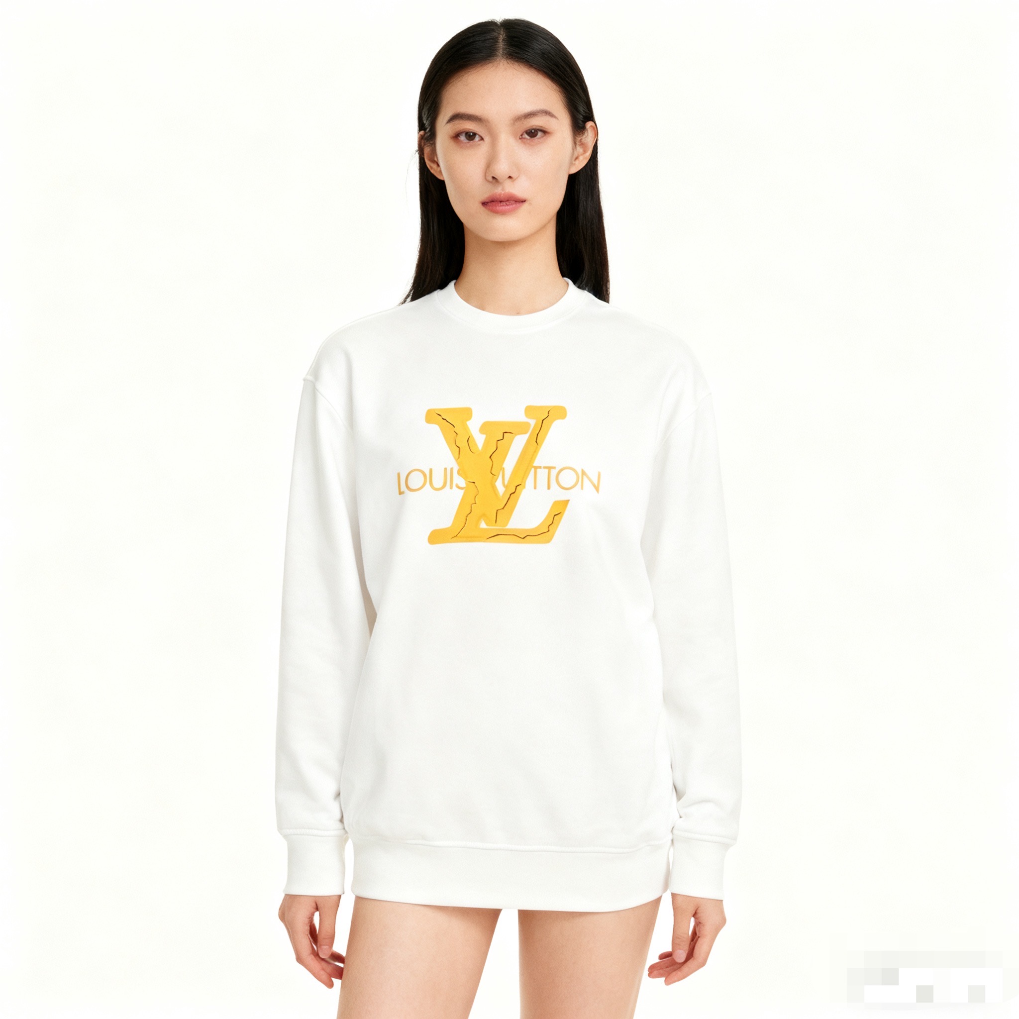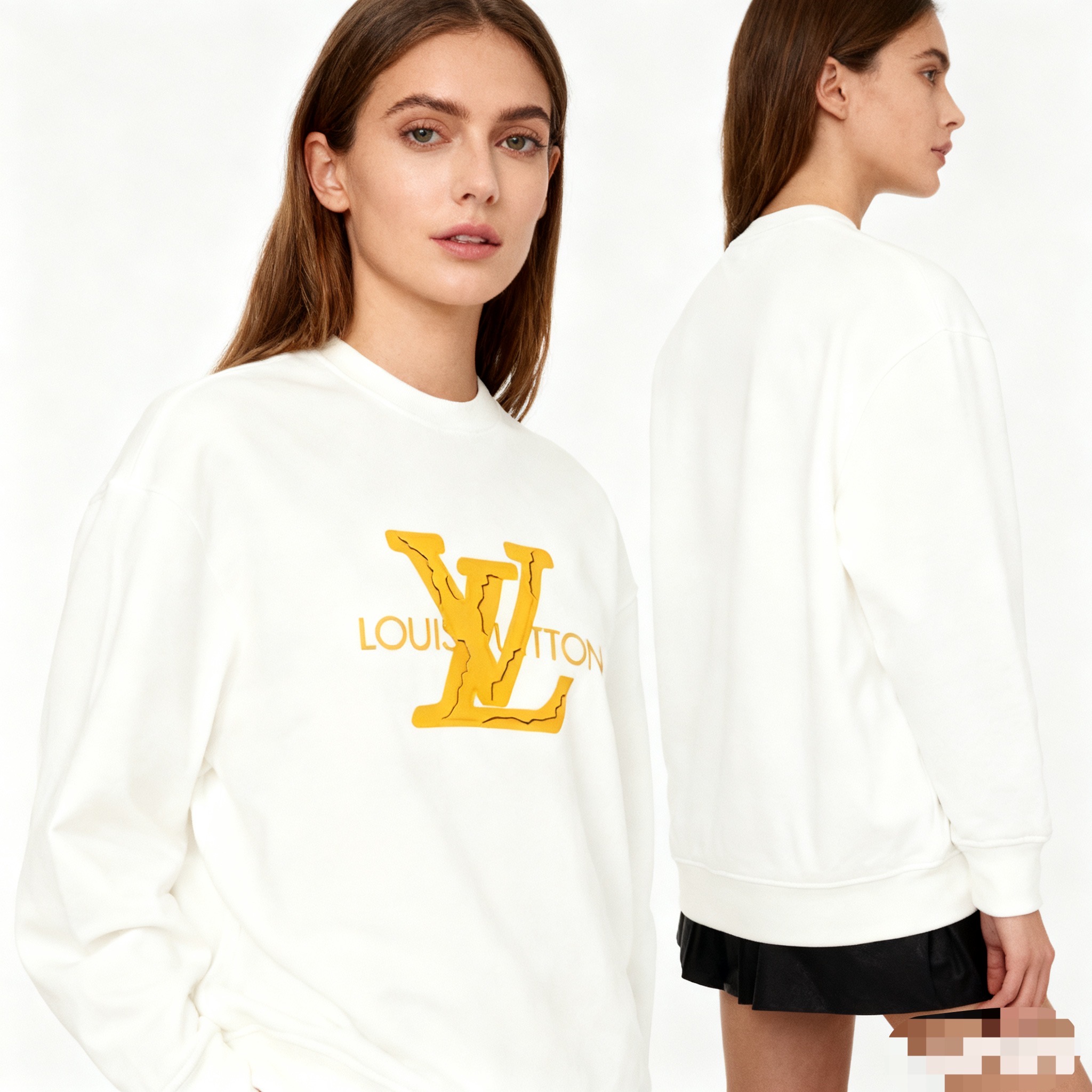 #Louis Vuitton/路易威登 25Fw 立体logo印花圆领卫衣上身效果