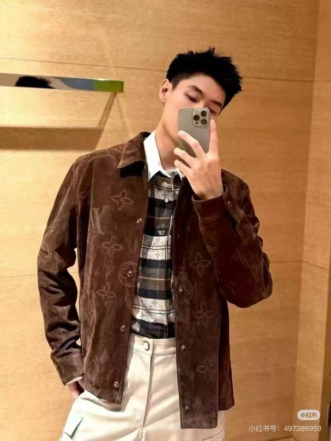 LOUIS VUITTON LV 大花刺绣麂皮外套 上身效果#