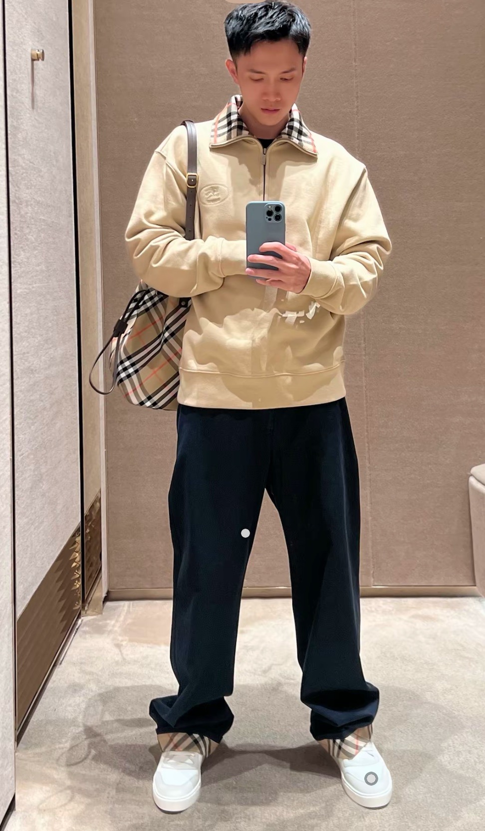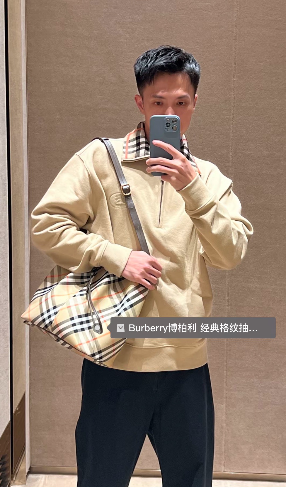 #Burberry/巴宝莉 格纹领半拉链卫衣上身效果