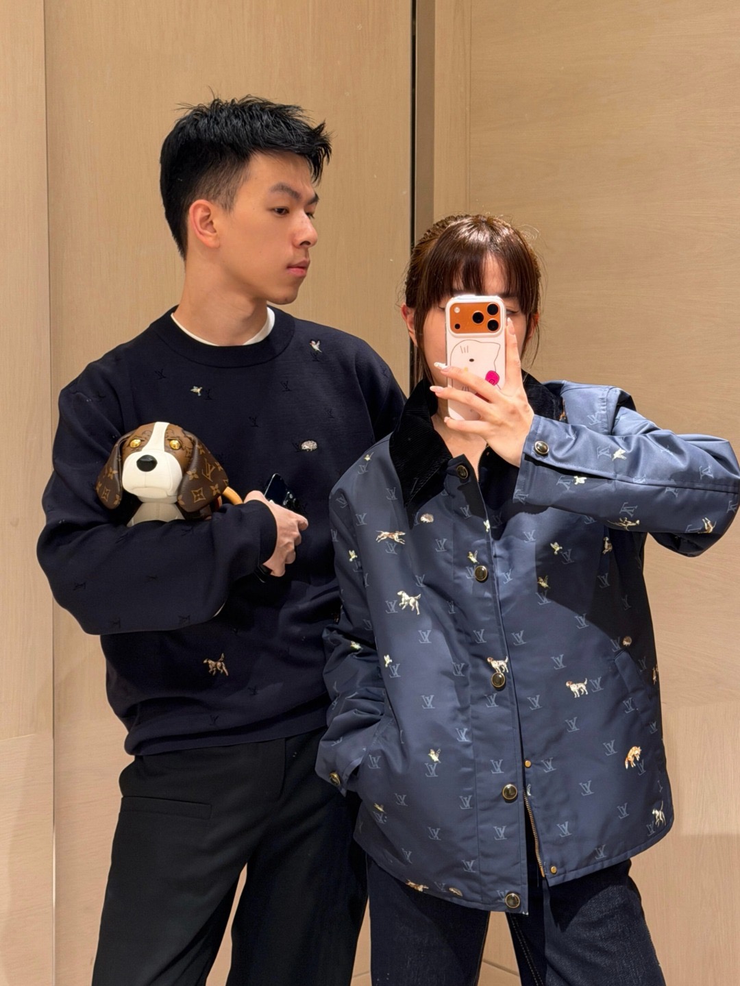 #Louis Vuitton/路易威登 动物满印灯芯绒翻领夹克外套上身效果