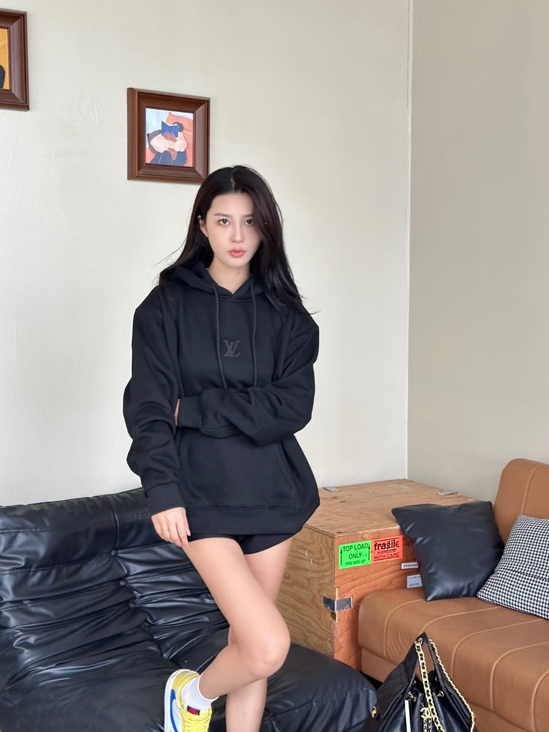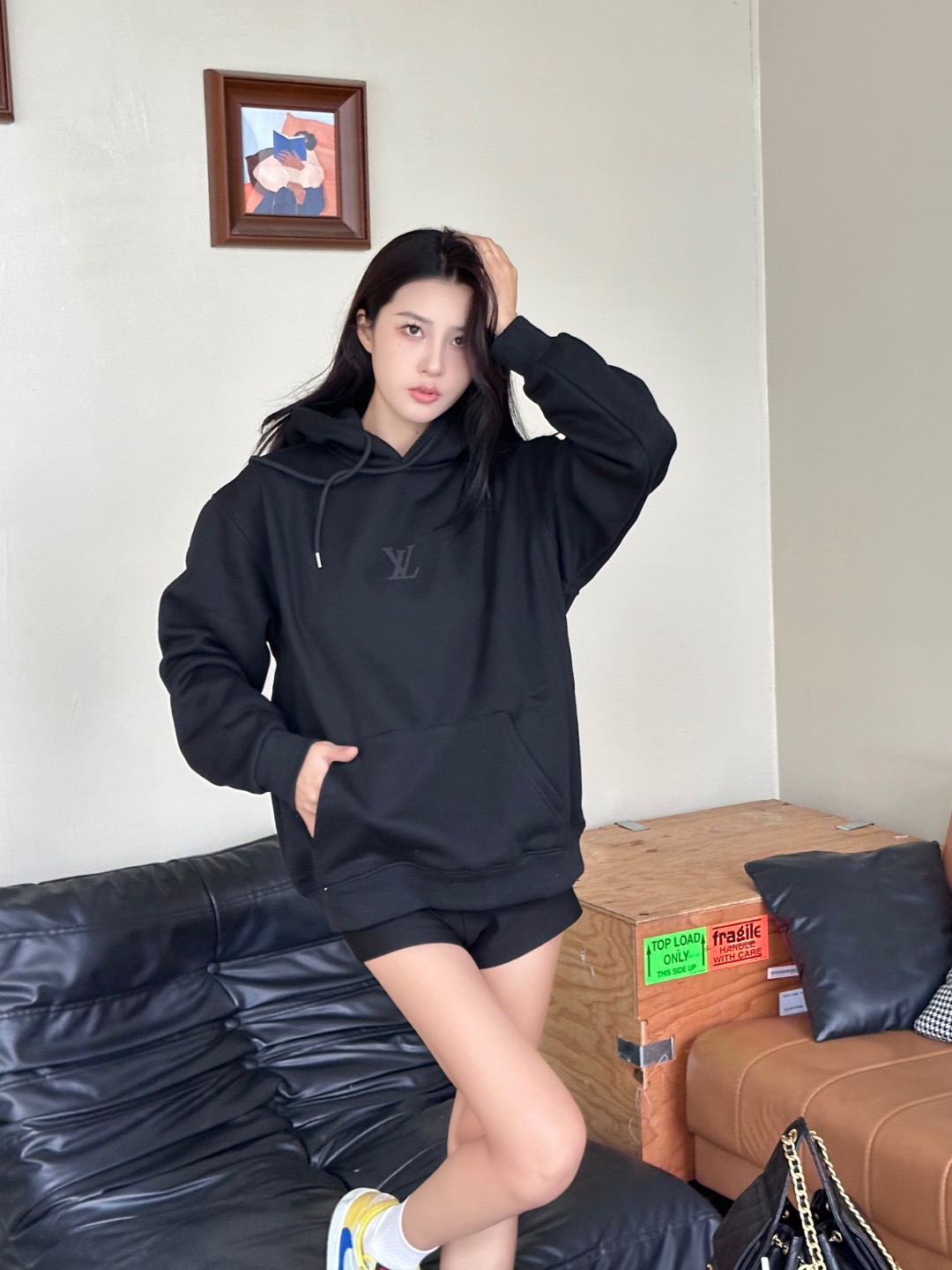 #Louis Vuitton/路易威登 25Fw 发泡小标连帽卫衣上身效果