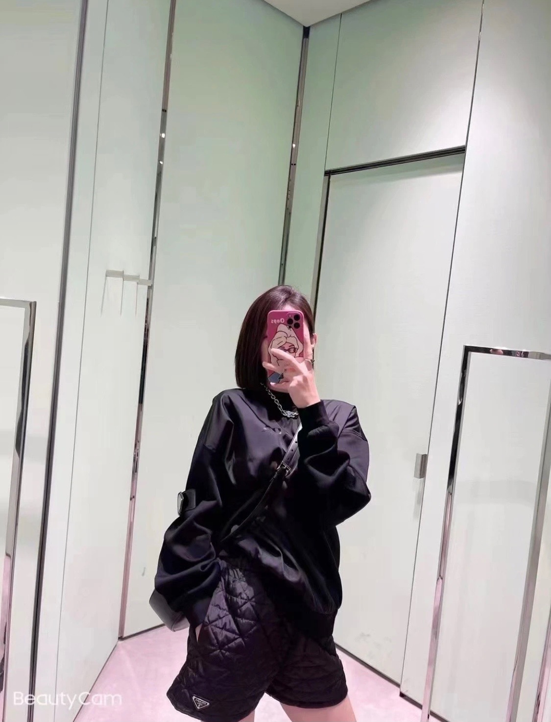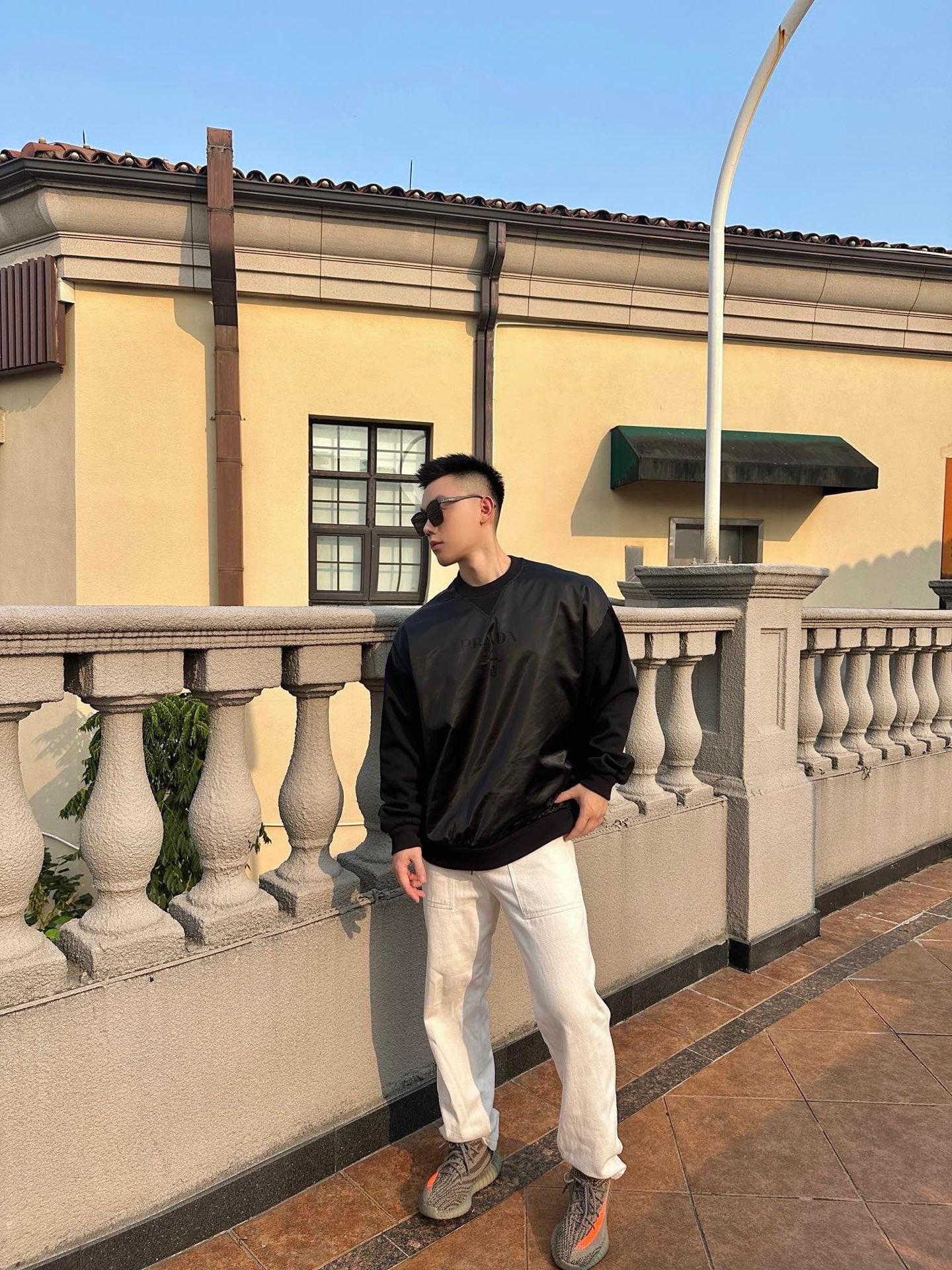 #Prada/普拉达 25Fw 字母logo提花前幅尼龙拼接卫衣上身效果