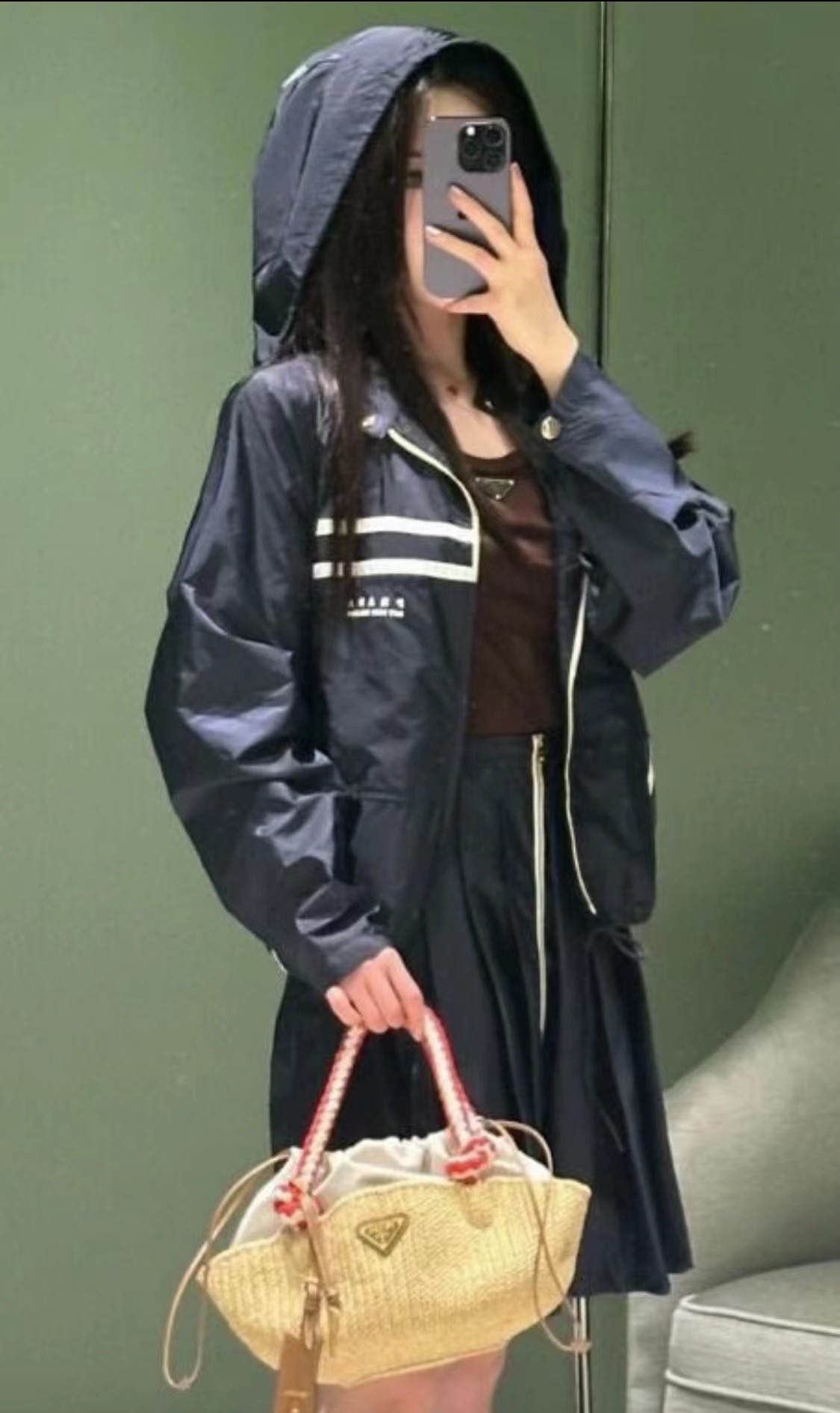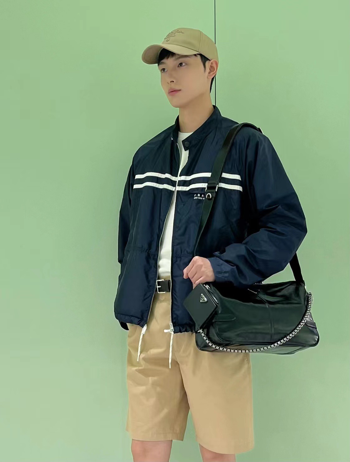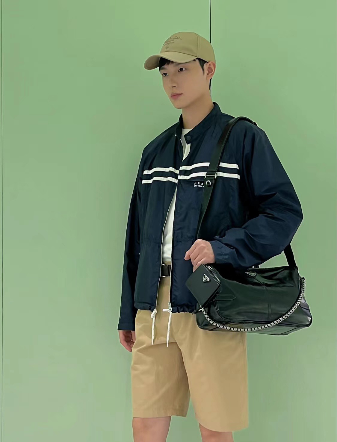 #Prada/普拉达 25Fw 徽标印花尼龙夹克外套上身效果