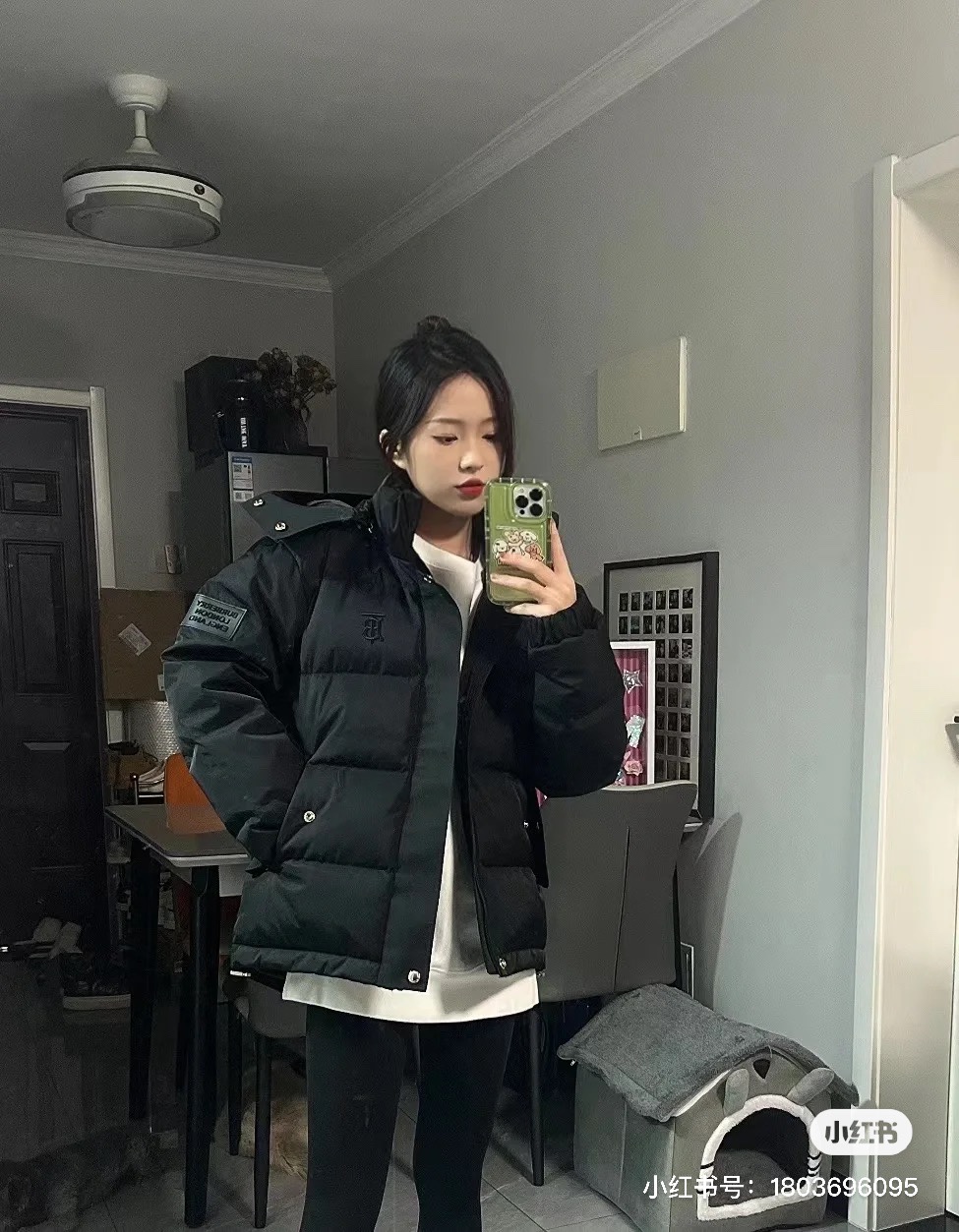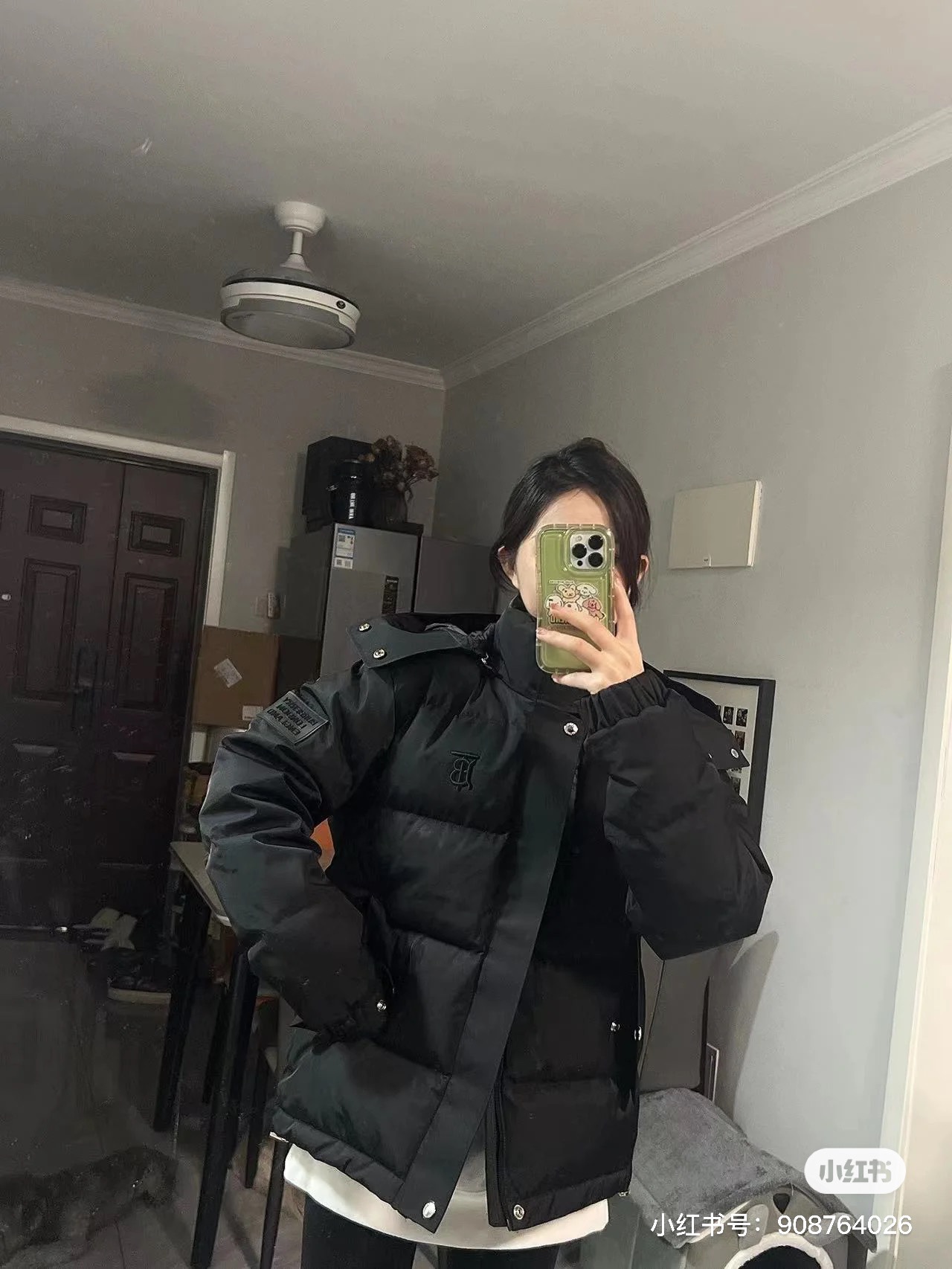 #Burberry/巴宝莉 25Fw刺绣小标立领连帽羽绒服上身效果