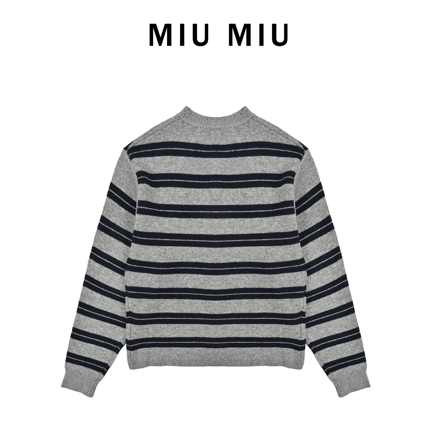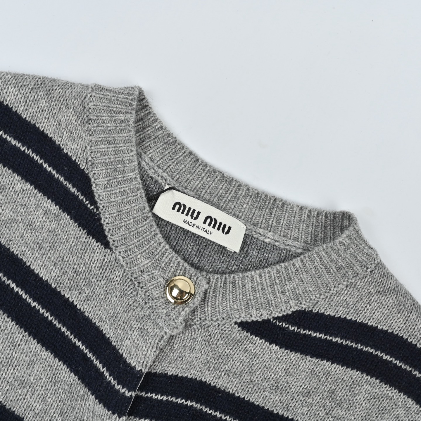 本地自取💰400 MIU MIU 24FW MIU灰白条纹开衫外套 灰黑条纹是永不过时的经典组合 百搭且耐看 不同于传统学院风规整的条纹设计 这款开衫采用宽松版型 对各种身材包容度极高 无论是单穿还是与其他单品叠穿 都能轻松营造随性又有型的时尚感 门襟处的金色纽扣是整体设计的点睛之笔。这些纽扣不仅实用 更在灰黑主色调中增添了一抹精致亮点 视觉上毫不浮夸 却足够提升整体造型的质感 采用有一定厚度的针织面料 不是普通的薄款 使得整体廓形更加挺括 衣长设计经过精心考量 正好便于搭配各种下装 无论是高腰裙还是阔腿裤 都能轻松驾驭 003 SIZE:36-42