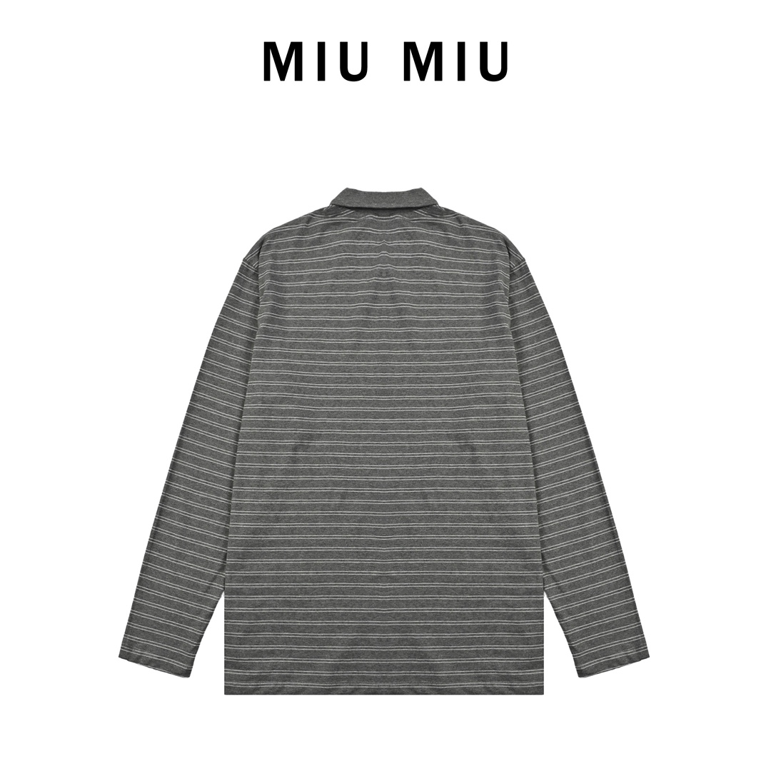 本地自取💰210 MIU MIU 25SS 条纹识标翻领Polo衫长袖T恤 210克定织定染32支全棉双纱!对条剪裁!胸前字母徽标贴布!定制贝壳纽扣!慵懒随意!宽松版型! 003 尺码:S-XL