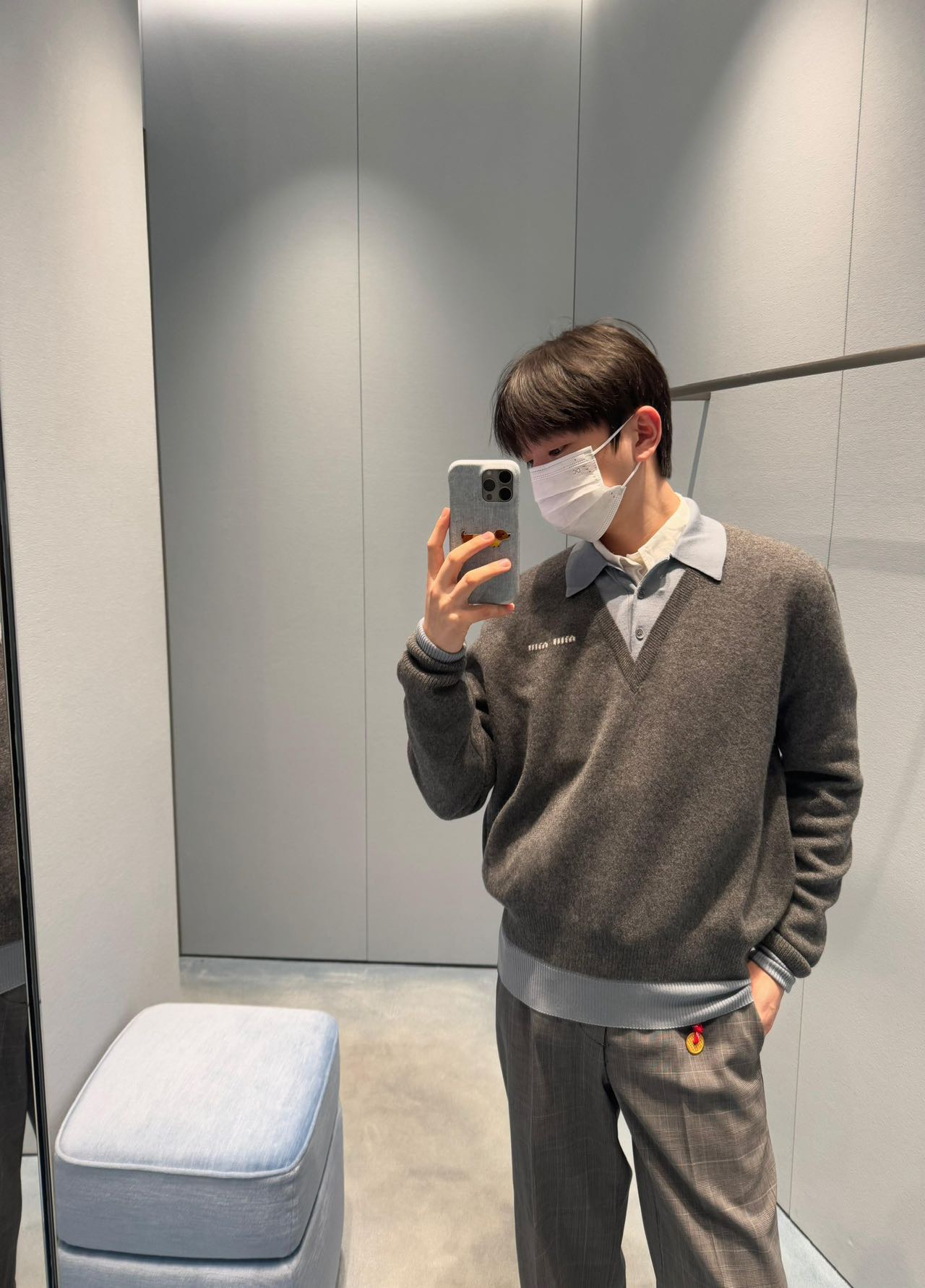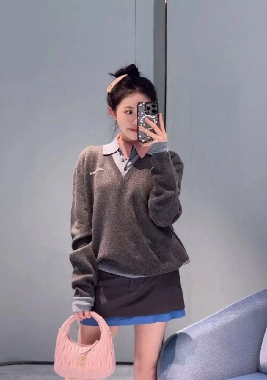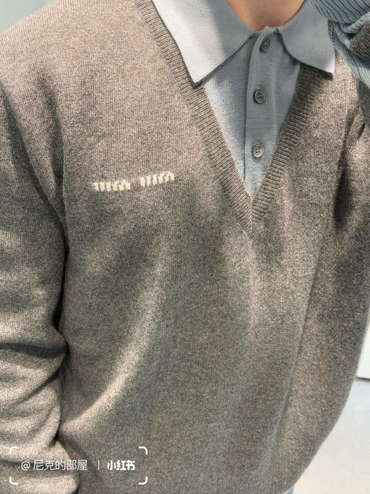 MIU MIU 提花徽标假两件羊绒针织POLO长袖