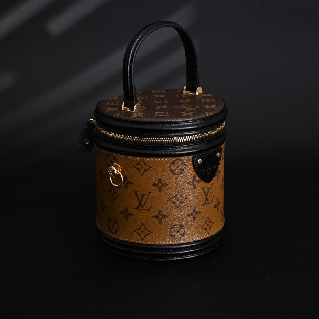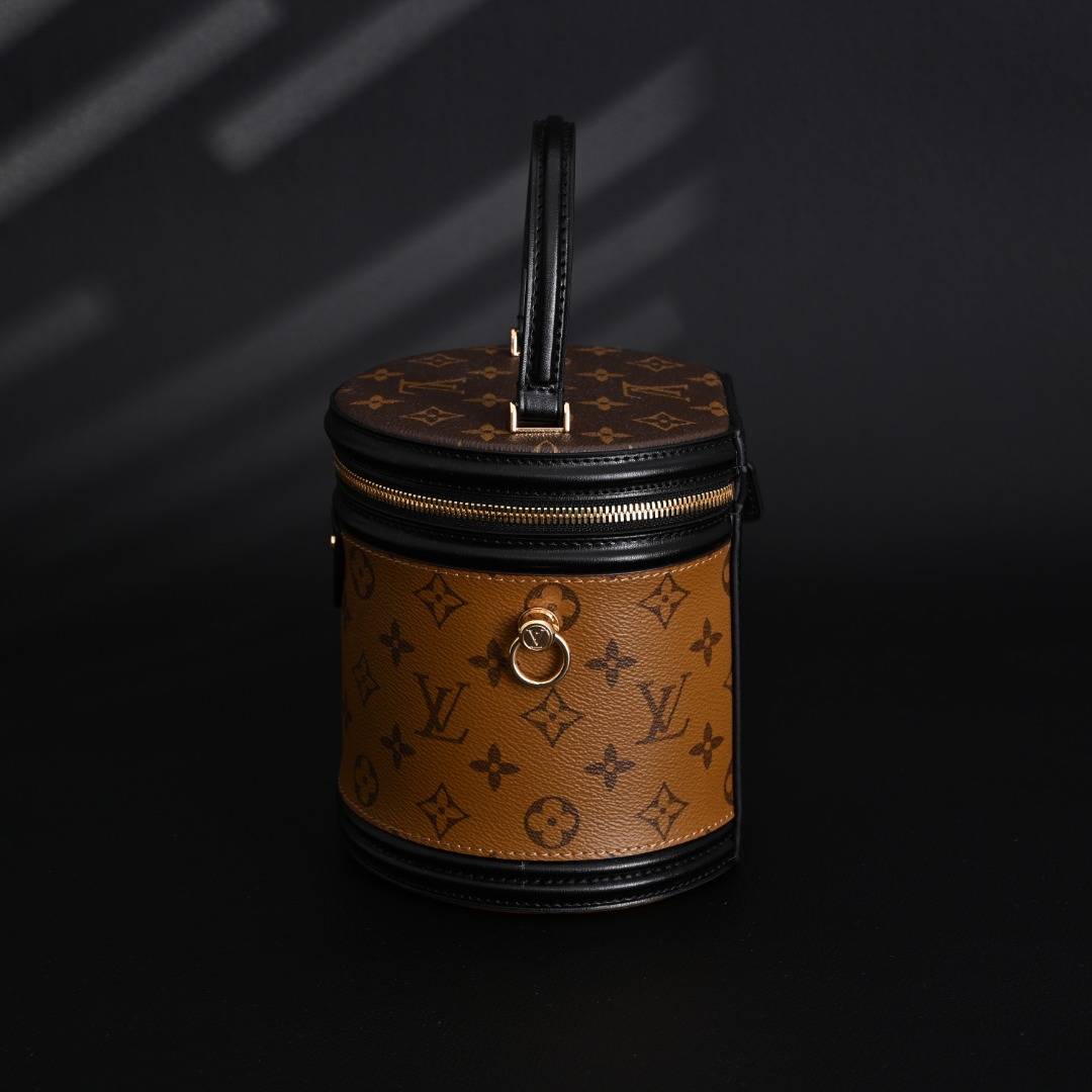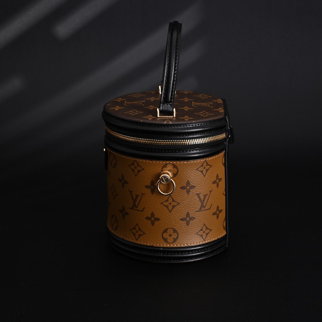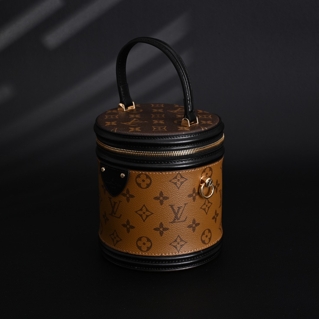 本地自取💰360 LOUIS VUITTON LV Cannes 老花拼色圆筒水桶包化妆箱 小号 #原单版本 客供进口五金件,采用真空电镀的工艺表面光滑细腻、饱满圆润重量感十足不同角度看完全没有任何瑕疵自然沉稳、不易氧化褪色。 Size:15*17*15 LV包包