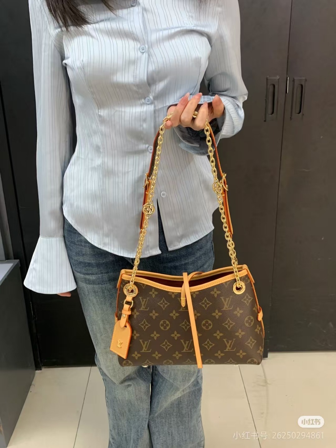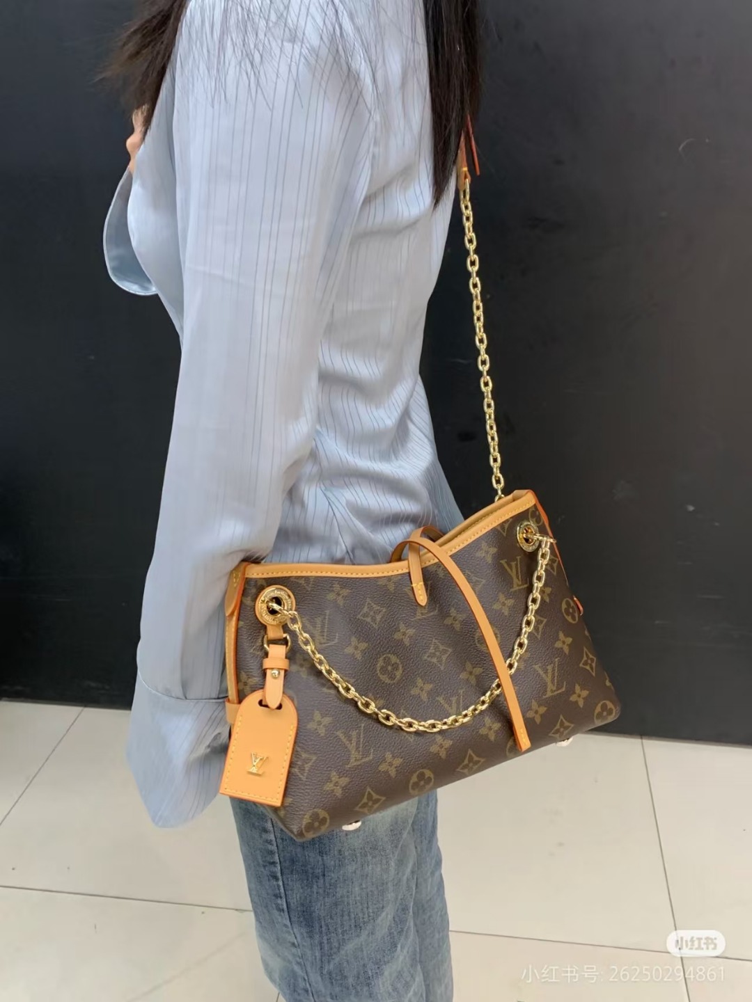 Louis Vuitton LV 路易威登单肩包经典老花帆布CARRYALL BB链条包新款M13014 上身参考 LV包包