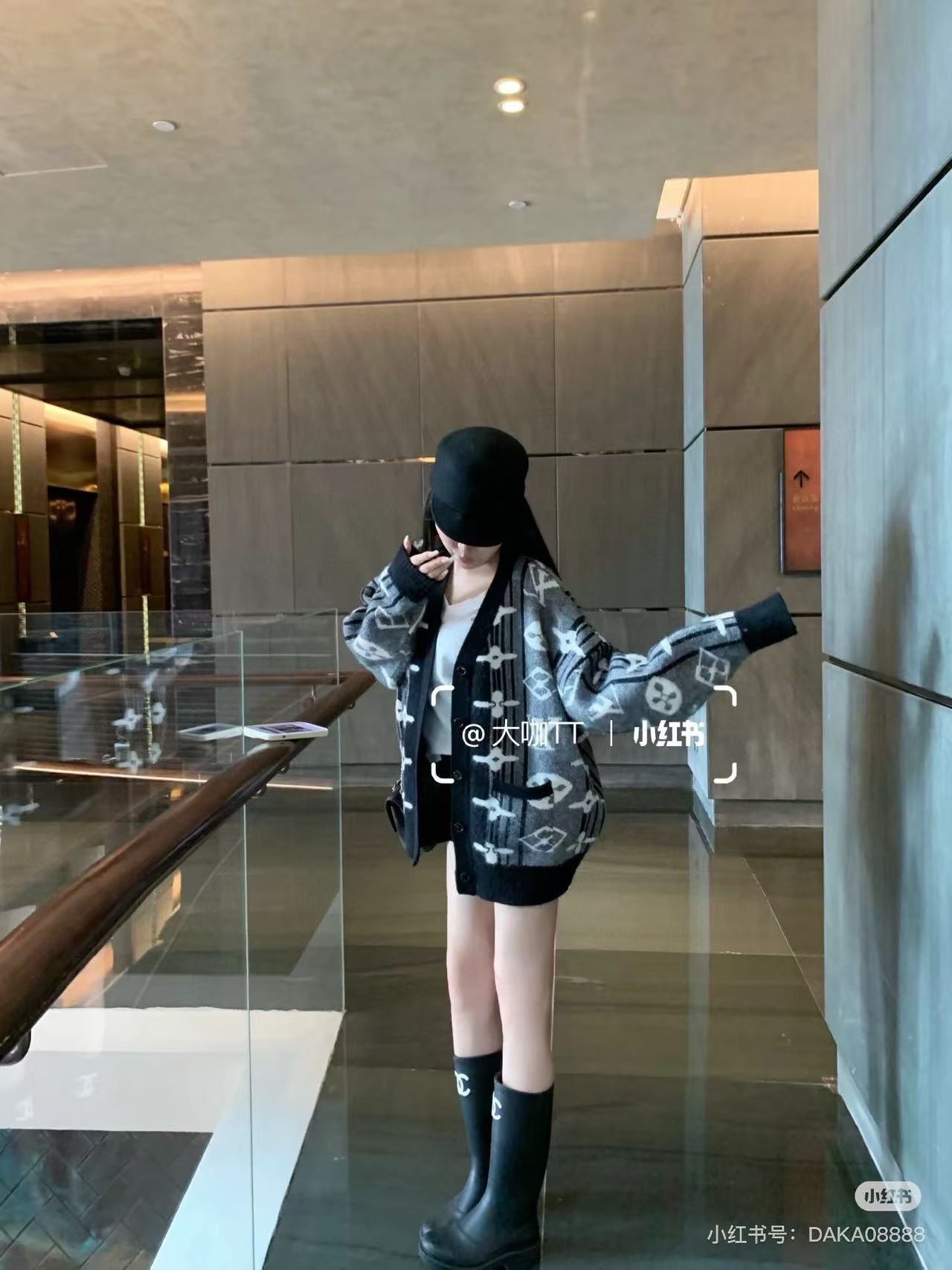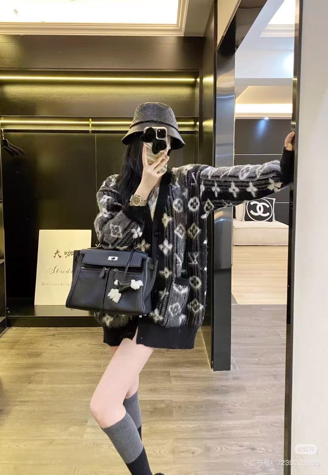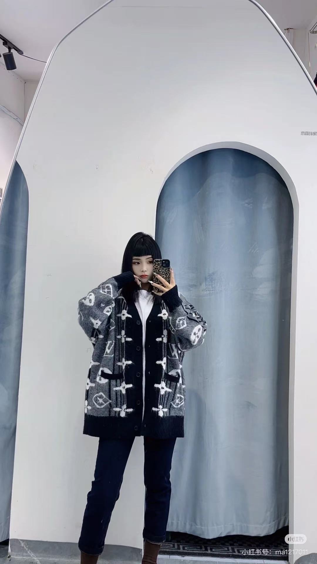 Louis Vuitton 路易威登25ss 老花满印条纹渐变 logo马海毛针织提花开衫外套毛衣 上身集合