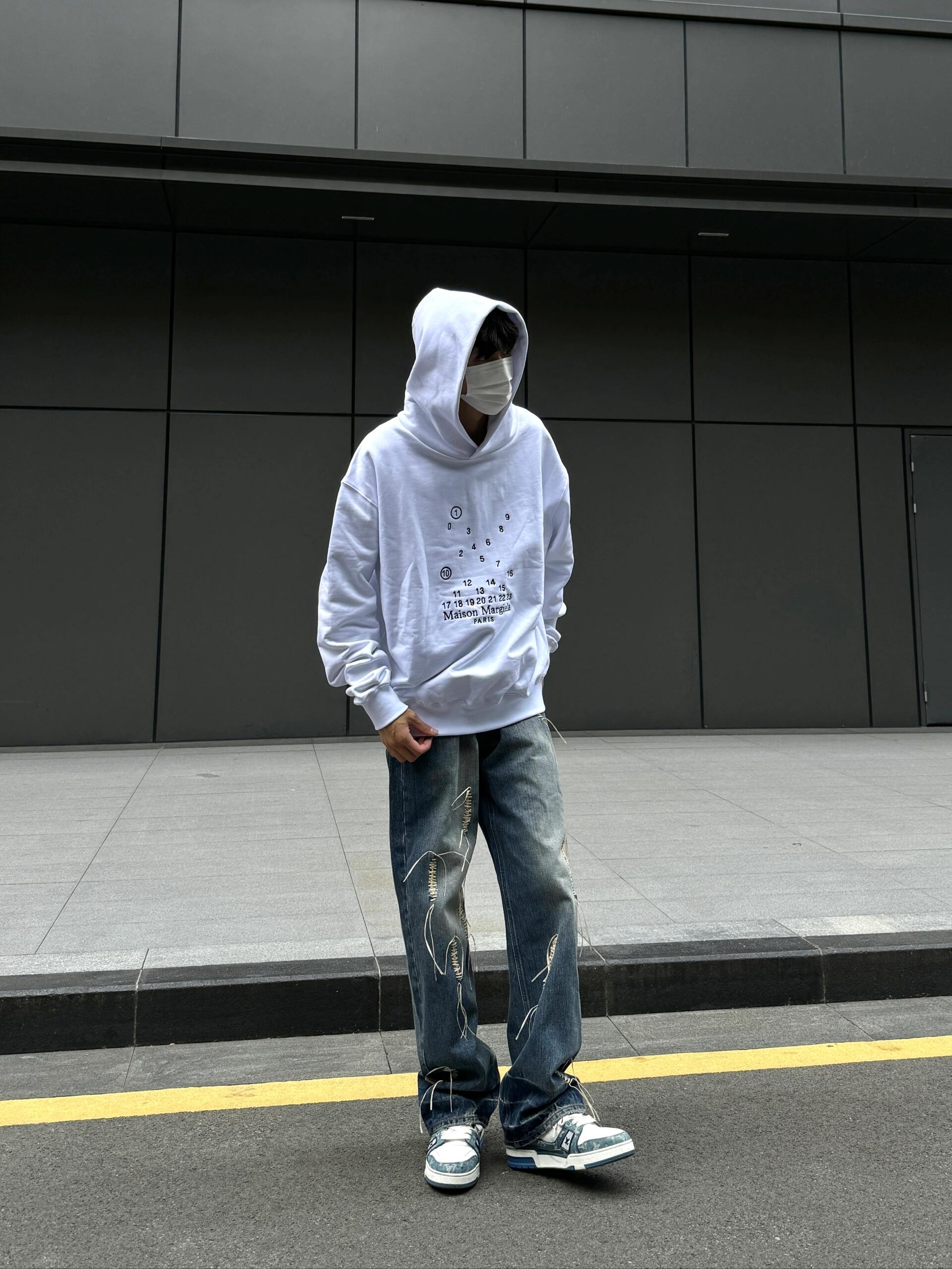 #MaisonMargiela/马吉拉 刺绣数字字母连帽卫衣 上身效果图#