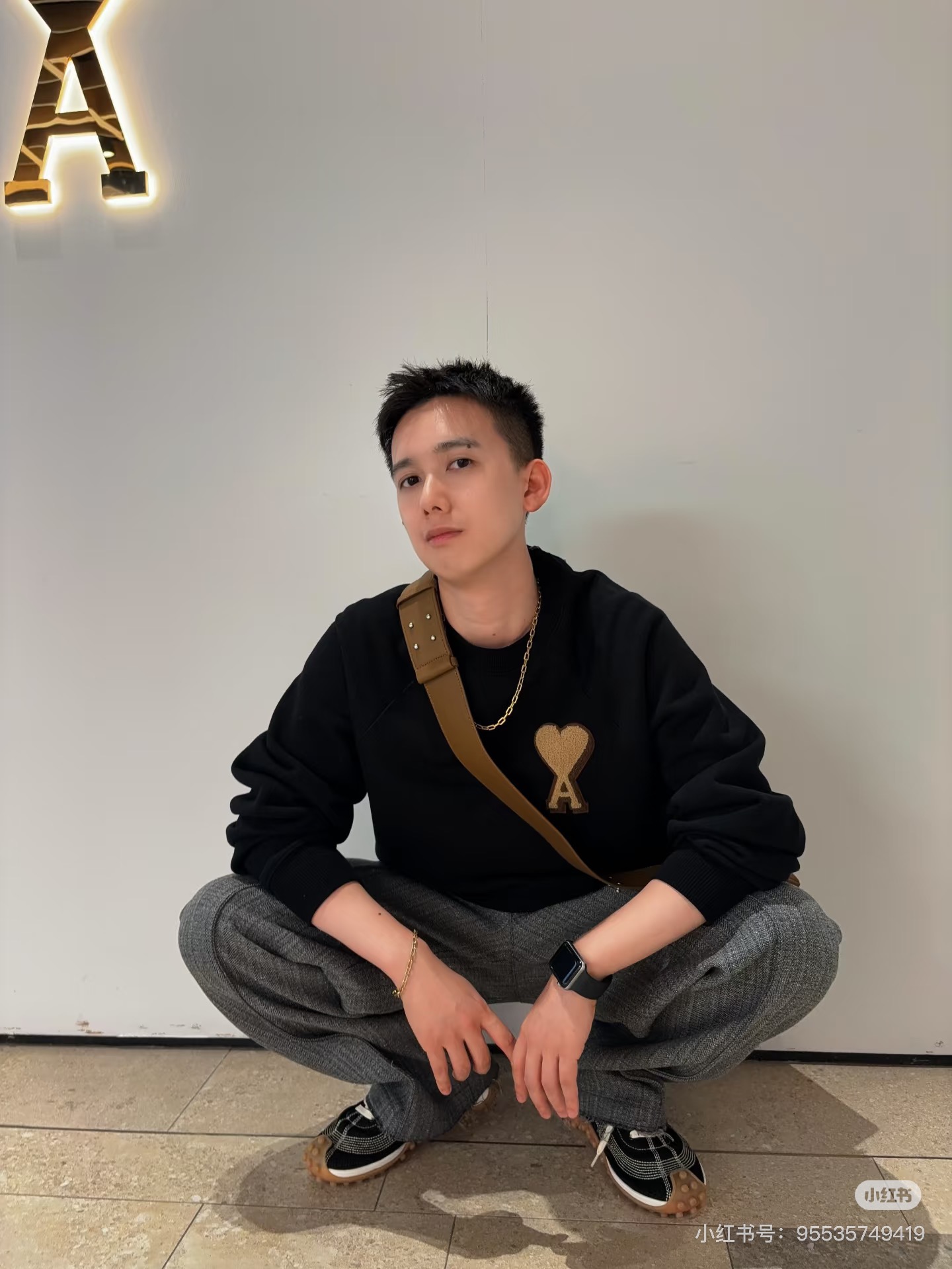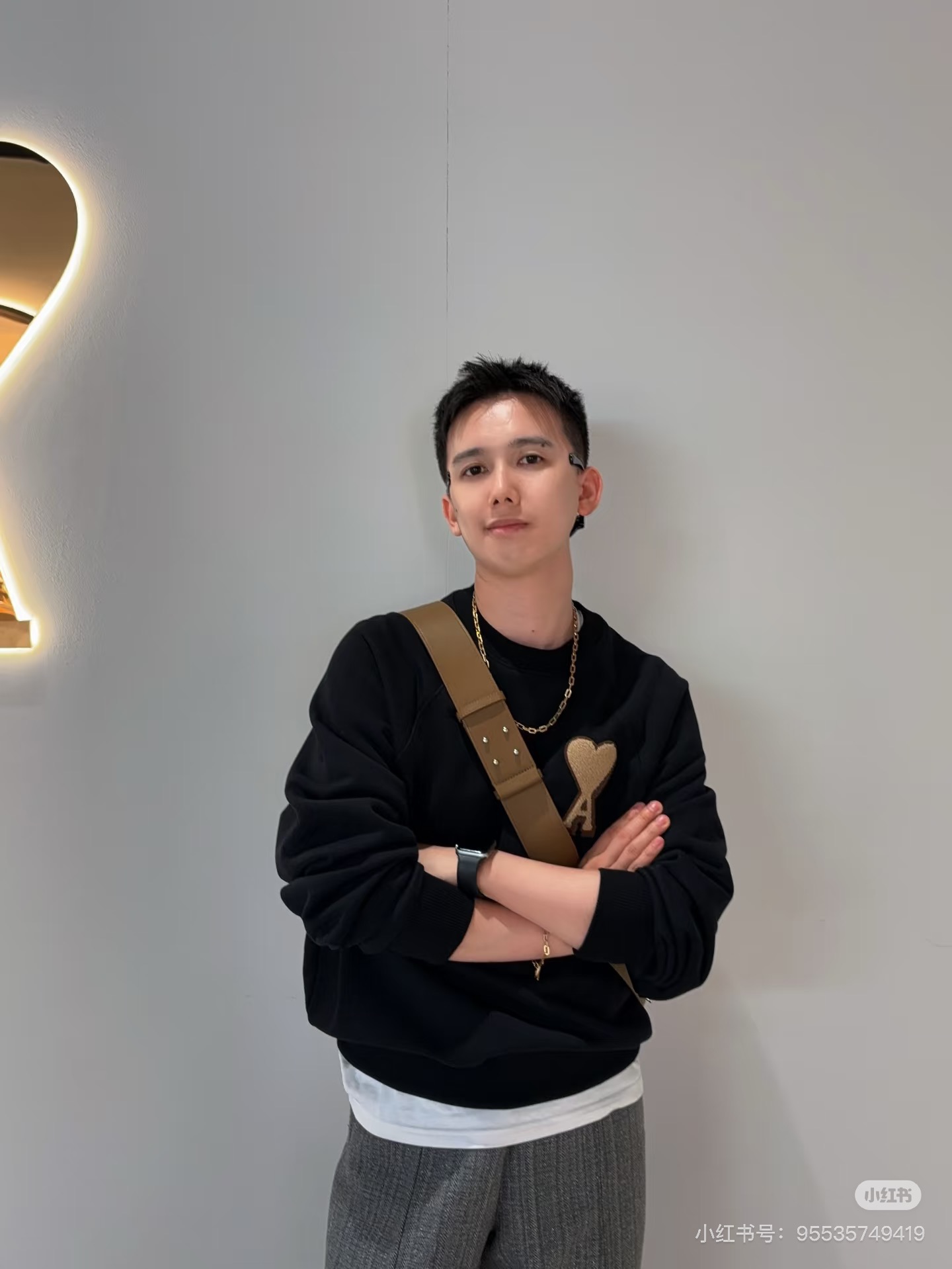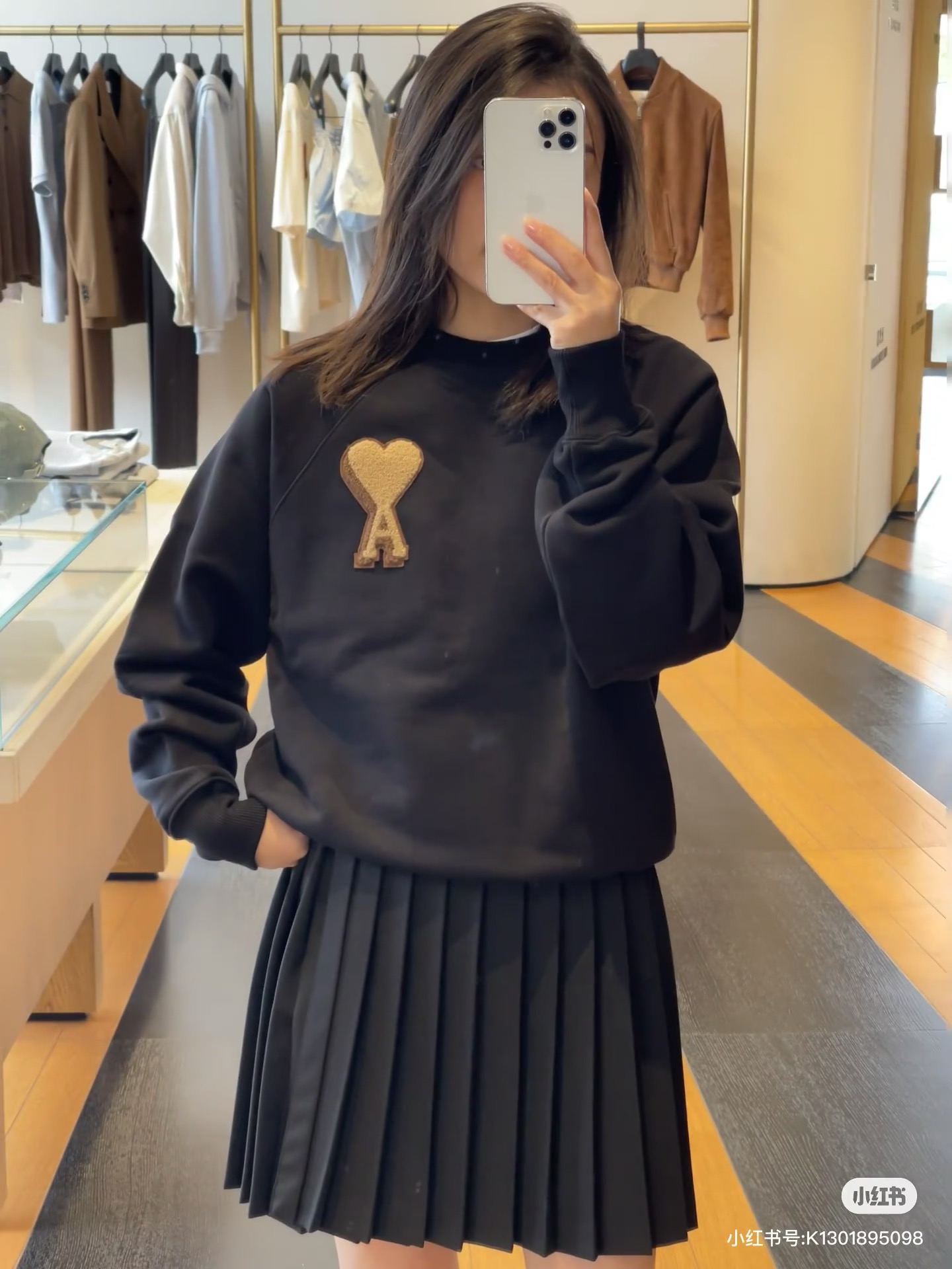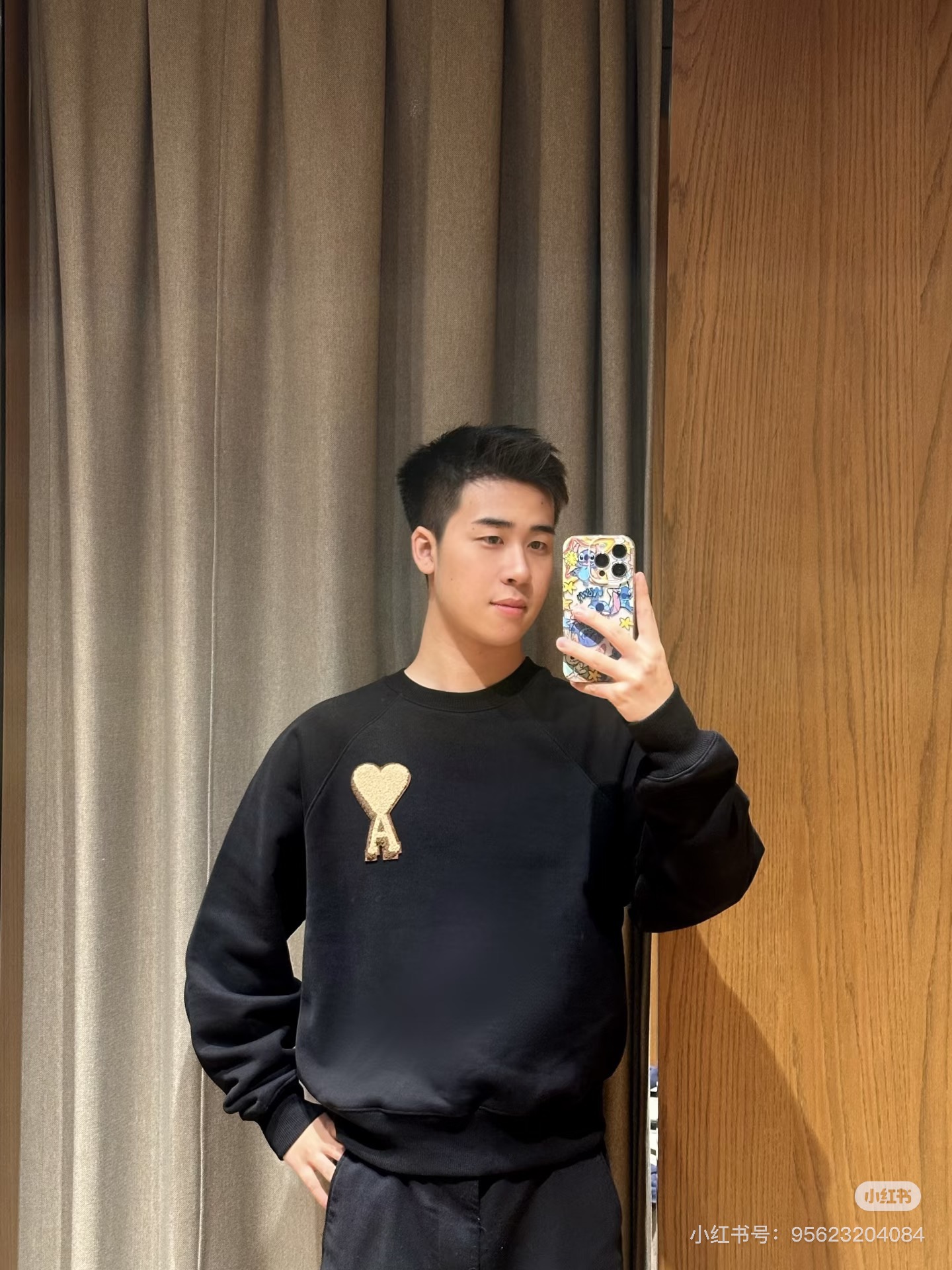 #Ami 重影爱心毛巾绣圆领卫衣上身效果