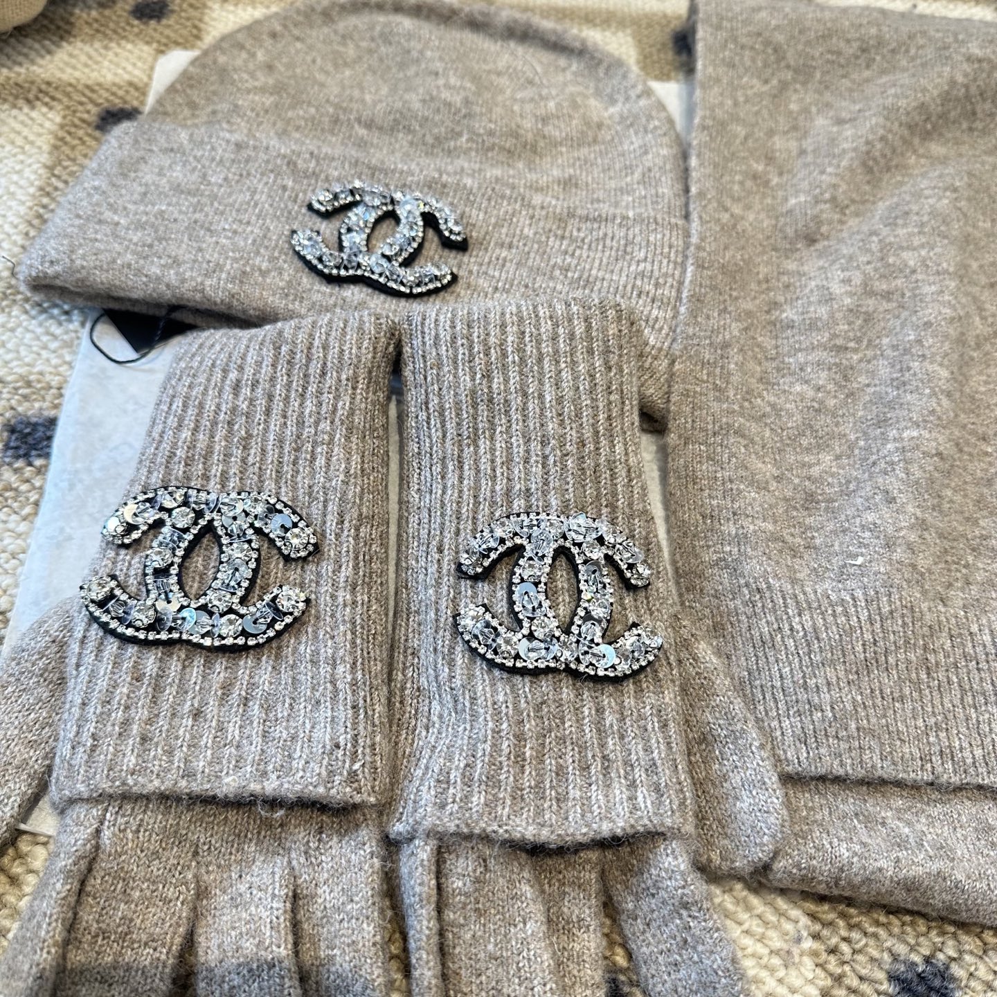 💰145 CHANEL香奈儿 。经典羊毛套装🌟帽子+围巾+手套!🎱🎱暖暖哒超级舒服~冬日小姐姐减龄神器哦~这个冬天你就差这么一套套装帽子啦~又保暖又时尚!