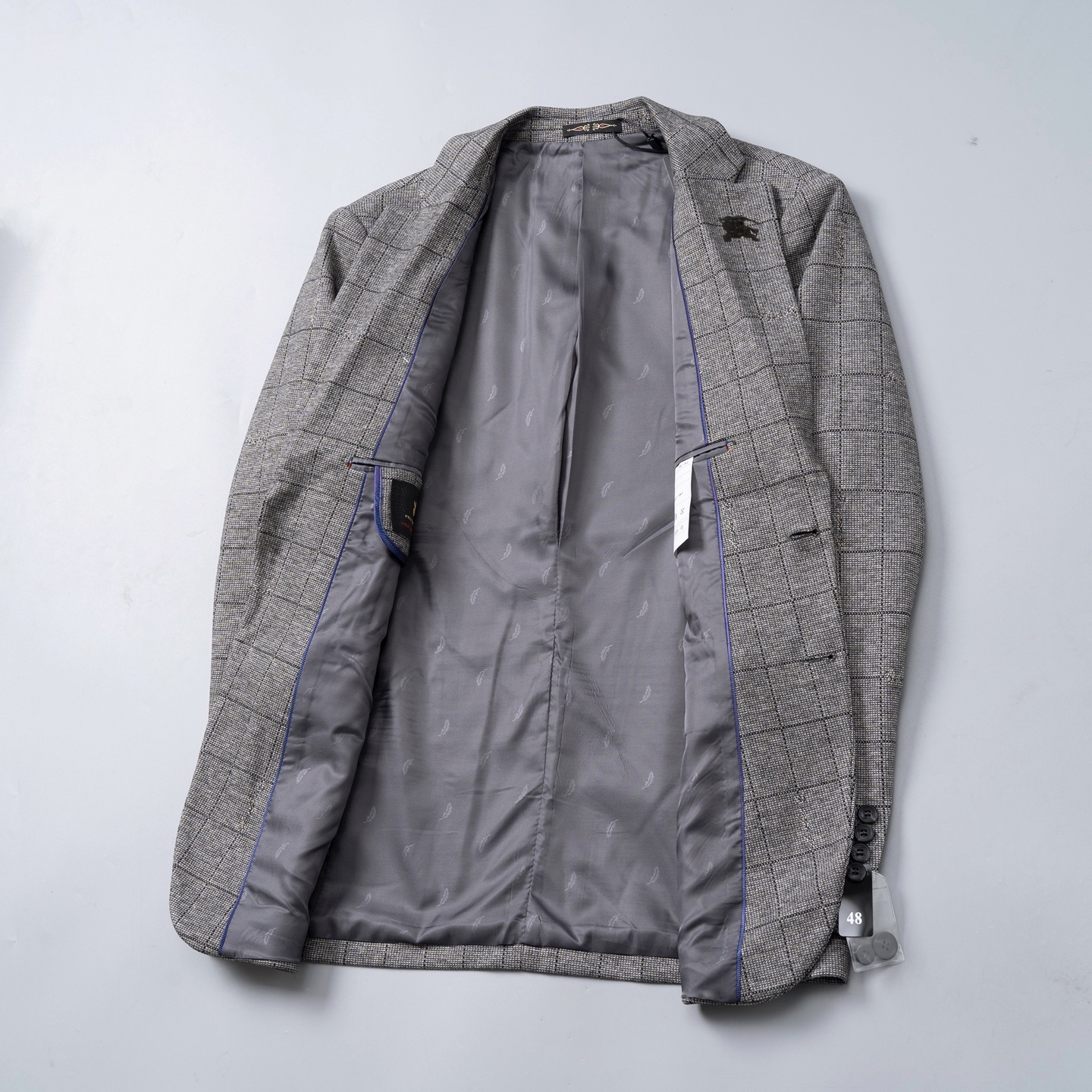 P395 巴宝莉 高级定制 2025秋冬新品 西服更是衣橱里必不可少的单品,它不仅仅代表着你精致的生活态度,也更是你自信心的体现 进口意大利客供斜纹混纺材质 质地紧密,质感强 ,上身柔软 提高了衣物的挺括度与坚牢度,让成衣得以廓形,衣领品牌字母徽标点缀 视觉更立体有型,经典修身立体剪裁 后面中间开衩设计 上身效果超级赞 商务休闲必入款式。尺码 M-XXXL 178 140斤L修身 最大穿185斤