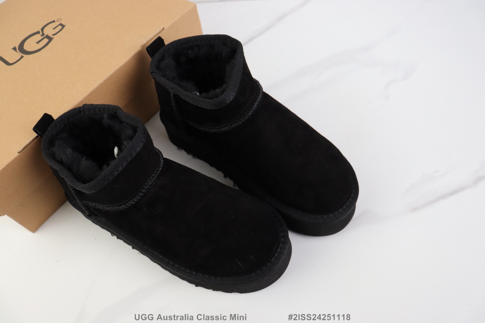💰P120🔺UGG Australia Classic Mini 周冬雨同款厚底高帮雪地鞋 冬季款加绒保暖 牛皮材质靴鞋 人造短毛绒 Size:35-40码 #2ISS24251118