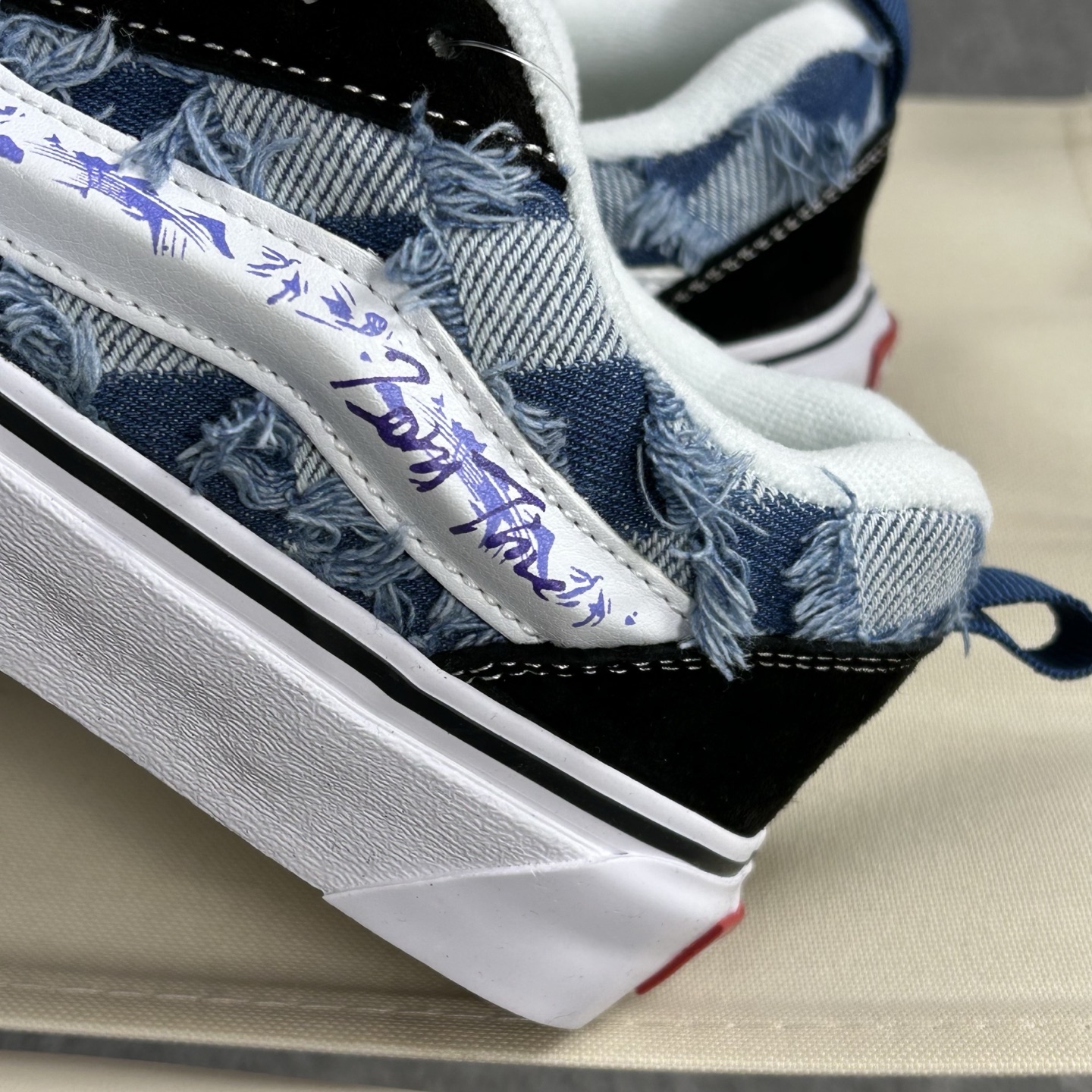 Vans Knu Skool 百搭休闲防滑减震低帮 板鞋男女同款 颜色:vans面包蓝毛格子印刷饰条 货号:MZHJ 尺码:35 36 36.5 37 38 38.5 39 40 40.5 41 42 42.5 43 44