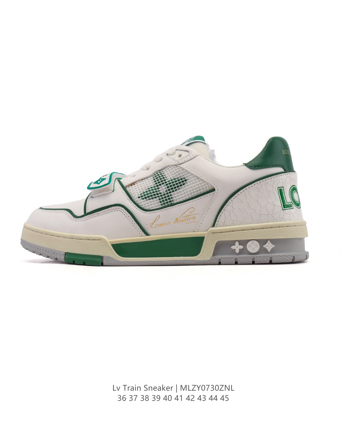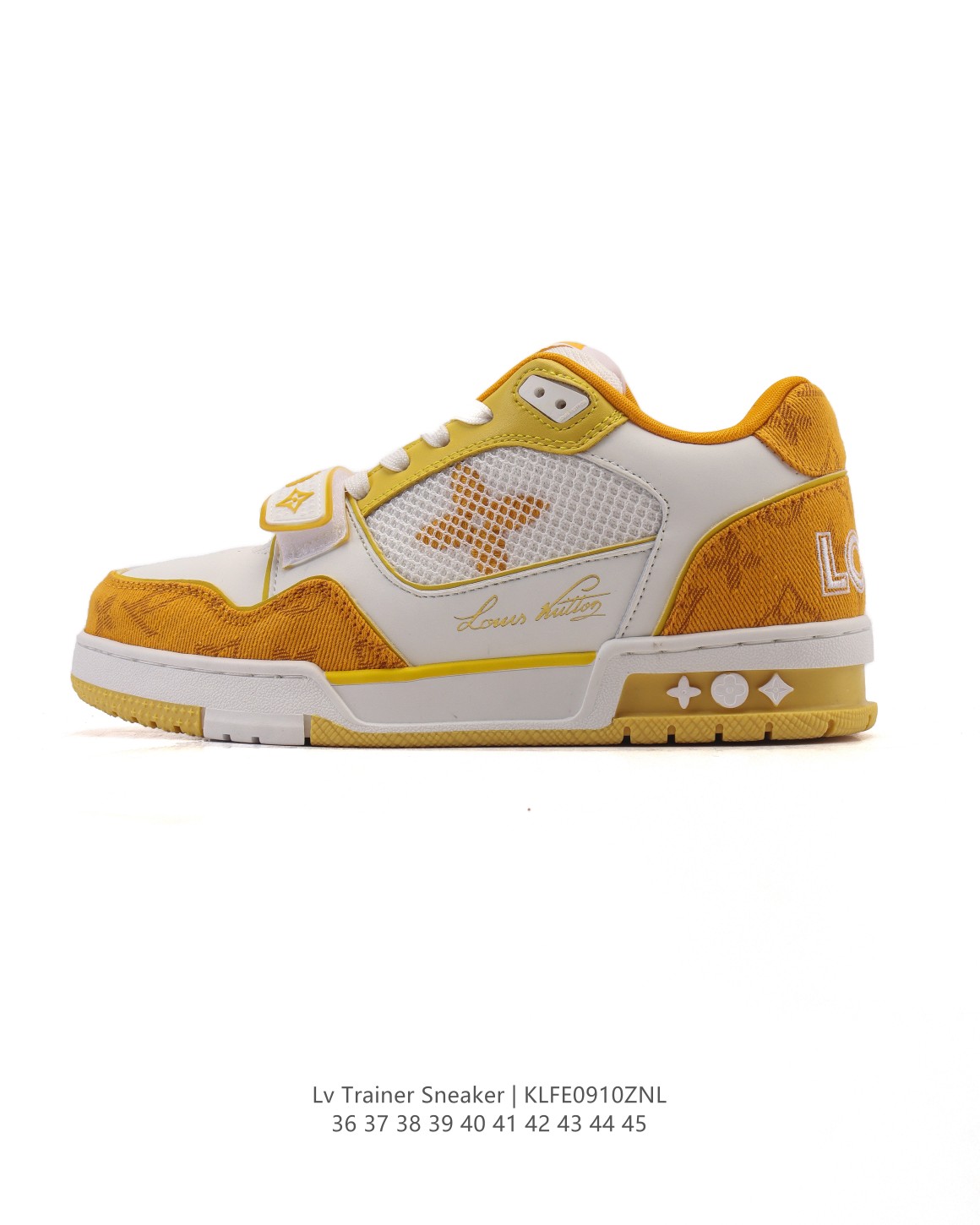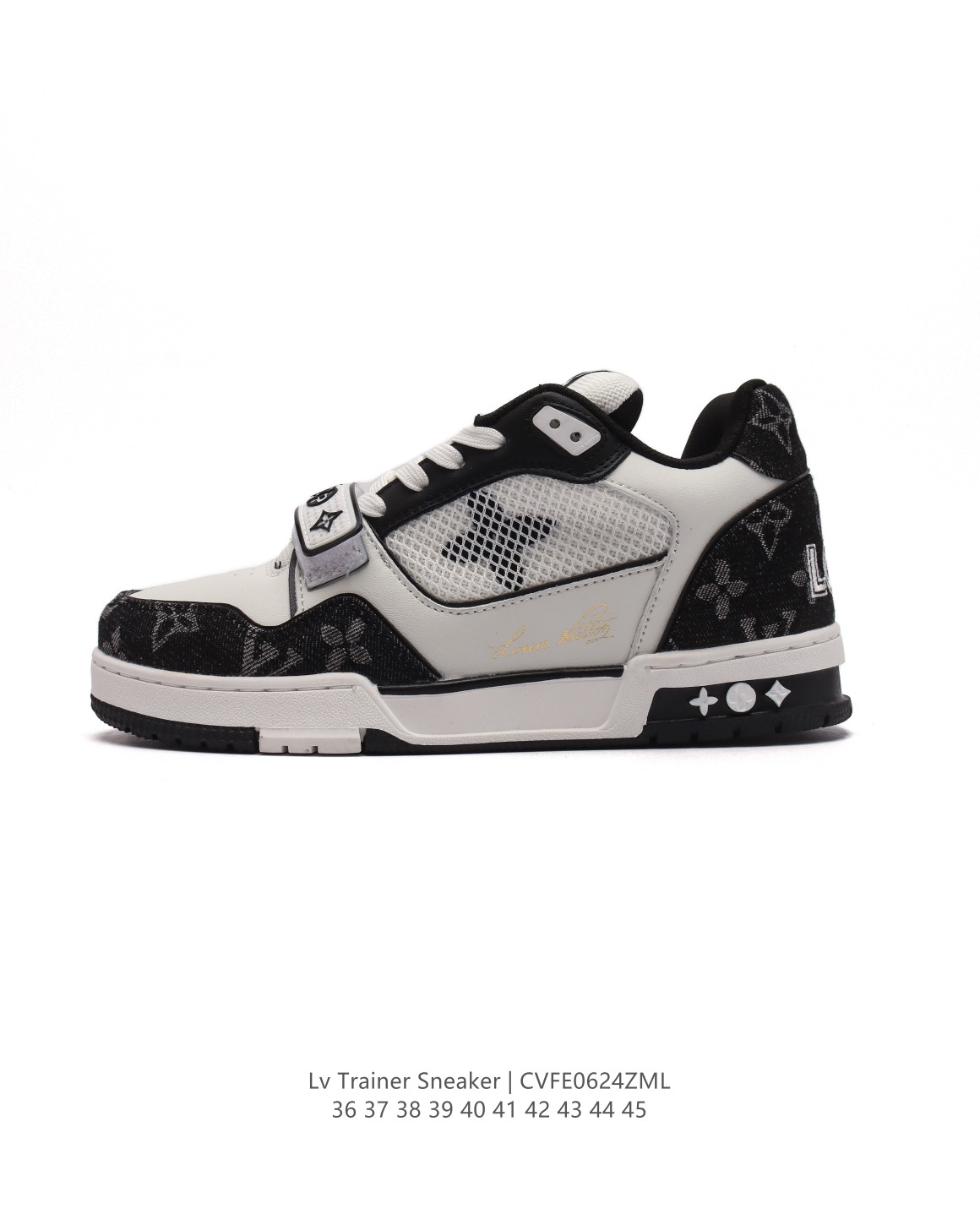 🈴 【帝王版】LV扣带 路易威登 Louis Vuitton LV路易威登板鞋 时尚运动鞋潮厚底增高男女鞋。舒适防滑底和百搭性霸屏整个时尚娱乐圈,细节调整完美主义!采用柔软皮革帆布拼接鞋面,独家开模大底, 侧边采用3D打印标志性Logo 尽显贵族时尚气息,配带正品全套包装。全新LV路易威登Louis vuitton Trainer Sneaker Low 休闲运动文化百搭板鞋。 类型:男女鞋 尺码:36-46