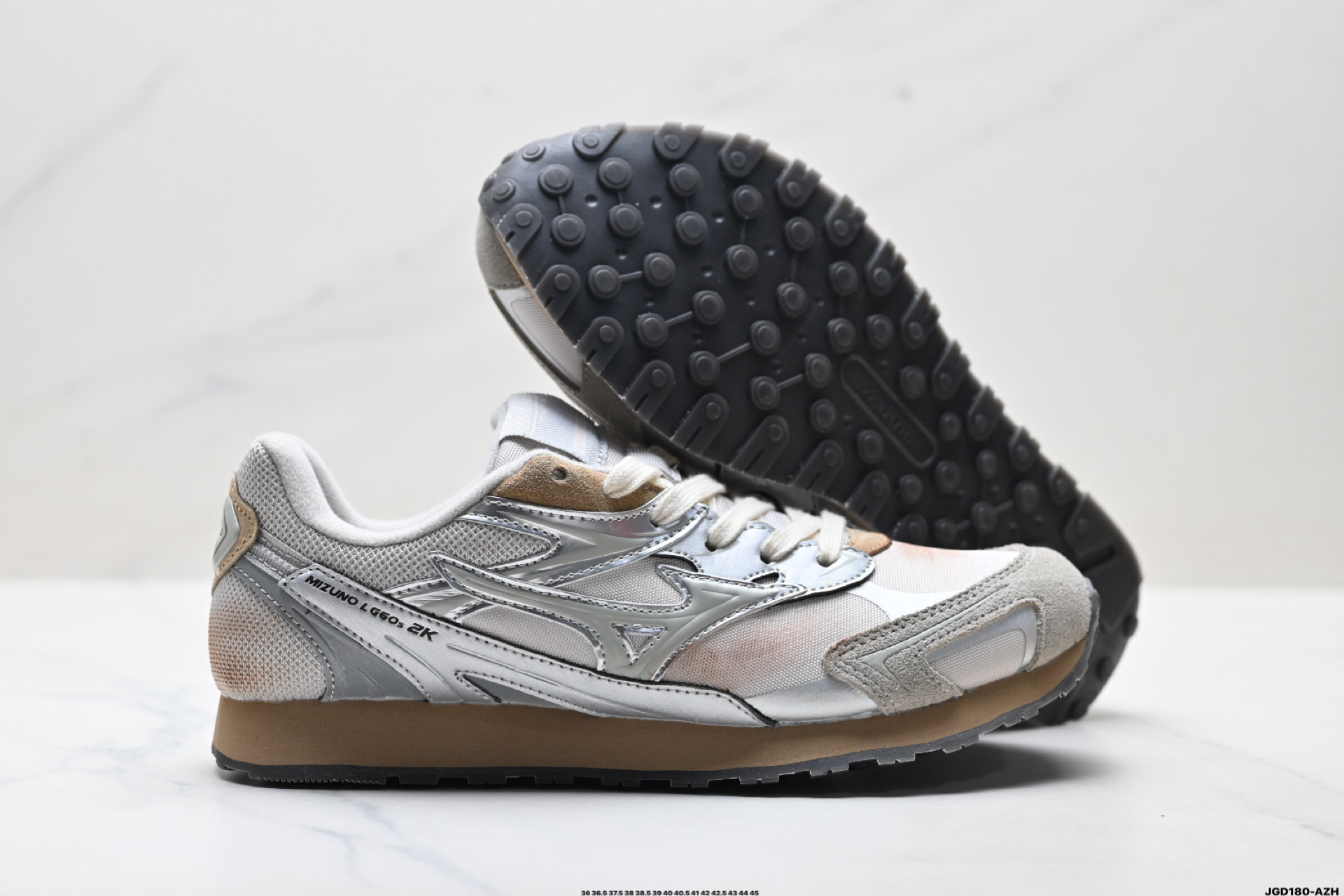 💰160 公司级✅Mizuno美津浓 LG 60S 2K 舒适百搭 做旧设计 德训 薄底防滑耐磨 低帮休闲鞋 Y2K与60S的时空碰撞 趋势破壁 沿袭MIZUNO经典薄底跑鞋廓形全新年轻化鞋面设计 释出质感与活力兼具的LG 60S 2K 麂皮质感温润柔和 LOGO精致点缀 步履之间 邂逅自在的优雅 全鞋面做旧工艺处理 色基底上局部龟裂 旧化纹理设计 褪去新鞋生硬感 货号:D1GH242103 尺码:36 36.5 37.5 38 38.5 39 40 40.5 41 42 42.5 43 44 45 ID:JGD180-AZH