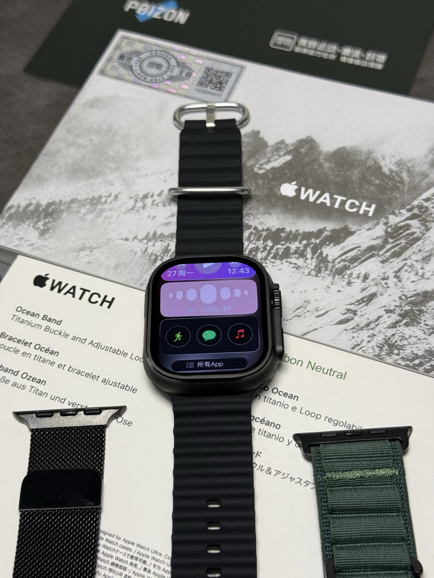终于出货了💯💰240 ln毒版 苹果AppleWatch Ultra3 蓝牙手表 全新升级WatchOS 26系统操作界面 唯一正确版 莆田工厂订单 真正1:1完美复刻 可通用正品配件 目前唯一能跟正品通用配件的版本 认准这一点‼️ 市面其版本都无法做到能用正品保护壳跟配件 屏幕自带苹果logo原厂膜 高端复刻认准莆田制造 外观细节做工功能甩华强北那些山寨电子垃圾两条街 原装AMOLED臻彩屏 支持屏幕常亮以及熄屏显示 支持300+自定义表盘 主题风格随你切换 全部免费‼️ 重磅功能来了!!各位注意看介绍 支持登录微信/可听微信语音 手表在线回微信 升级支付宝/微信离线支付 不带手机也可以出示付款码 支持登录网易云音乐 手表在线显示歌词等 升级全新矢量卫星地图 手表上面即可导航定位 内置DeepSeek人工智能 随时解答你的疑问 支持蓝牙通话/NFC门禁卡 离线付款码 噪音检测等 本地相册音乐/不带手机也可以离线连接蓝牙耳机听歌 录音 股票 小说 股票信息 解压小游戏等 功能非常多 • 上百种运动模式 实时记录运动数据 • 精准心率/ 睡眠质量深度分析 • 女性健康周期提醒 贴心呵护每一天 电池全面升级 日常使用续航2天待机可达7天 强烈推荐各位入手一试!到手不满意包退换 报货赠送图中3条表带 搭配得物盒子发货 本产品售后保修三个月 屏幕膜没撕过可退换‼️