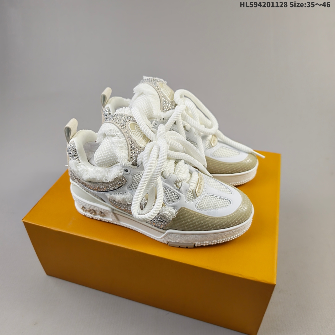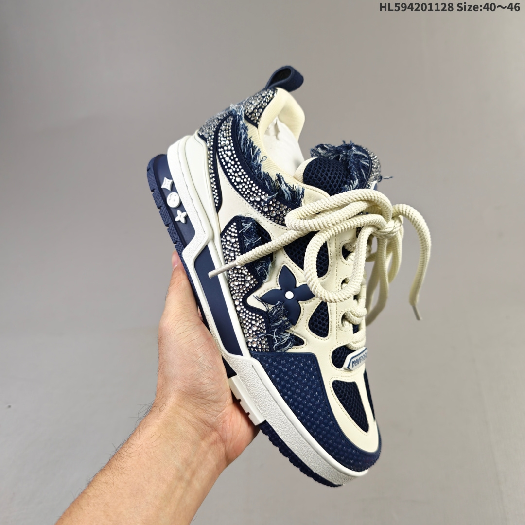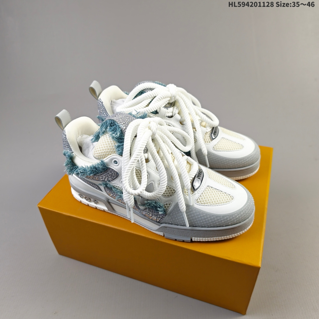 集合💰420 路易威登 Louis Vuitton LV路易威登板鞋 时尚运动鞋潮厚底增高男女鞋。舒适防滑底和百搭性霸屏整个时尚娱乐圈,细节调整完美主义!采用柔软帆布皮革拼接鞋面,独家开模大底, 侧边采用3D打印标志性Logo 尽显贵族时尚气息,配带正品全套包装。全新LV路易威登Louis vuitton Trainer Sneaker Low 休闲运动文化百搭板鞋。 编码:HL594201128