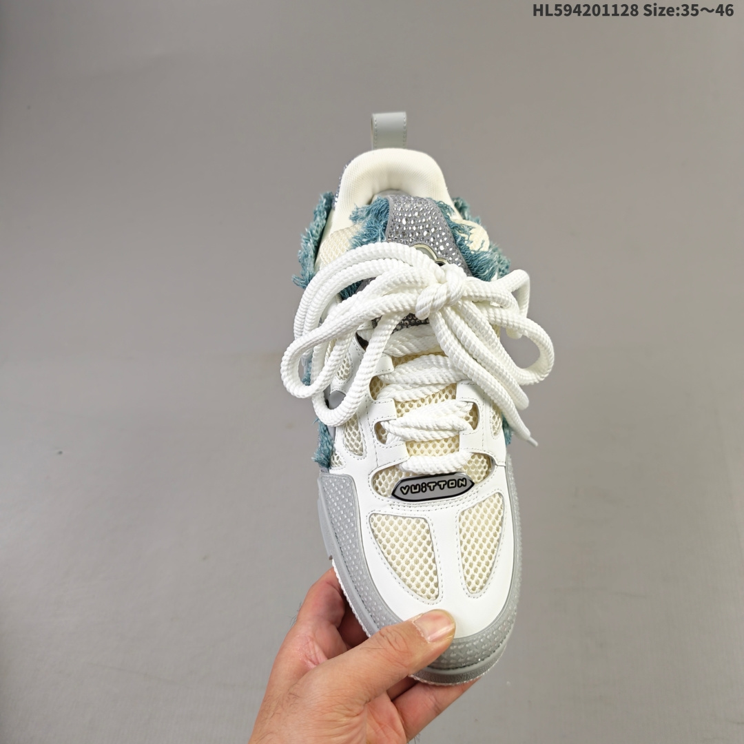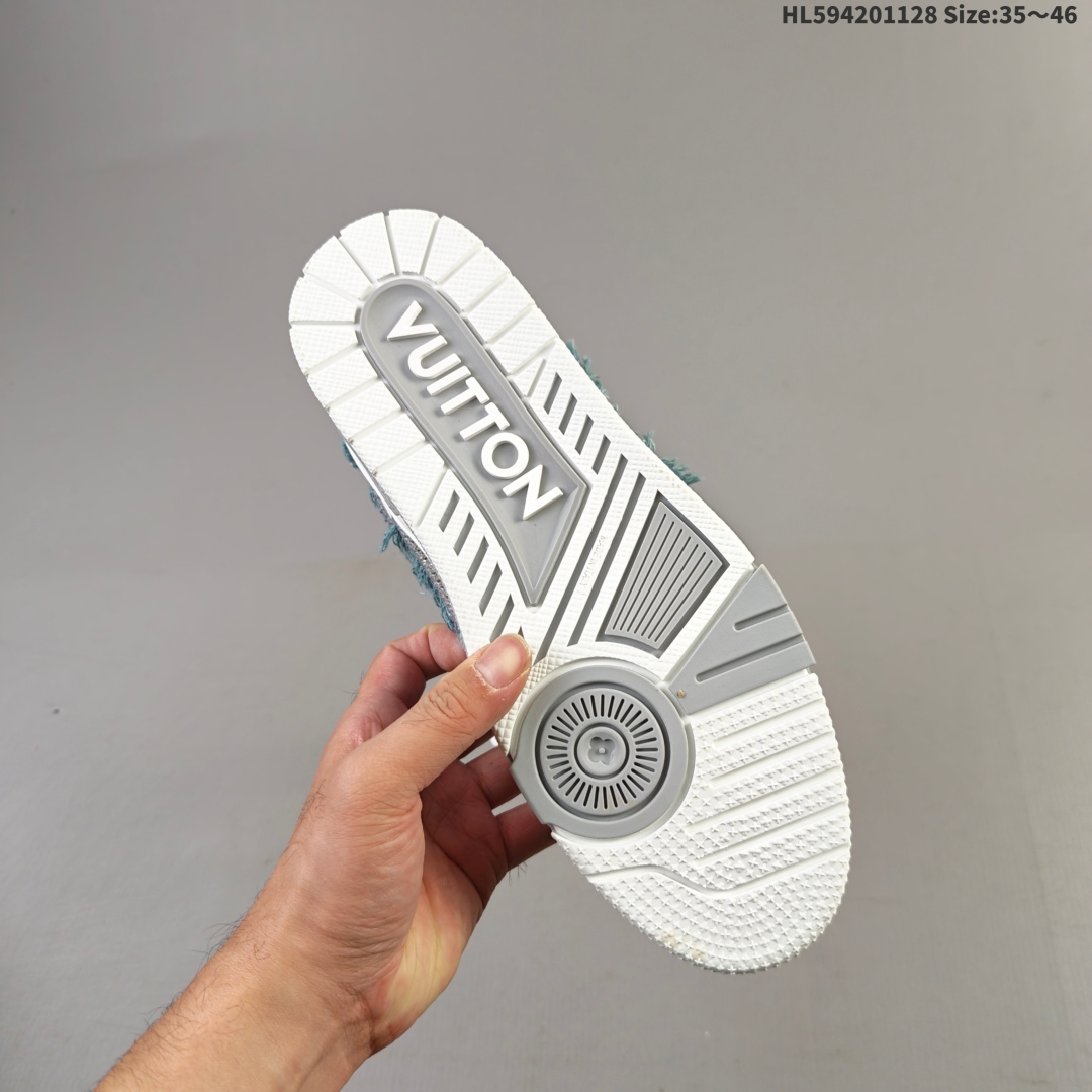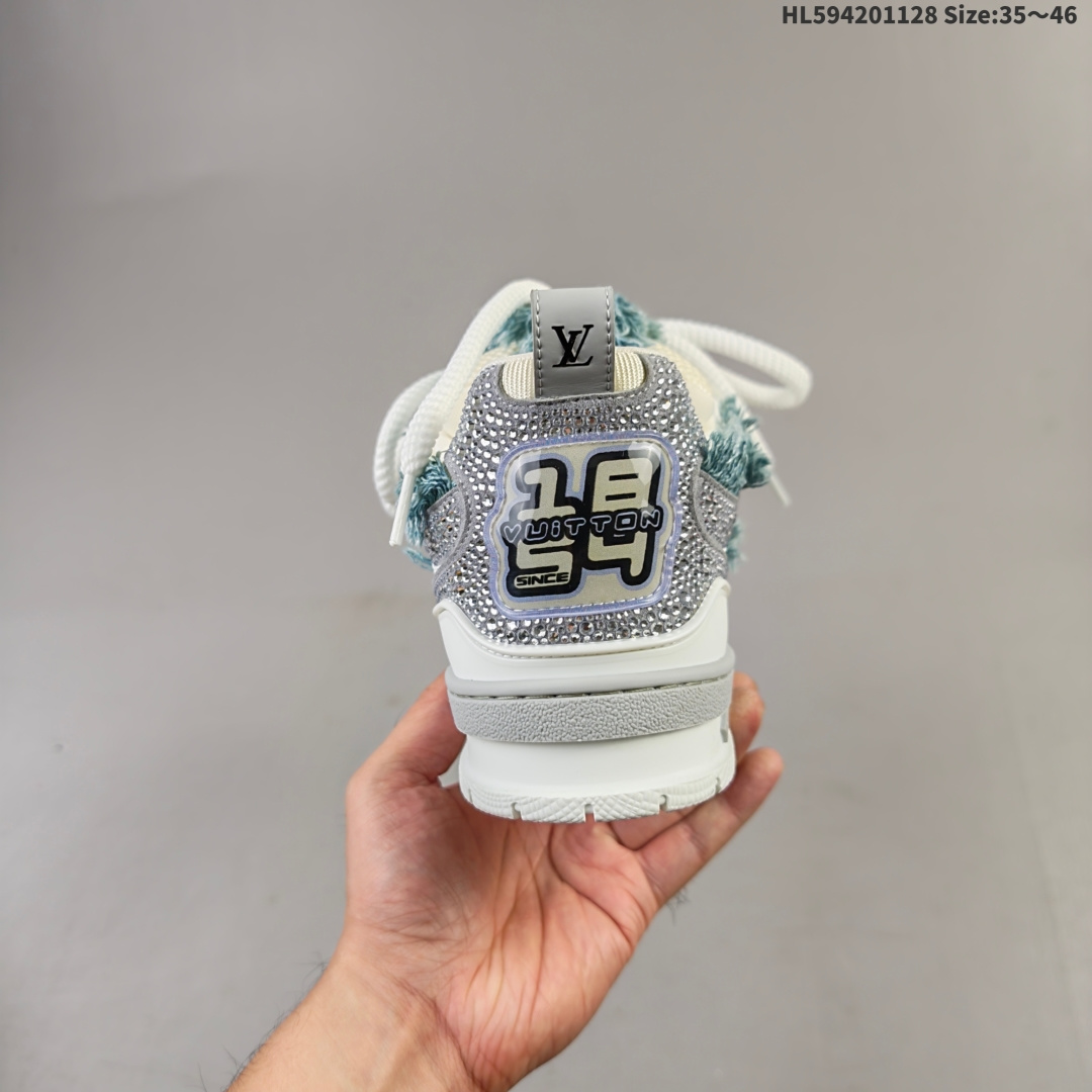 💰420 路易威登 Louis Vuitton LV路易威登板鞋 时尚运动鞋潮厚底增高男女鞋。舒适防滑底和百搭性霸屏整个时尚娱乐圈,细节调整完美主义!采用柔软帆布皮革拼接鞋面,独家开模大底, 侧边采用3D打印标志性Logo 尽显贵族时尚气息,配带正品全套包装。全新LV路易威登Louis vuitton Trainer Sneaker Low 休闲运动文化百搭板鞋。 编码:HL594201128