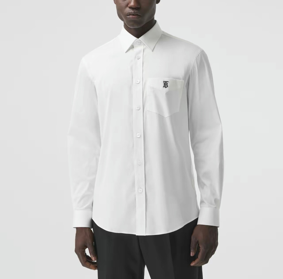 #Burberry/巴宝莉 经典刺绣TB小标衬衫上身效果
