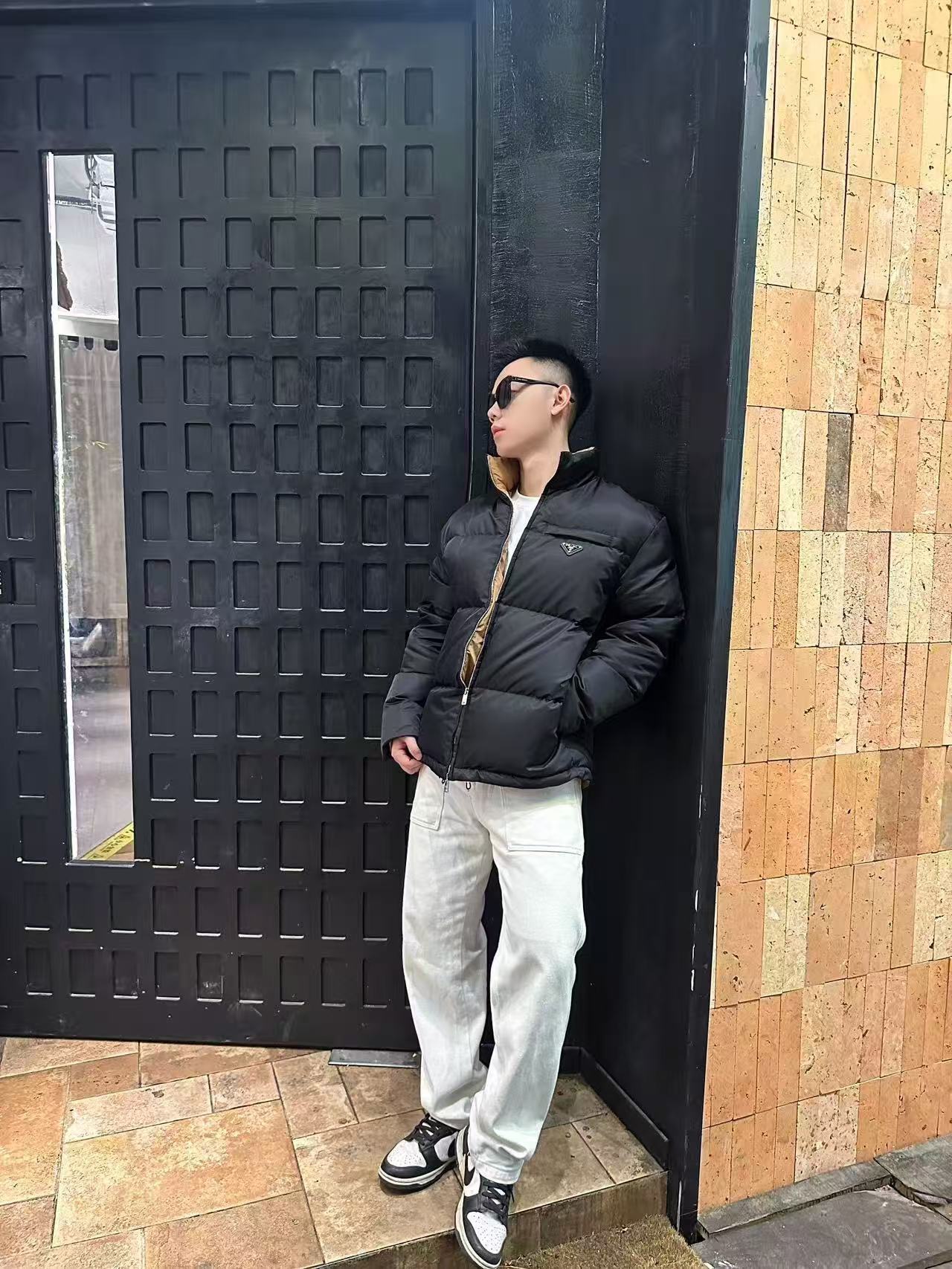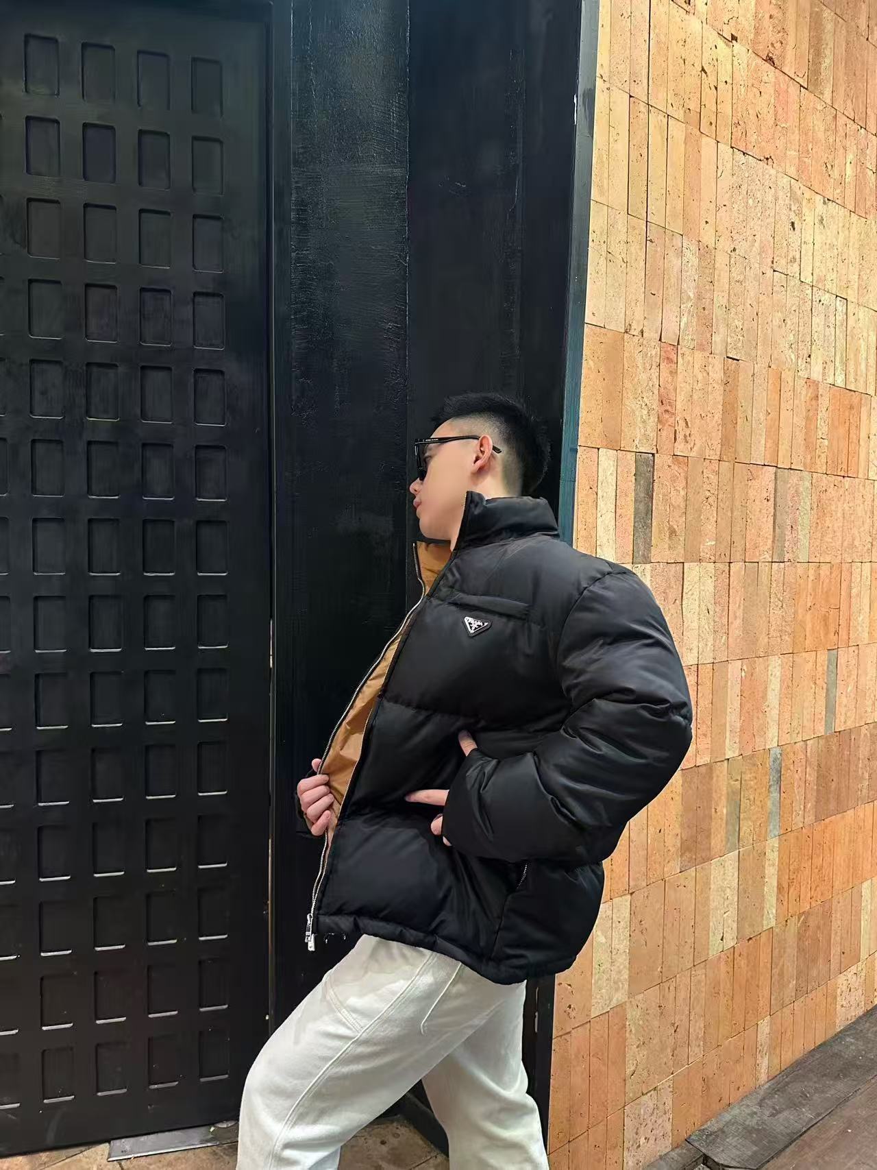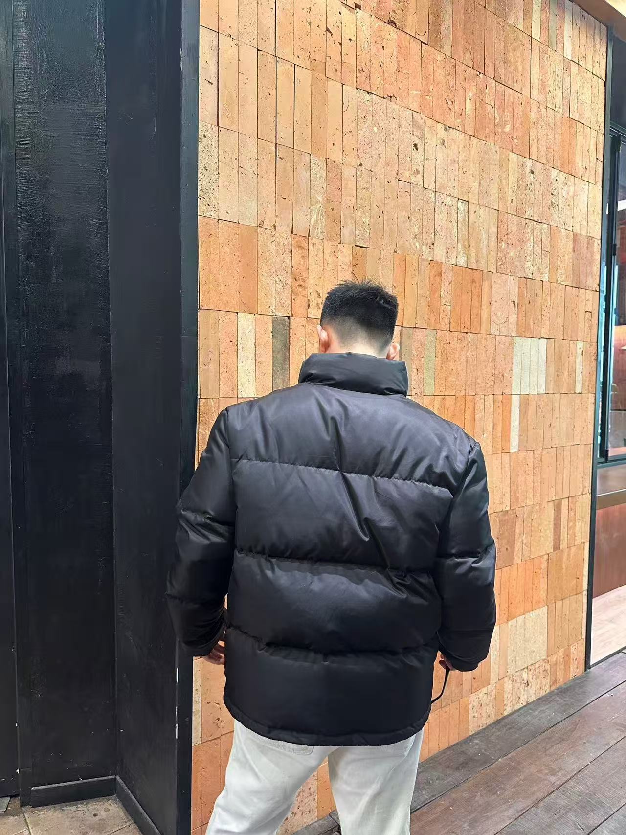 #Prada/普拉达 尼龙拉链口袋撞色立领羽绒服上身效果