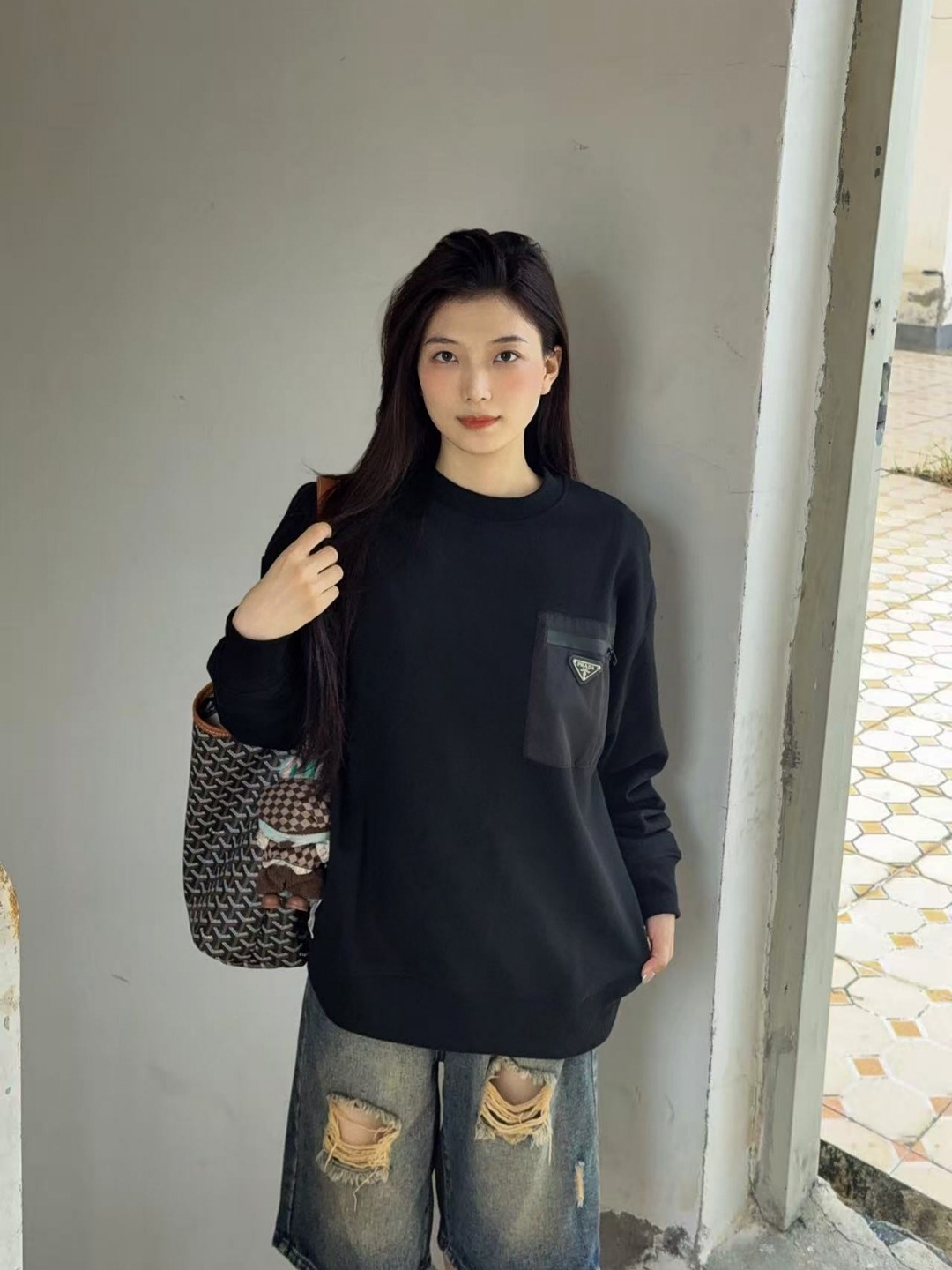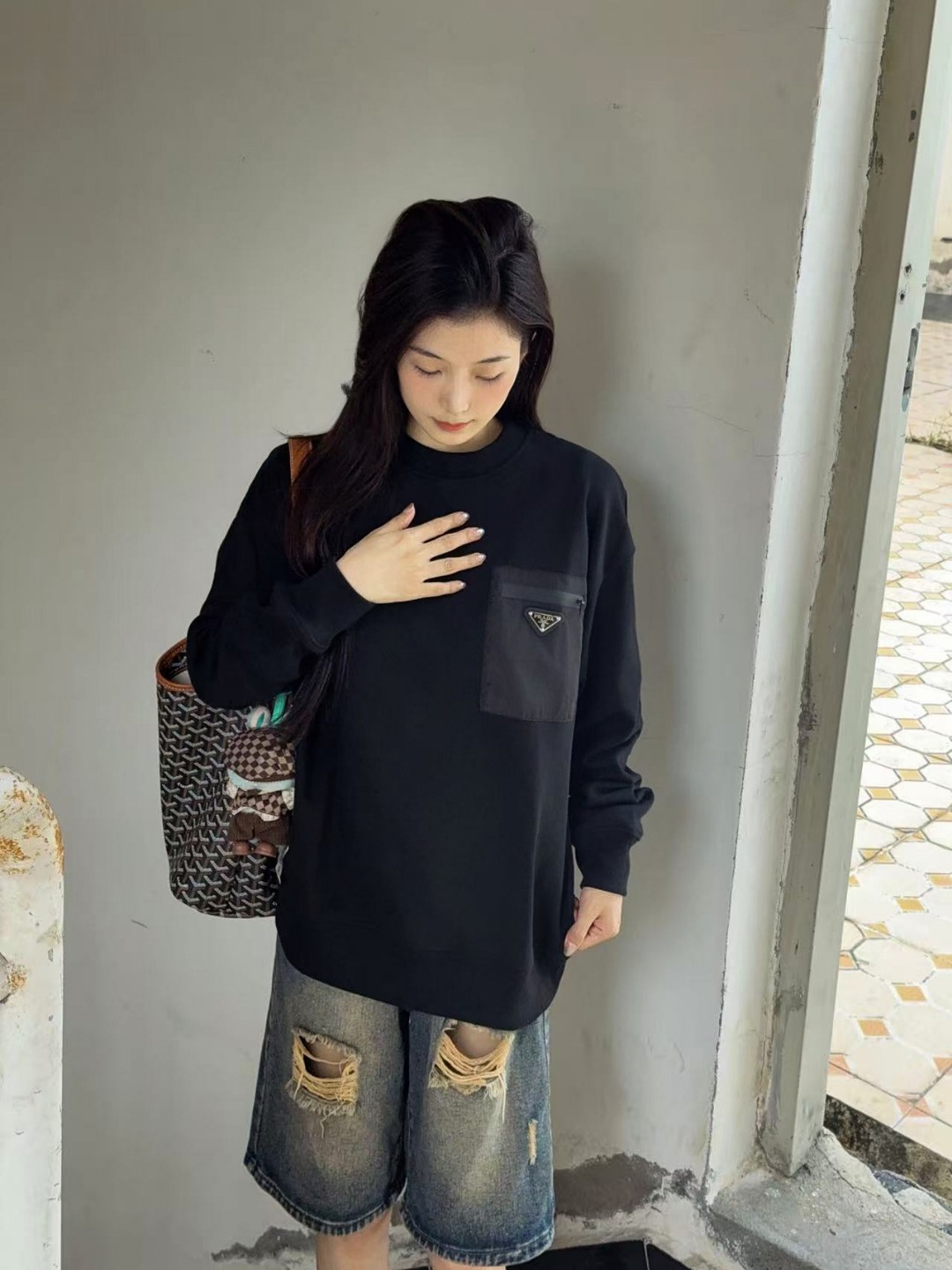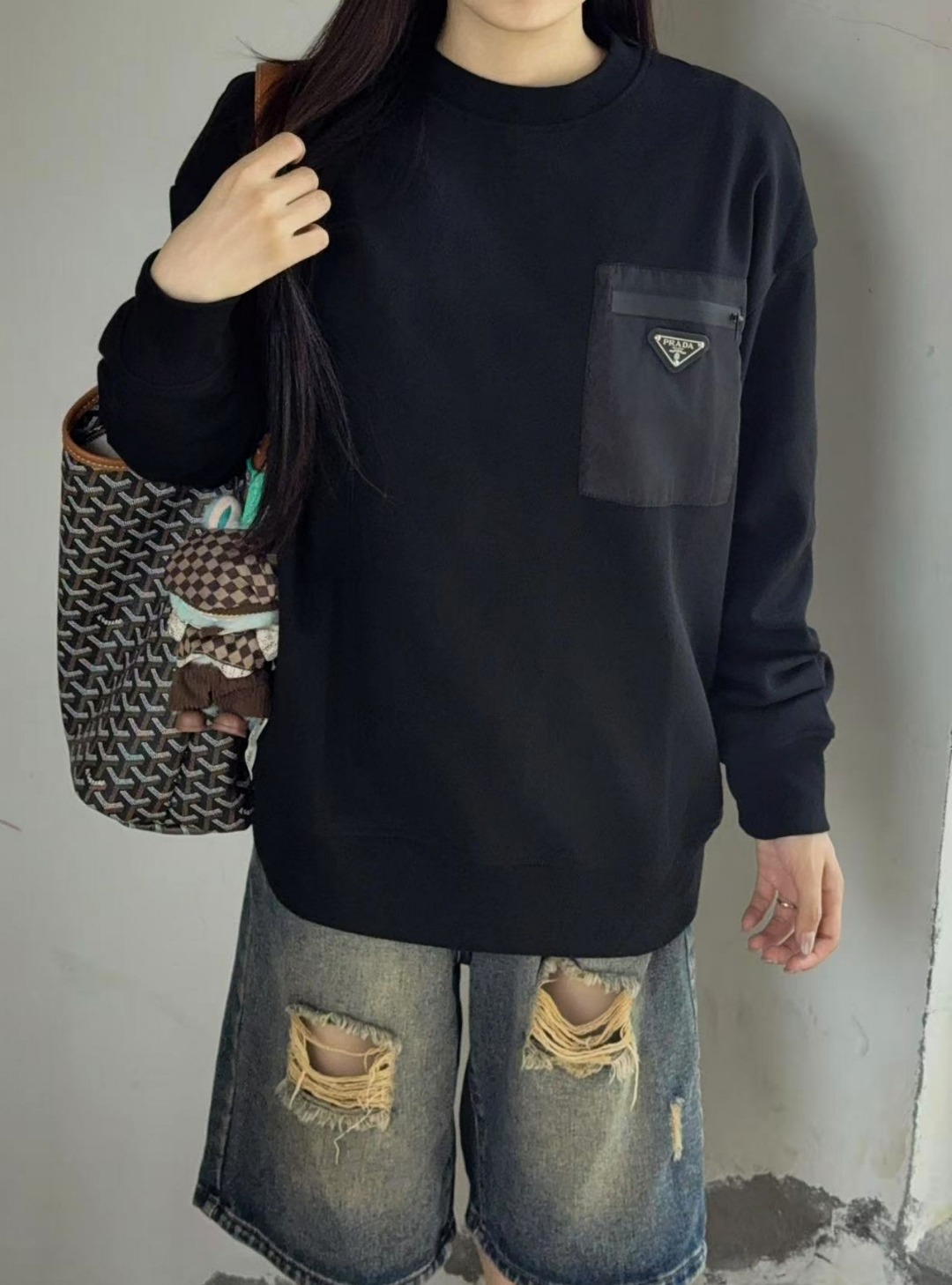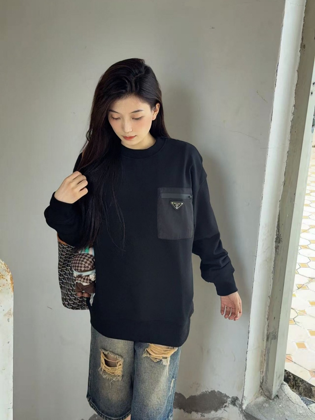 Prada/普拉达 25Fw 侧边尼龙口袋三角标卫衣 上身效果#