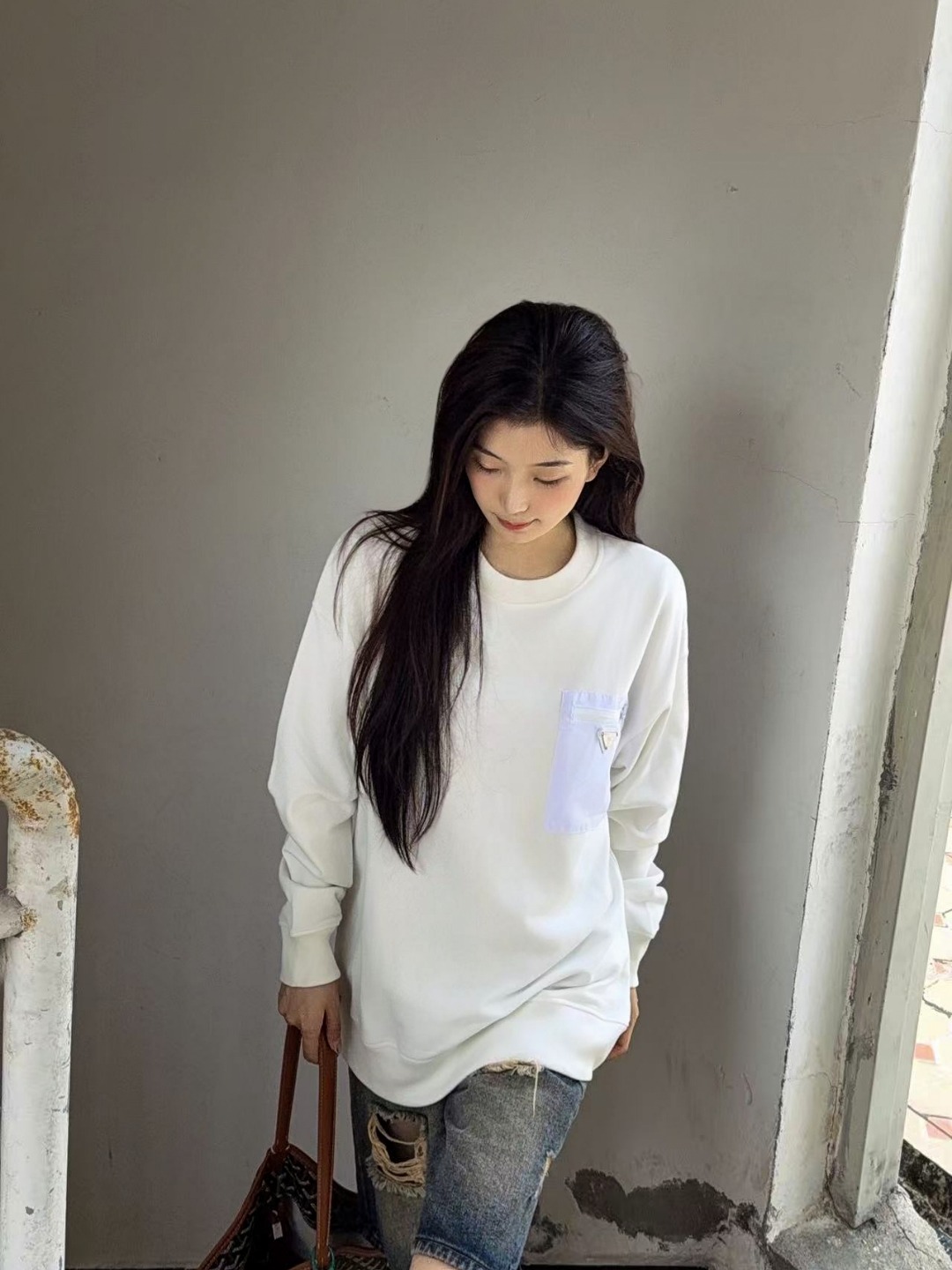 Prada/普拉达 25Fw 侧边尼龙口袋三角标卫衣 上身效果#