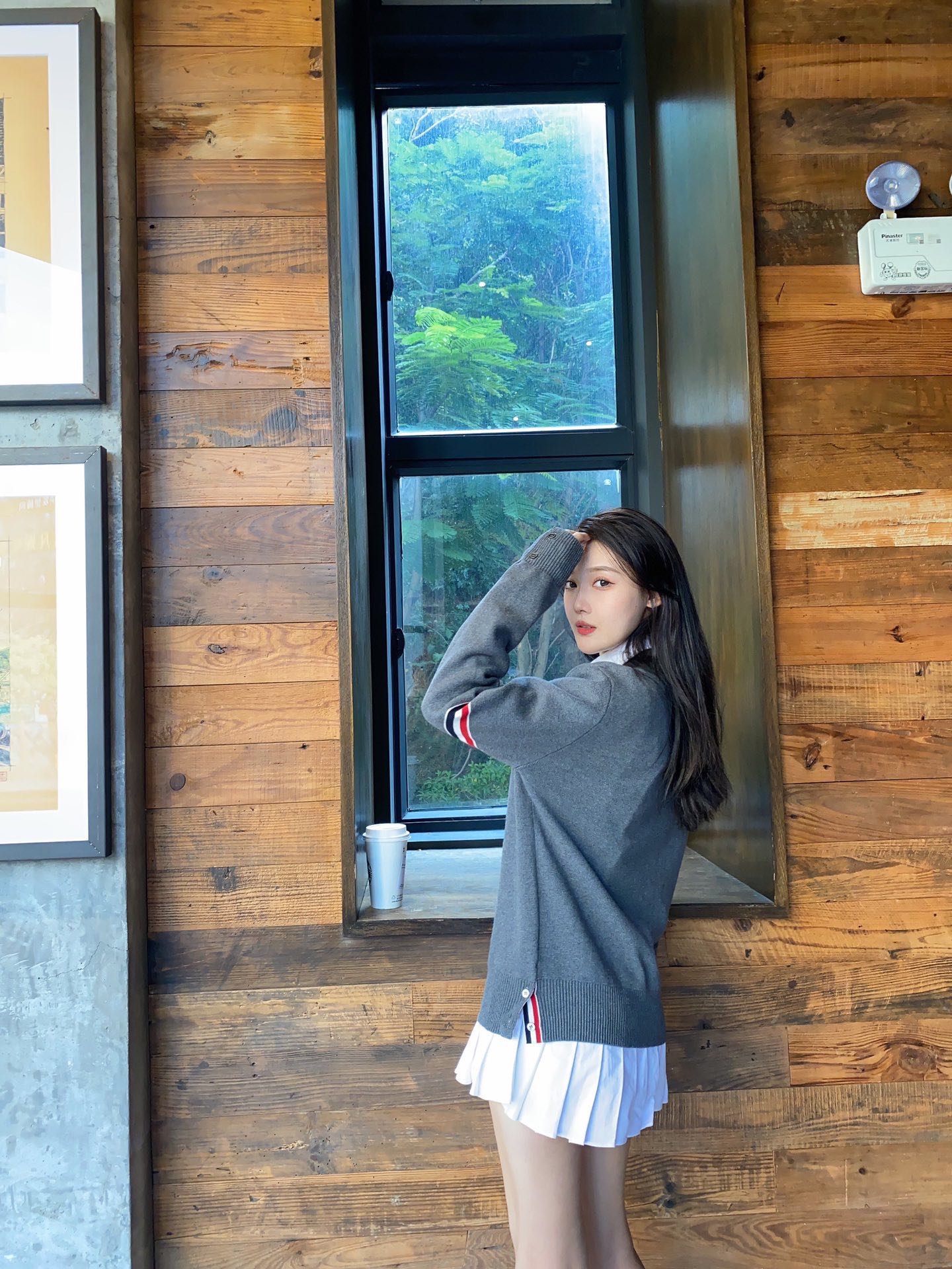 模特上身效果 THOM BROWNE 汤姆布朗 .TB经典加厚双袖标圆领毛衣