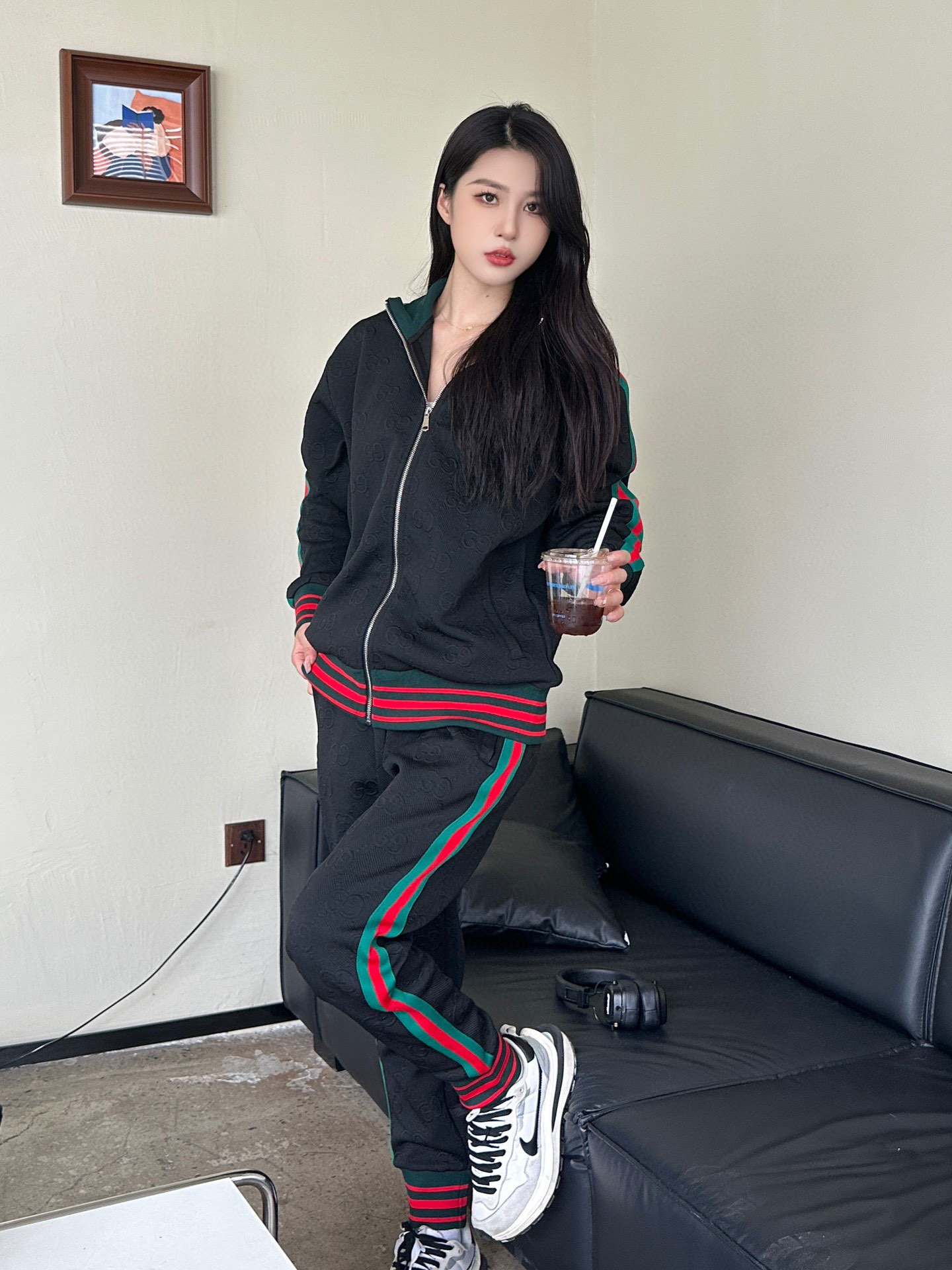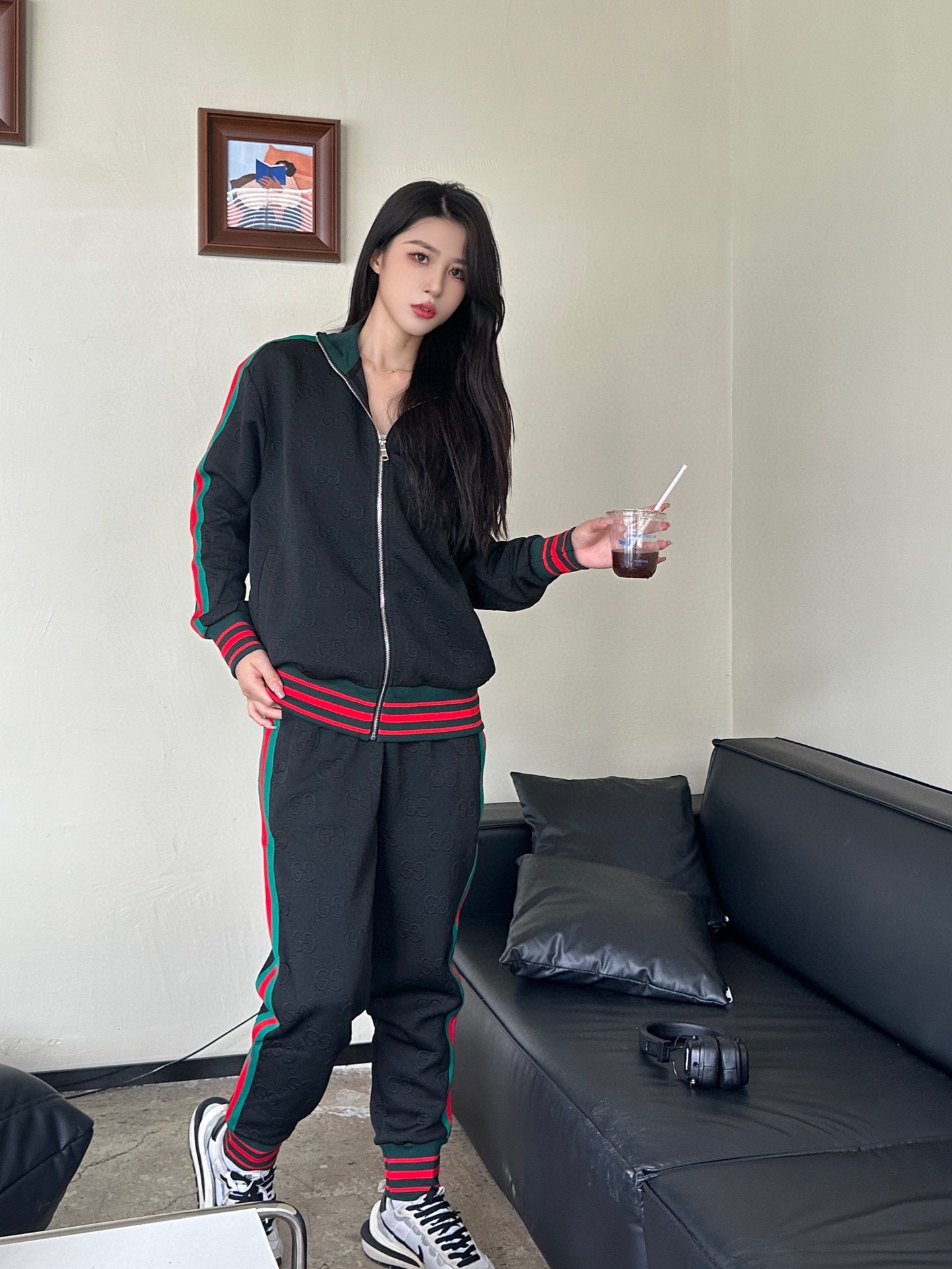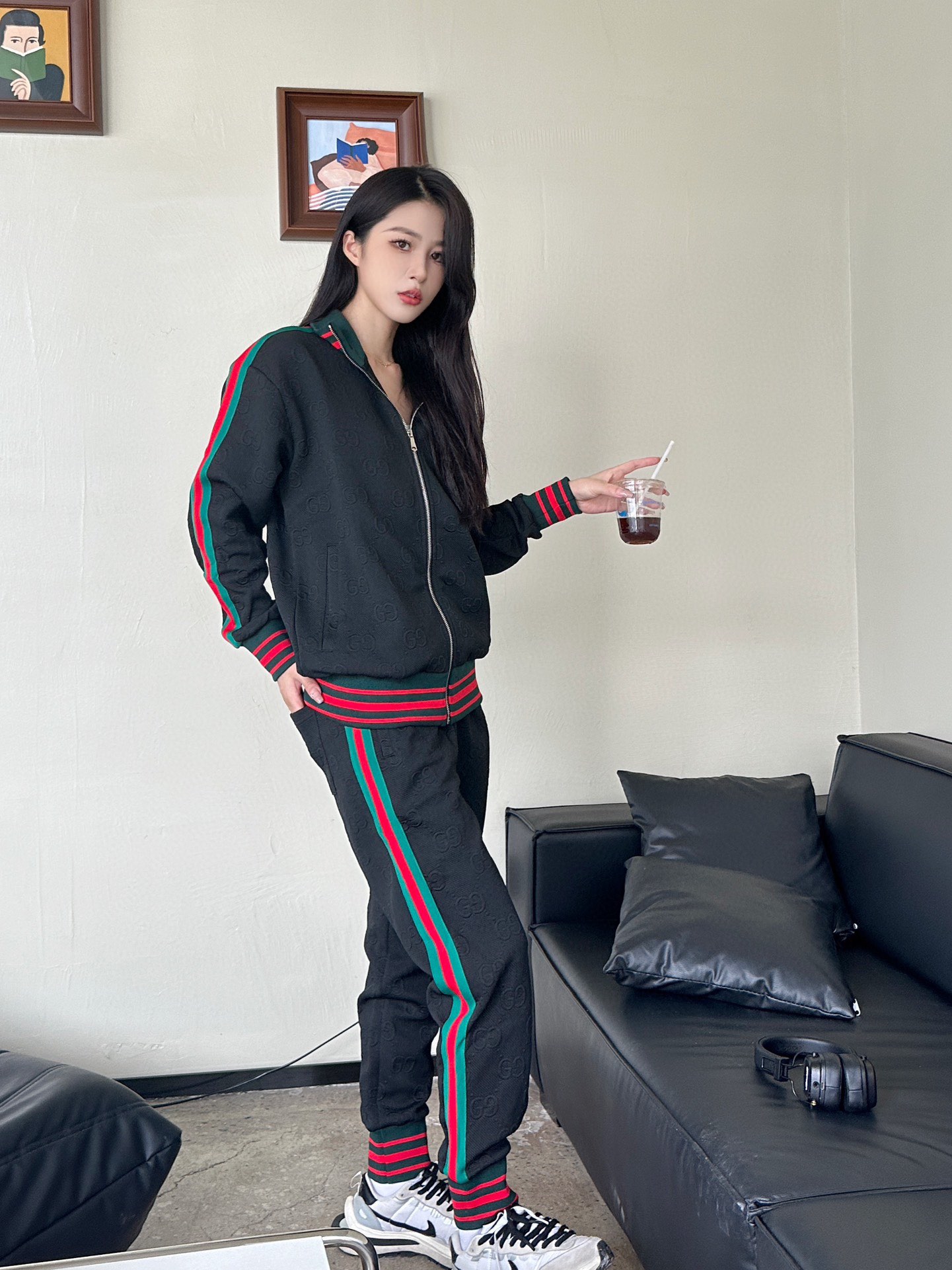 模特上身效果 Gucci/古驰 24SS 双G织带套装休闲长裤