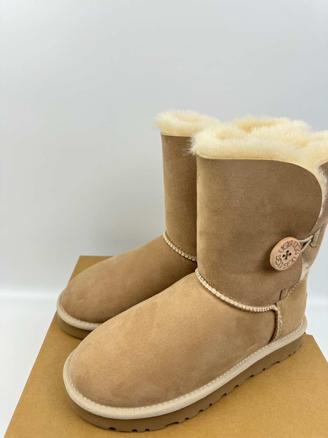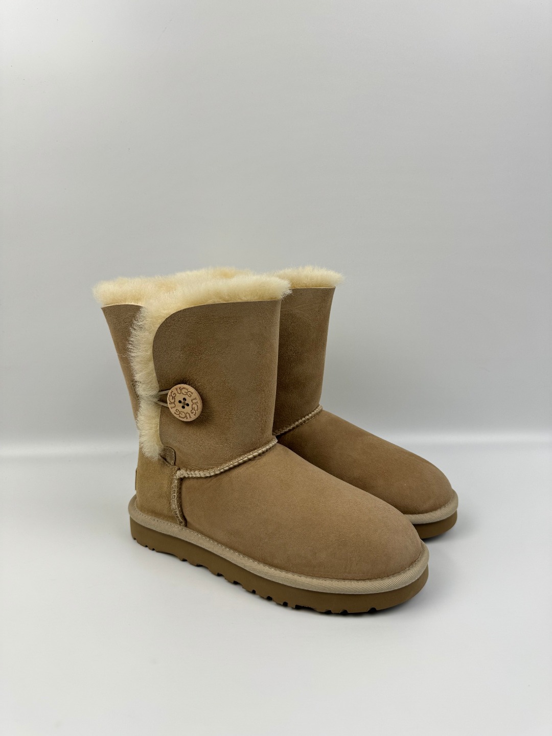 💰P240 本地自取 支持放店 UGG Bailey Button II 贝莉纽扣2.0 沙色 秋冬羊皮毛一体雪地靴 顶级品质 羊皮毛一体高品质 鞋头到鞋垫真羊皮毛一体 独立原版开发大底 羊绒鞋垫 采用TPU模压定型翻毛皮鞋面材质 内嵌人造卷曲羊毛毛绒里衬和选用 鞋身材质 防泼水涂层翻毛皮鞋面 17毫米UGGPURE™植入式羊毛内底 轻便防滑舒适橡胶外底 独立外盒包装 货号:1016226 尺码: 35 36 37 38 39 40