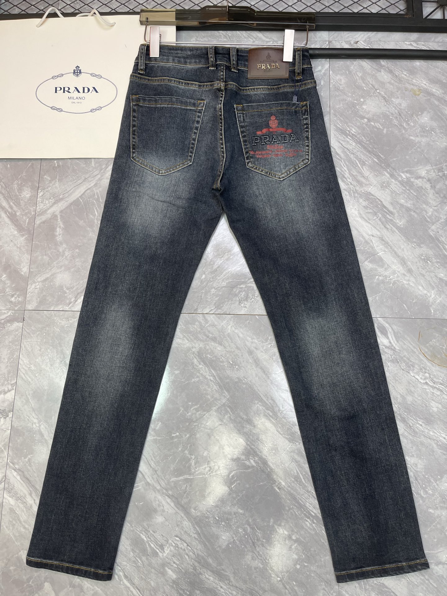 P195 【普拉达】2️⃣0️⃣2️⃣5️⃣秋冬新款男士修身小直脚牛仔裤🍋刺绣工艺修身弹力裤子 百搭时尚显瘦款🍇高品质时尚男装 剪裁简洁大方利落!码数29—38
