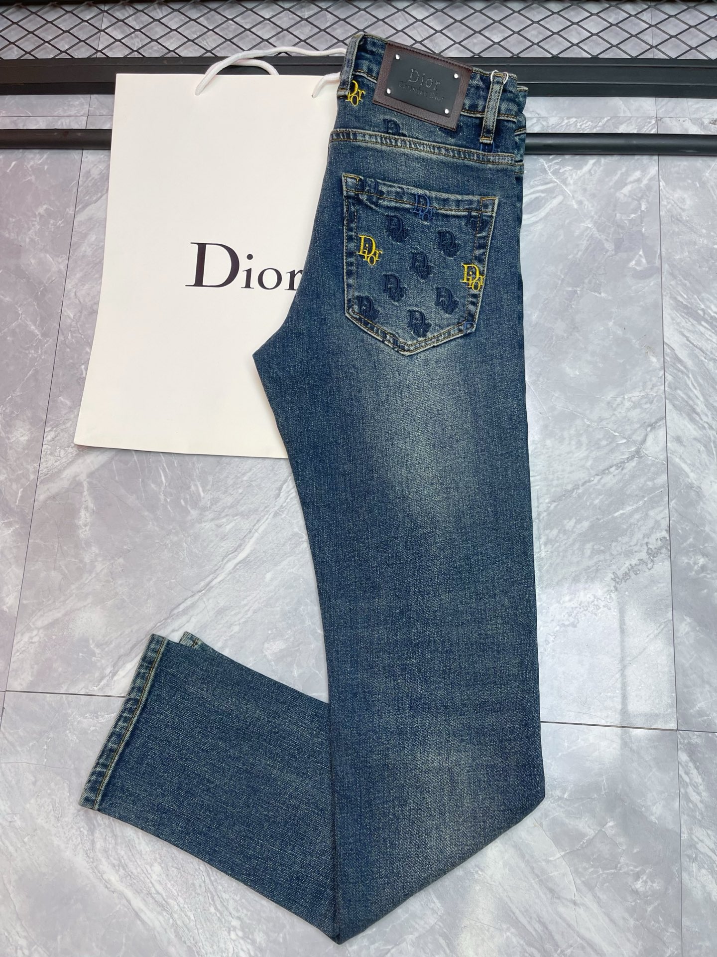 P190。【迪奥】2️⃣0️⃣2️⃣5️⃣秋冬新款男士修身小直脚牛仔裤🍋刺绣工艺修身弹力裤子 百搭时尚显瘦款🍇高品质时尚男装 剪裁简洁大方利落!码数29—38