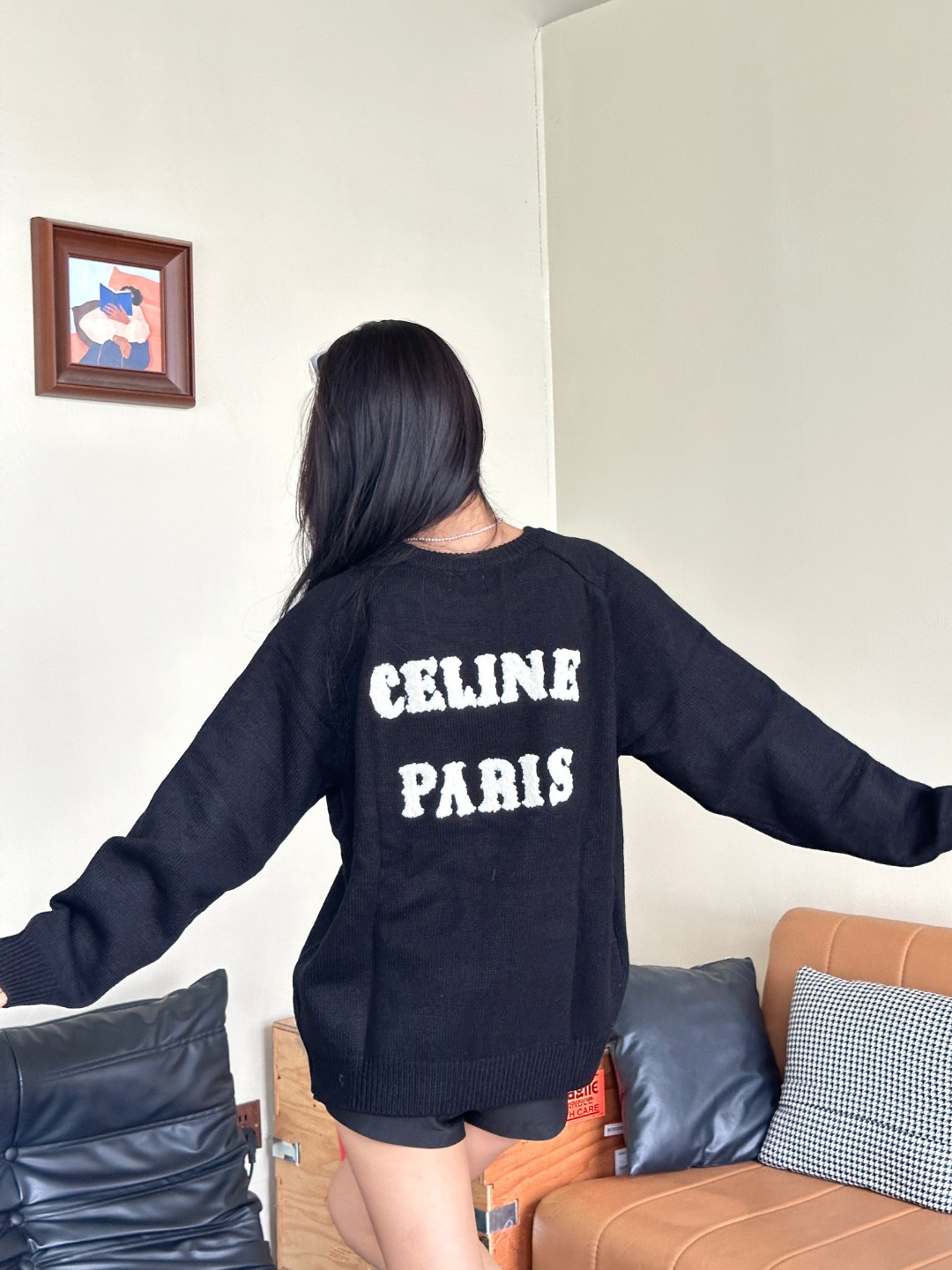 CELINE赛琳 凯旋门及后背字母毛巾绣圆领毛衣 上身效果#