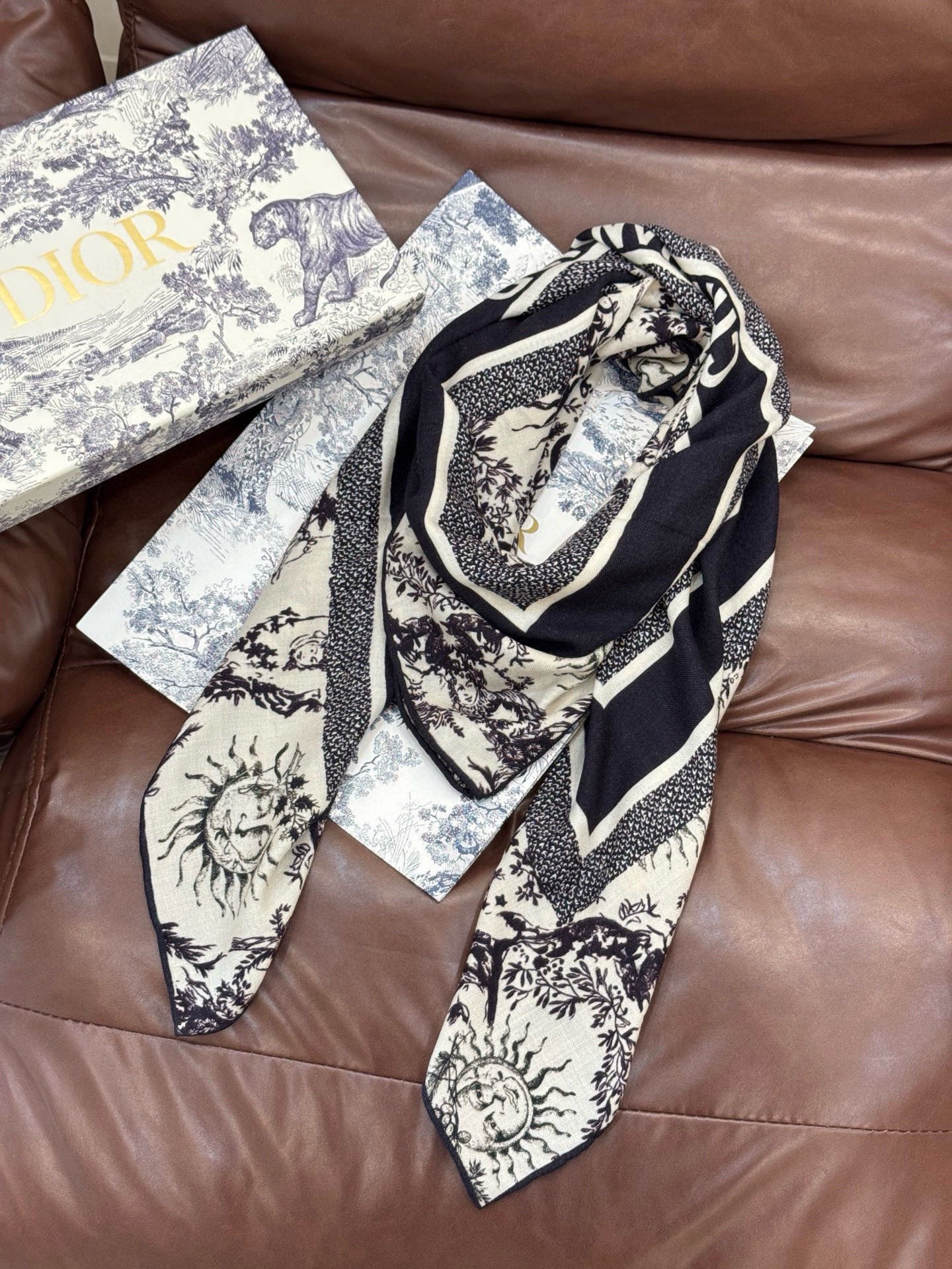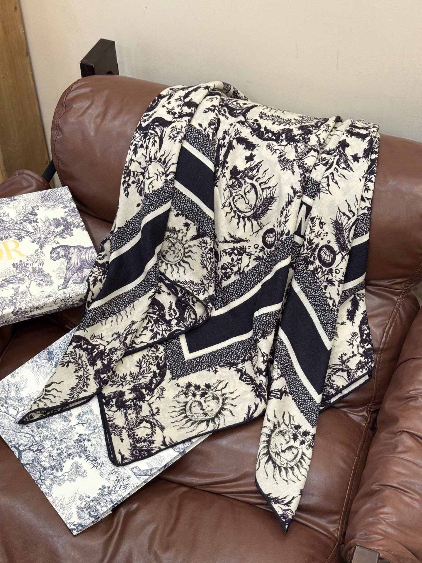 P225 Dior 140丝绒双面同色印花披肩 这款 Dior 丝绒披肩以彼得罗•鲁福(Pietro Ruffo)设计的Papillon 以优雅而梦幻的设计彰显精美的图案。采用白色和黑色丝绒面料精心制作,手工卷边,点缀以对比鲜明的 Christian Dior 标志提花条形图案。别致高雅,为佩戴丝毛方巾提供更多穿搭灵感,可与该系列的长裤或半身裙搭配,打造精致的经典造型。 白色和黑色面料 Papillon Christian Dior 标志对比鲜明的提花条形图案 手工卷边 30%桑蚕丝70%羊绒 135*135 cm 意大利制造