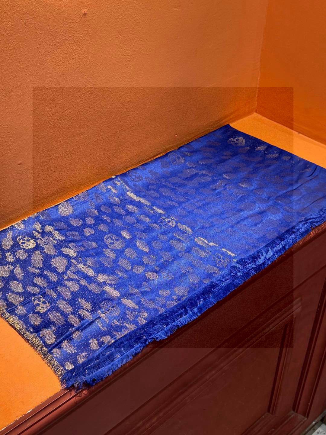 P155 超美的鬼头Logo~防冷气又时髦的单品💋麦昆 新品.永远都不会嫌多的款~❣️MCQ麦昆永恒经典的骷髅头‼️太多明星网红街拍了~时髦和气质兼具,驾驭多种穿衣风格❤️有多实用就不多说了,实物非常精致,色彩很有水头,轻薄的感觉非常舒适.夏天旅游空调房必须来条.冬天更美.手慢无🌟 方巾🎀规格:140cm