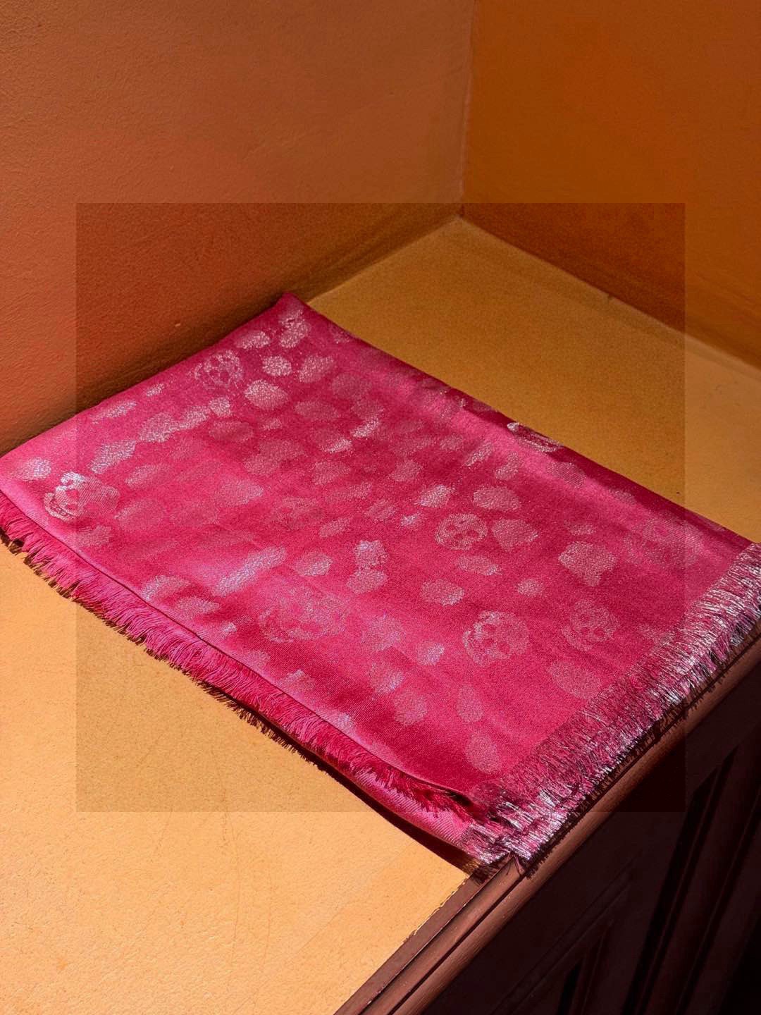 P155 超美的银色鬼头~防冷气又时髦的单品💋麦昆 新品.永远都不会嫌多的款~❣️MCQ麦昆永恒经典的骷髅头‼️太多明星网红街拍了~时髦和气质兼具,驾驭多种穿衣风格❤️有多实用就不多说了,实物非常精致,色彩很有水头,轻薄的感觉非常舒适.夏天旅游空调房必须来条.冬天更美.手慢无🌟 长巾🎀规格:200*70cm。