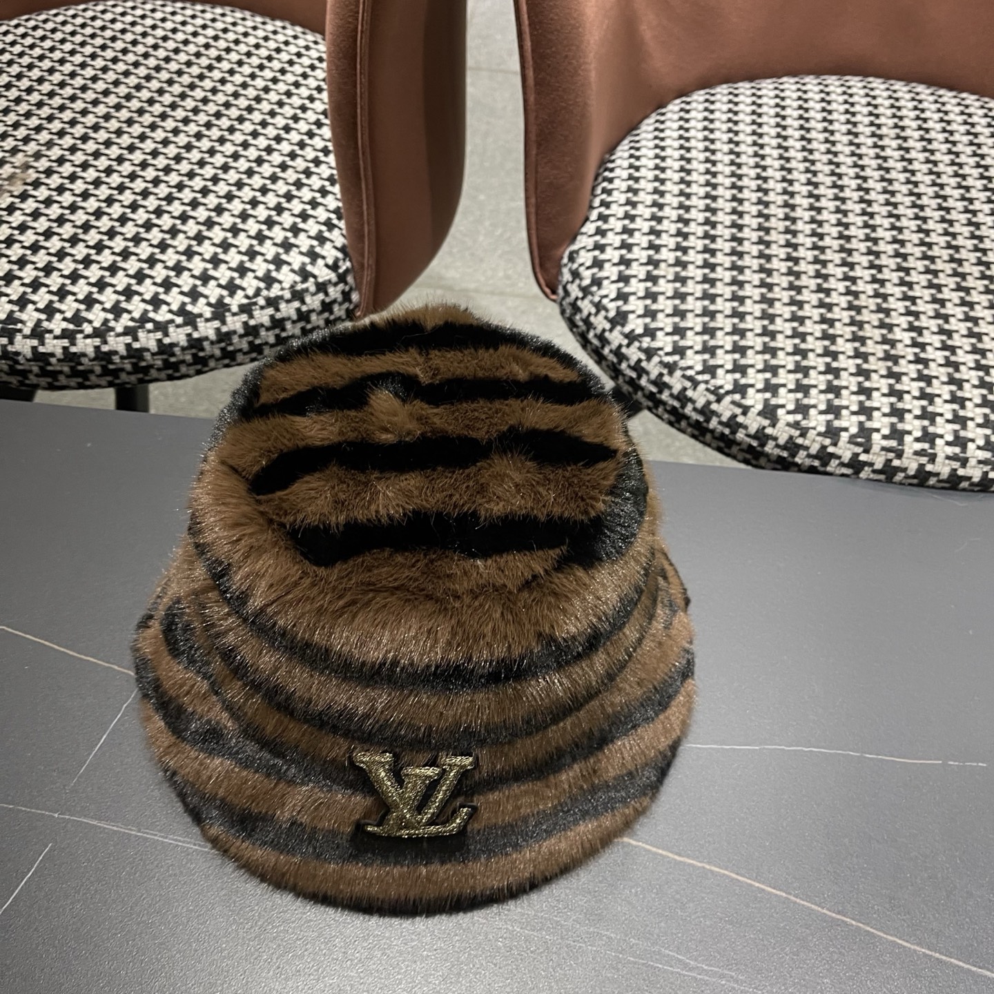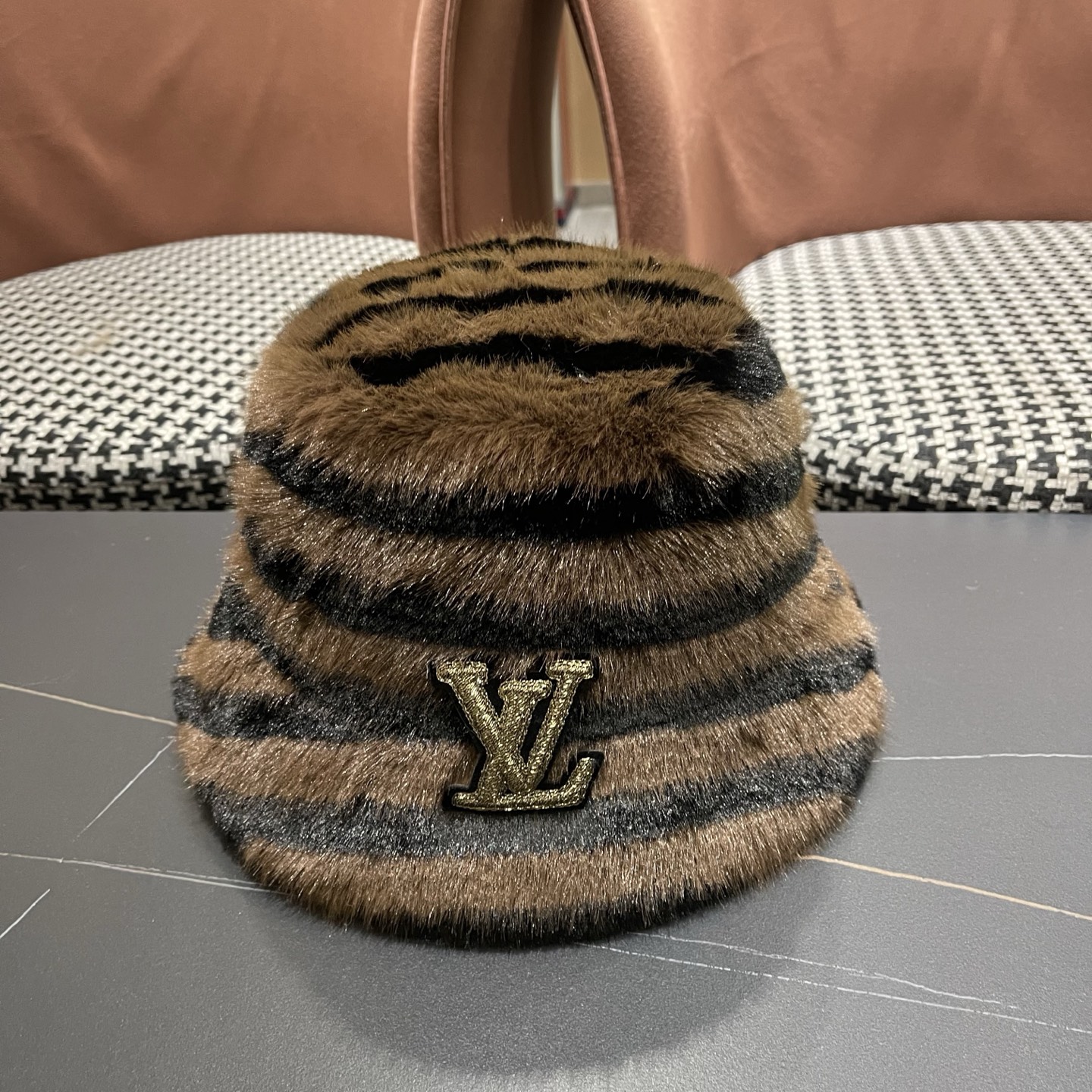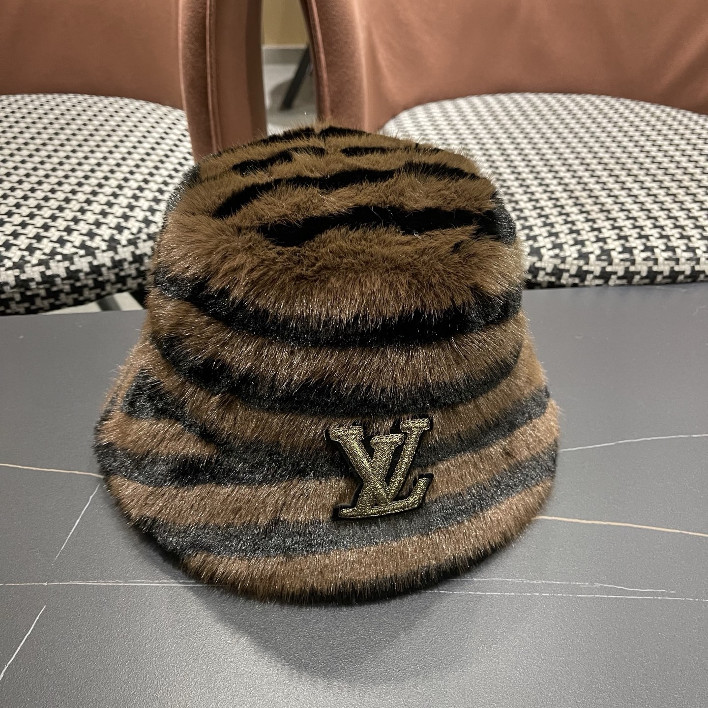 P115 Lv路易威登 斑马纹毛绒绒复古渔夫帽秋冬季加厚 保暖帽子女韩版潮时尚百搭盆帽