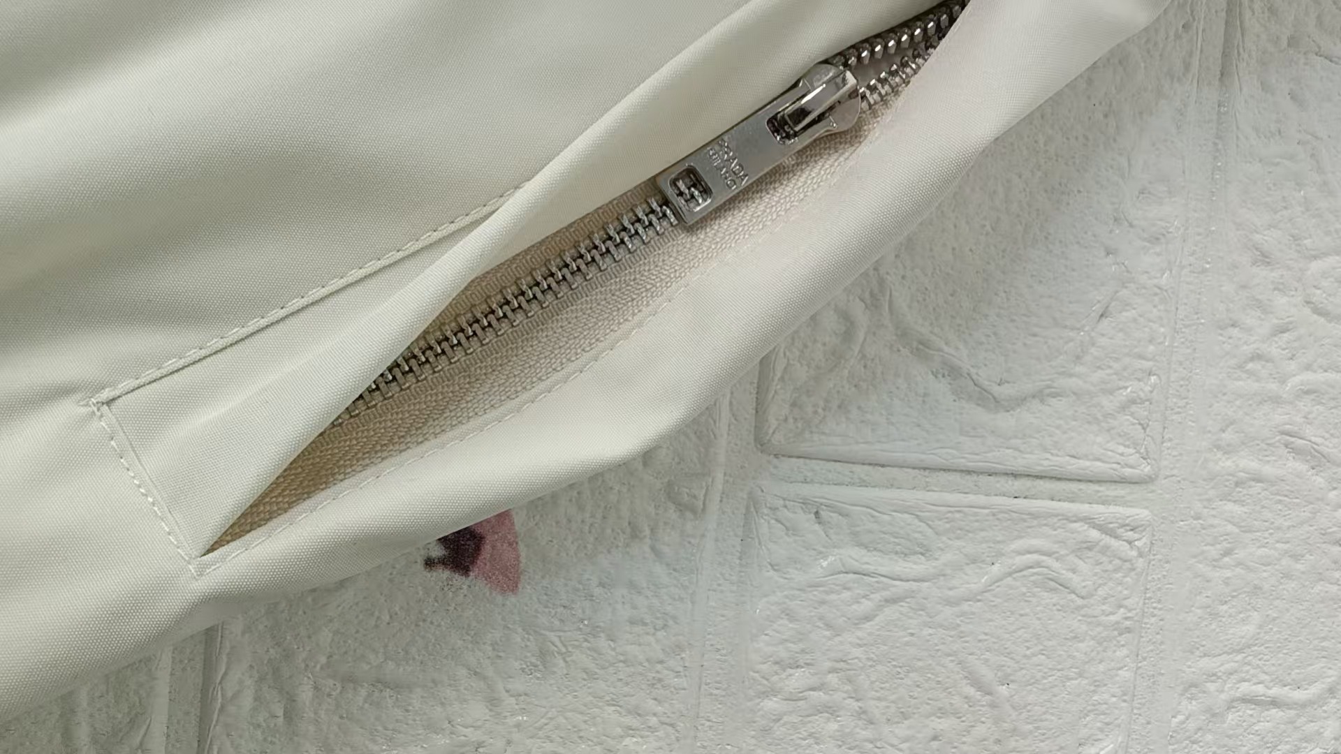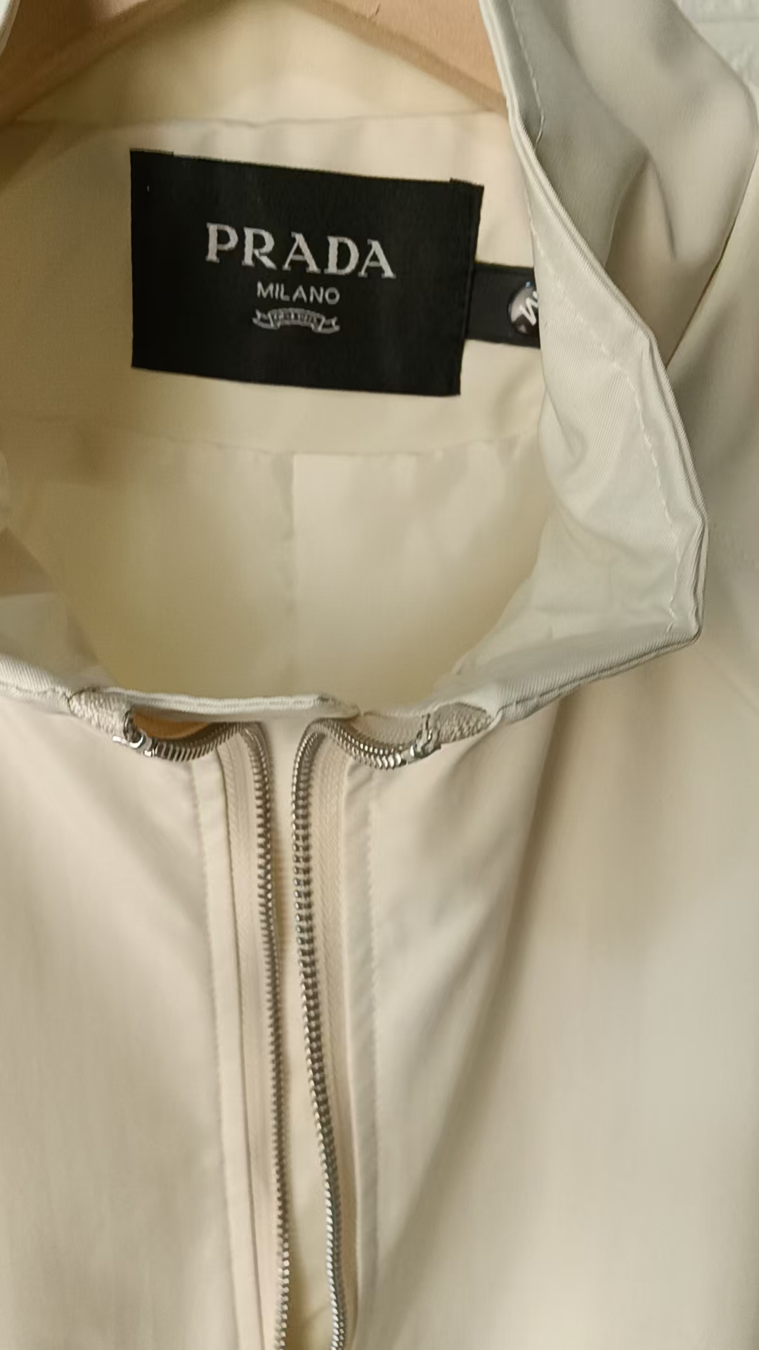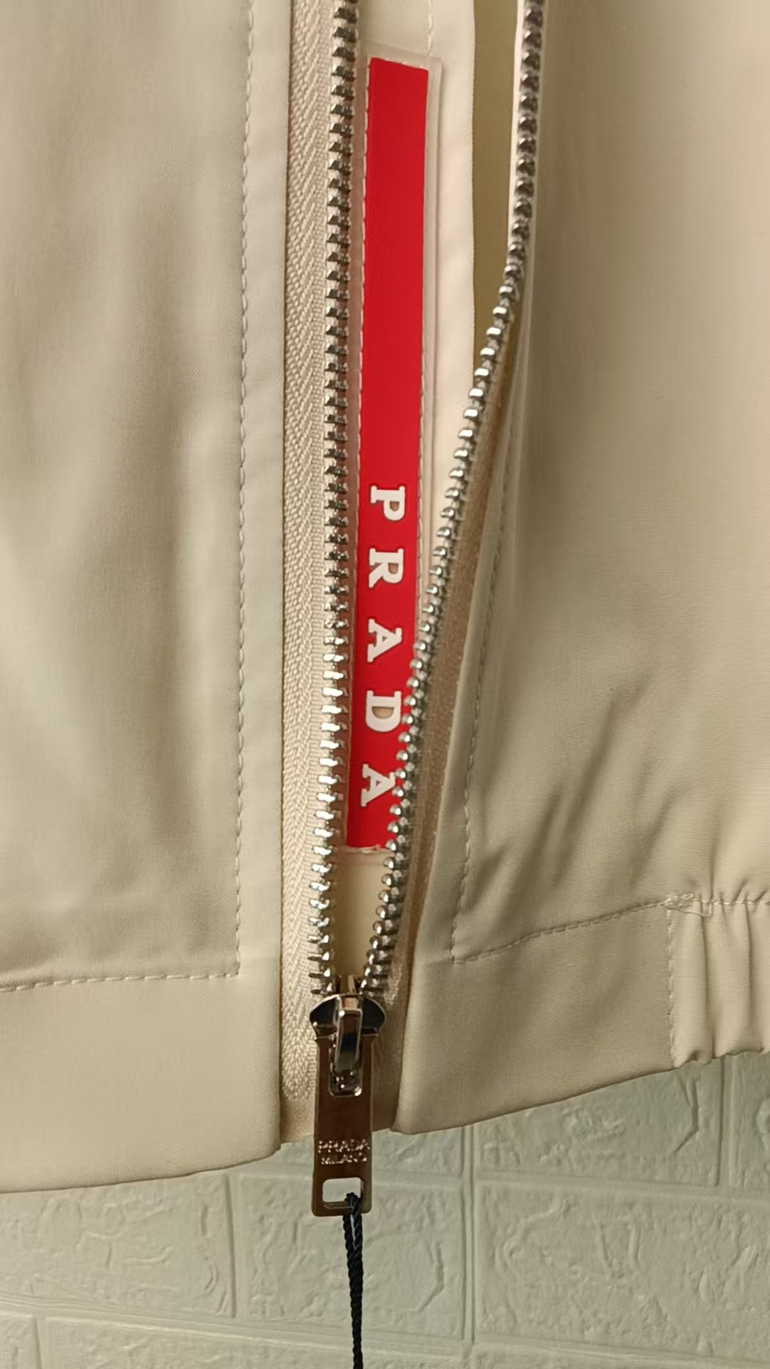 P270 PRADA普拉达立领夹克外套,春秋必备,时尚百搭,立领设计,品牌字母拉链,经典黑色和米白色两款可选。面料舒适,内里光滑,上身有型超帅气,适合多种场合 颜色:米白色 尺码:S码100-120斤,M码120-140斤,L码140-160斤,XL码160-180斤