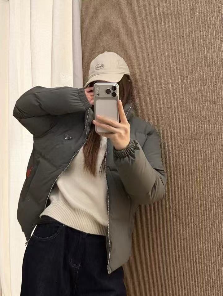 #Prada/普拉达 三角标立领羽绒服上身效果