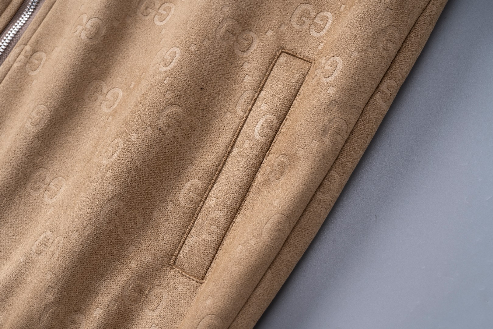 P255 🌸 🌸🌸 古驰Gucci❗ ❗ 压花➕仿皮绒 秋冬新款男装休闲夹克外套❗经典的标识进行别具一格的创新演绎,契合了当季最新的设计理念,辨识度颇为鲜明,简约卡其色设计,年轻活力,风格配色可根据实际场景进行自由穿搭,满足于常规正统且包容所有场合的的着装需求,出挑的印花面更适用于出街造型,辨识度鲜明,尽显都市活力色彩,且塑造性和实穿性极高! 以面料和工艺为主导的款,公司订制面料,具备防风特性,舒适性与透气性兼备,上身轻便且无负担感,整体细节品质感超强❗ 细节之处尽显匠心工艺,辅料皆为定做,电镀金属拉链及按扣颇为出彩,非常贵奢且高级,做工极为严谨考究,剪裁一流,上身型款十足,轻松驾驭各种身型,穿搭符合过渡季的需求! 颜色:图片色 尺码:M,L,xL,xxL,xxxL