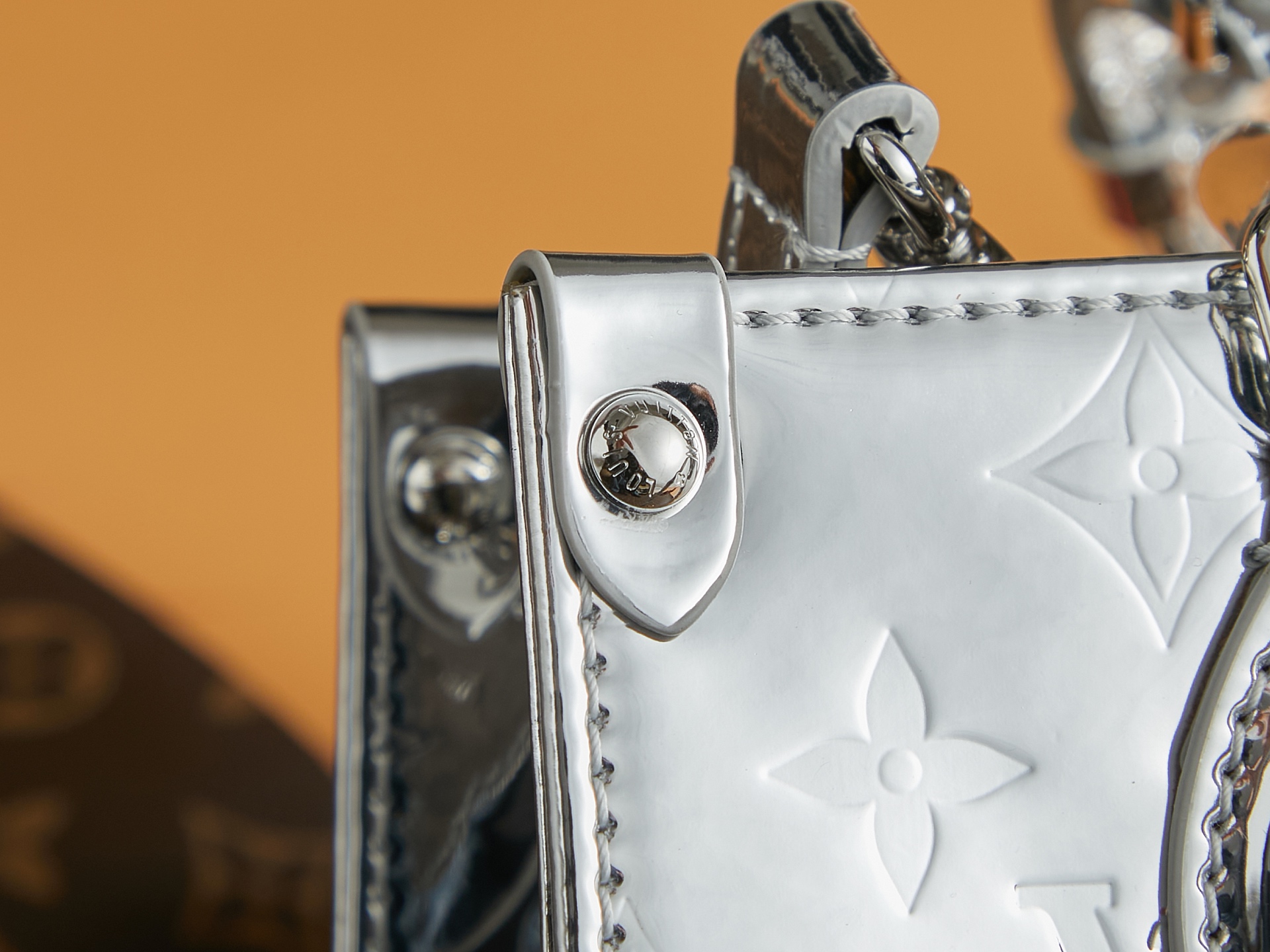 【顶级原单 独家实拍 动态163】M26373银色 本款 OnTheGo 小号手袋以 Monogram Miroir 版本加入 LV Ski 系列。覆膜帆布确保经久耐用。Silver 色调与同色金属件共释熠熠光芒。内置口袋可收纳小书等日常用品。 19 x 11.5 x 25 厘米 (高 x 宽 x 长度) 涂层帆布 涂层帆布饰边 织物内衬(棉和聚酯纤维) 金属件 按扣开合 拉链内贴袋 内贴袋 可收纳 6.7 寸智能手机、耳机、Sarah 长款钱夹、小书、钥匙和口红 肩带:可拆卸,不可调节 包带半长:51.0 厘米 手柄:双手柄