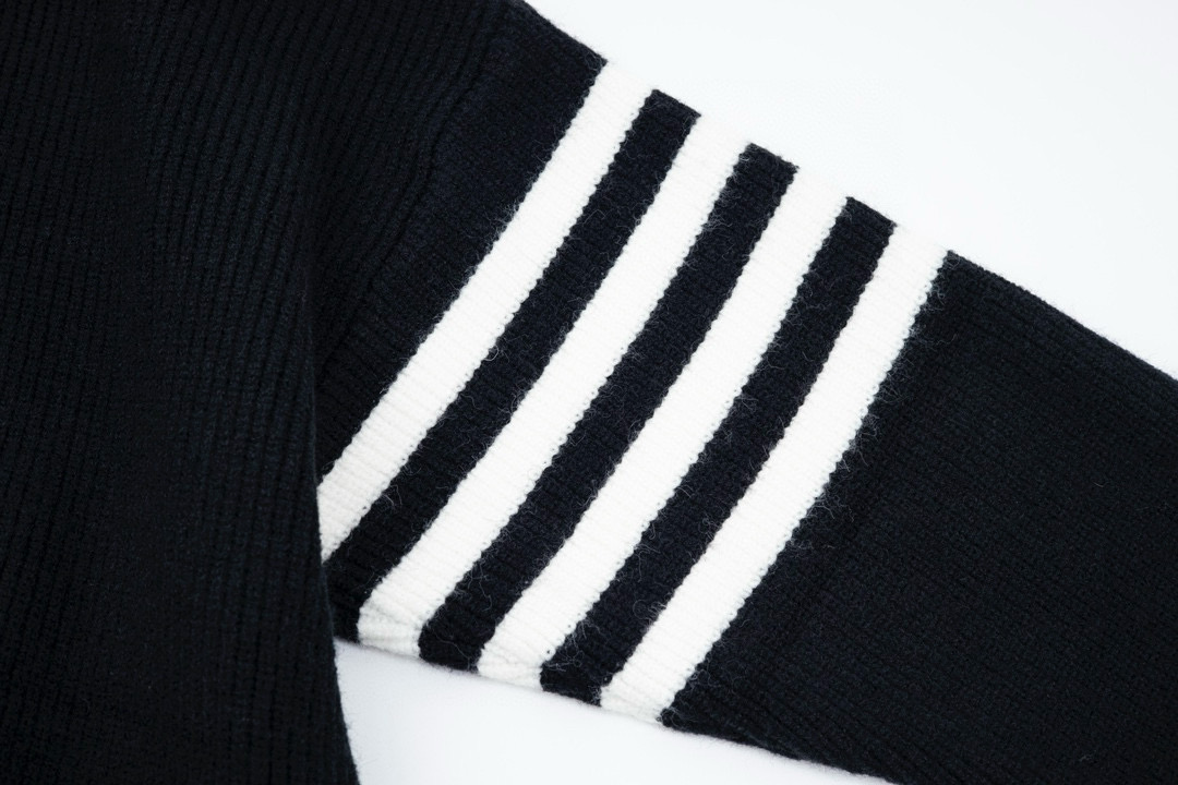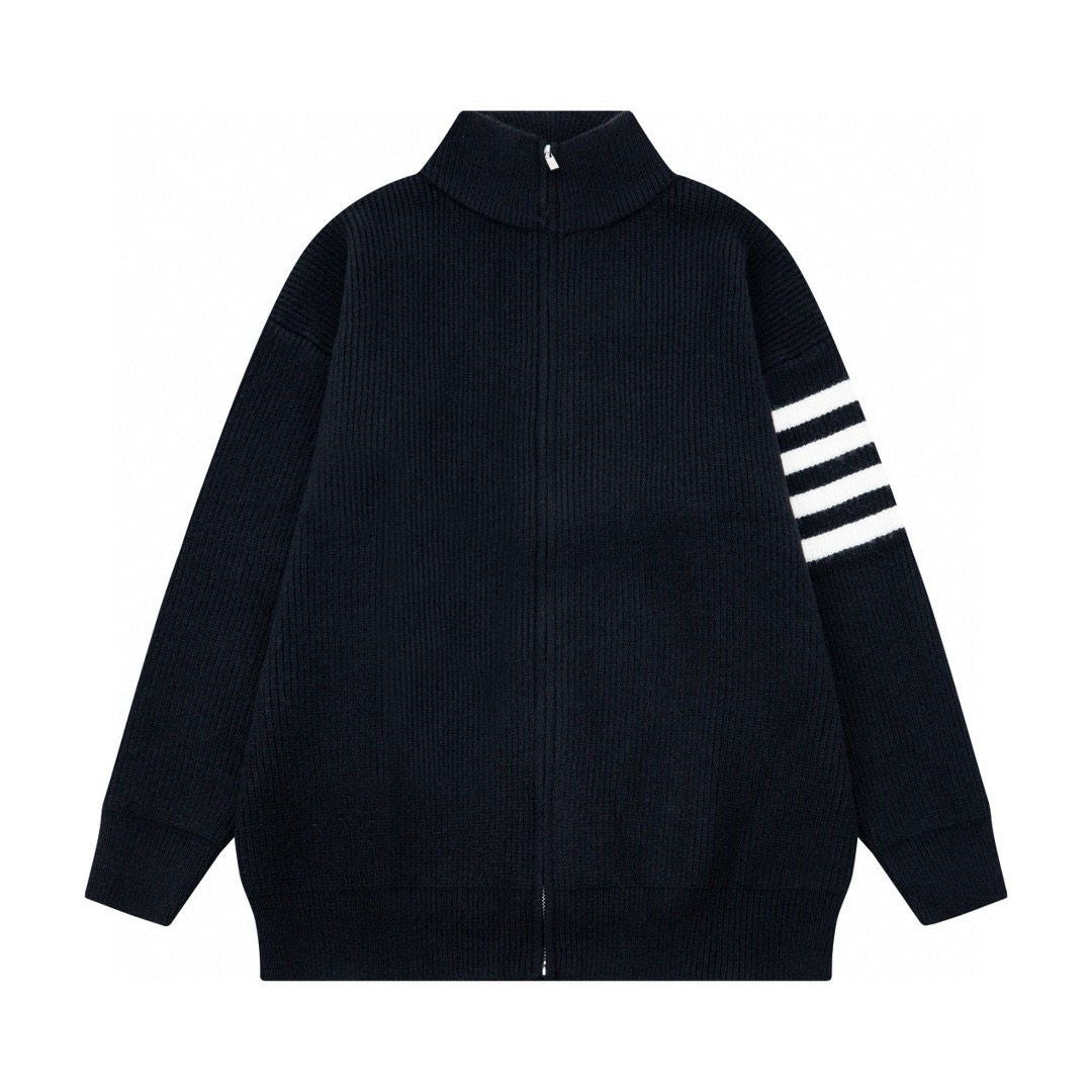 🅿️169 款号:Y223 THOM BROWNE 汤姆TB经典四条杠情侣款针织款外套 纱线精选柔软舒适 不扎人 高达1.7斤的克重 上身百搭好看 很厚重 妥妥的高品质 1:1定制五金拉链纽扣 真正的还原ZP 灰色超级洋气哦 经典的四条杠风格 这个秋天怎么能没有一件TB外套呢 男女都可以穿哦 男生上身也炒鸡洋气哦 小姐姐必备 吊牌 吊粒 水洗 包装袋 全套辅料 颜值相当高 做工超精致 颜色:黑色 尺码:S M L XL