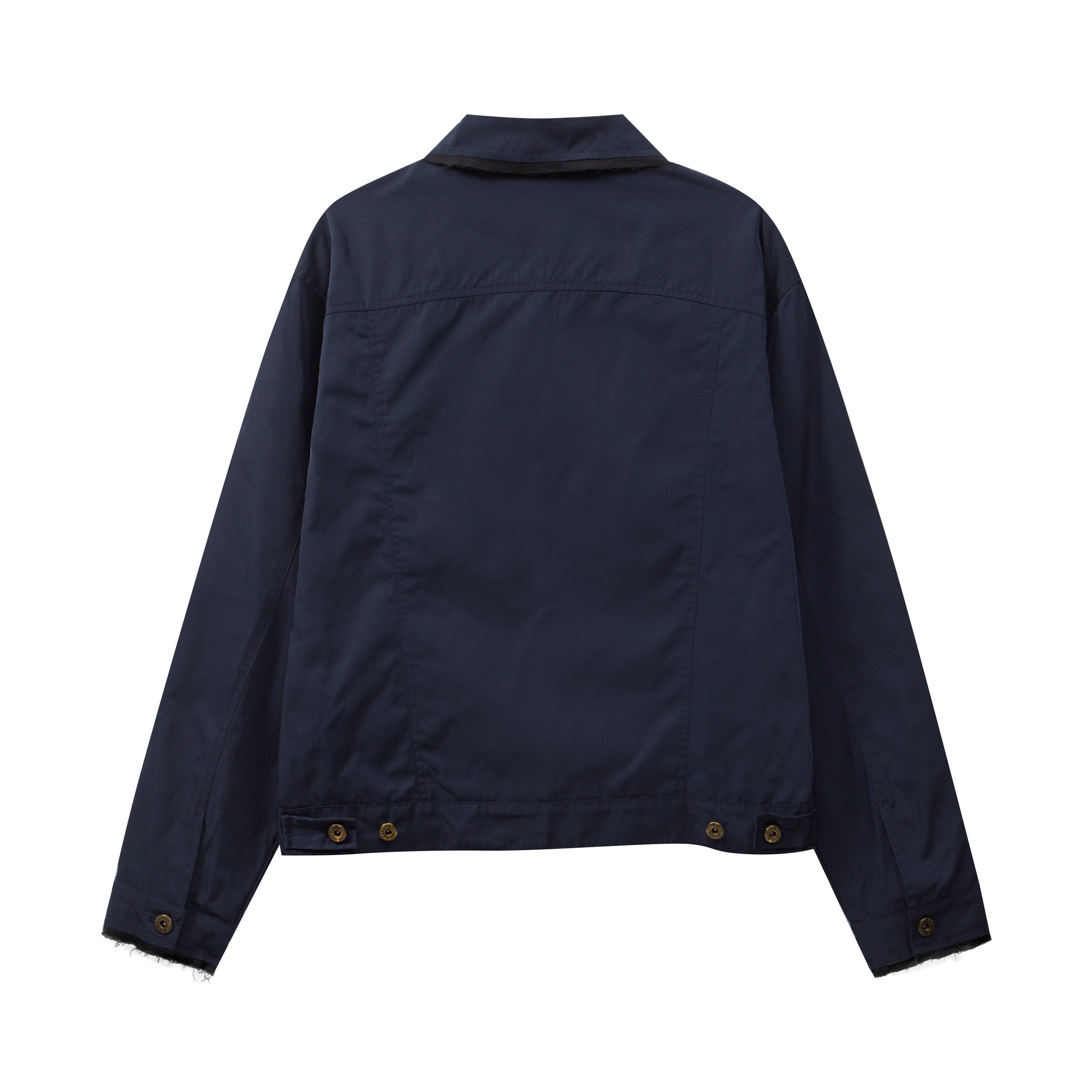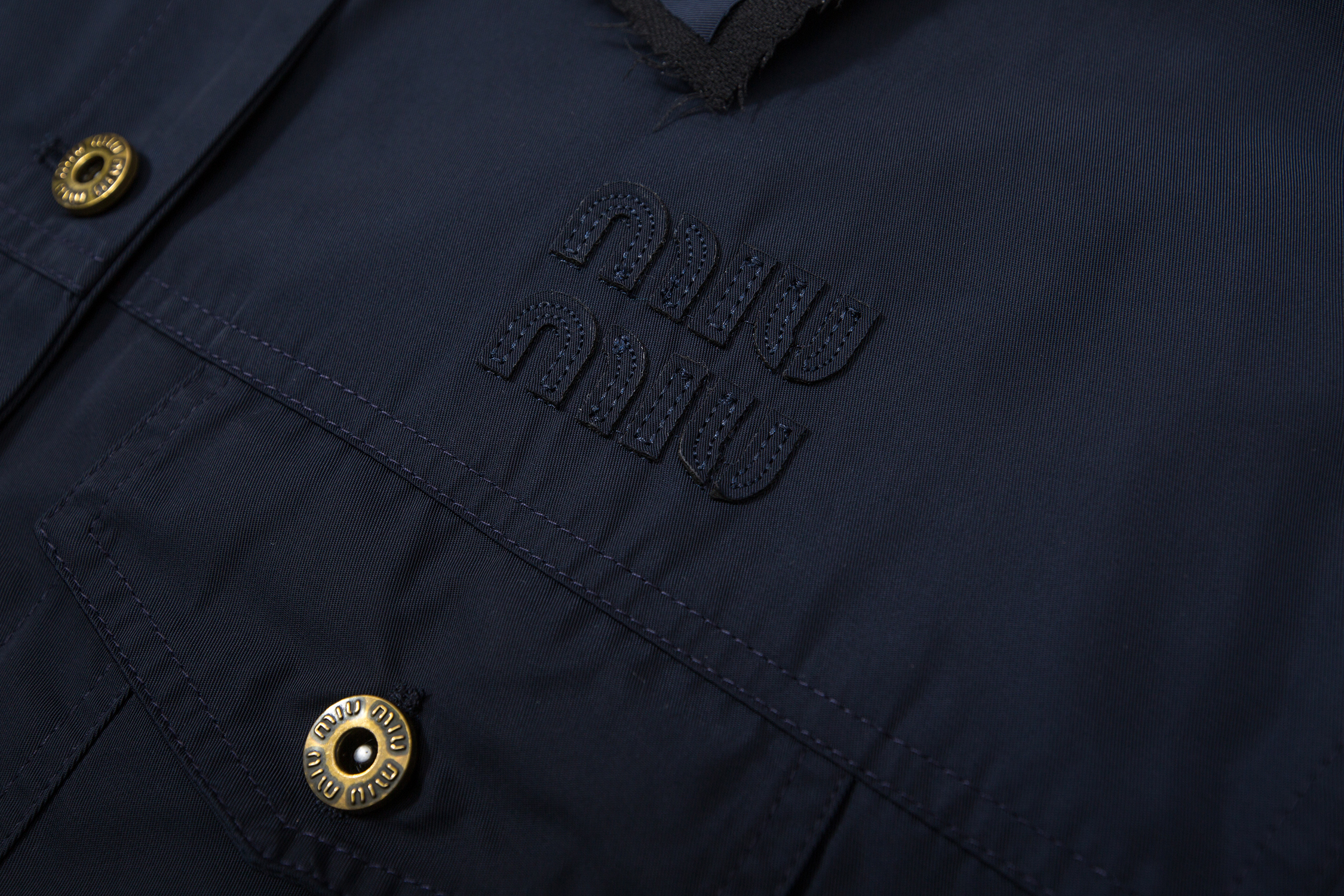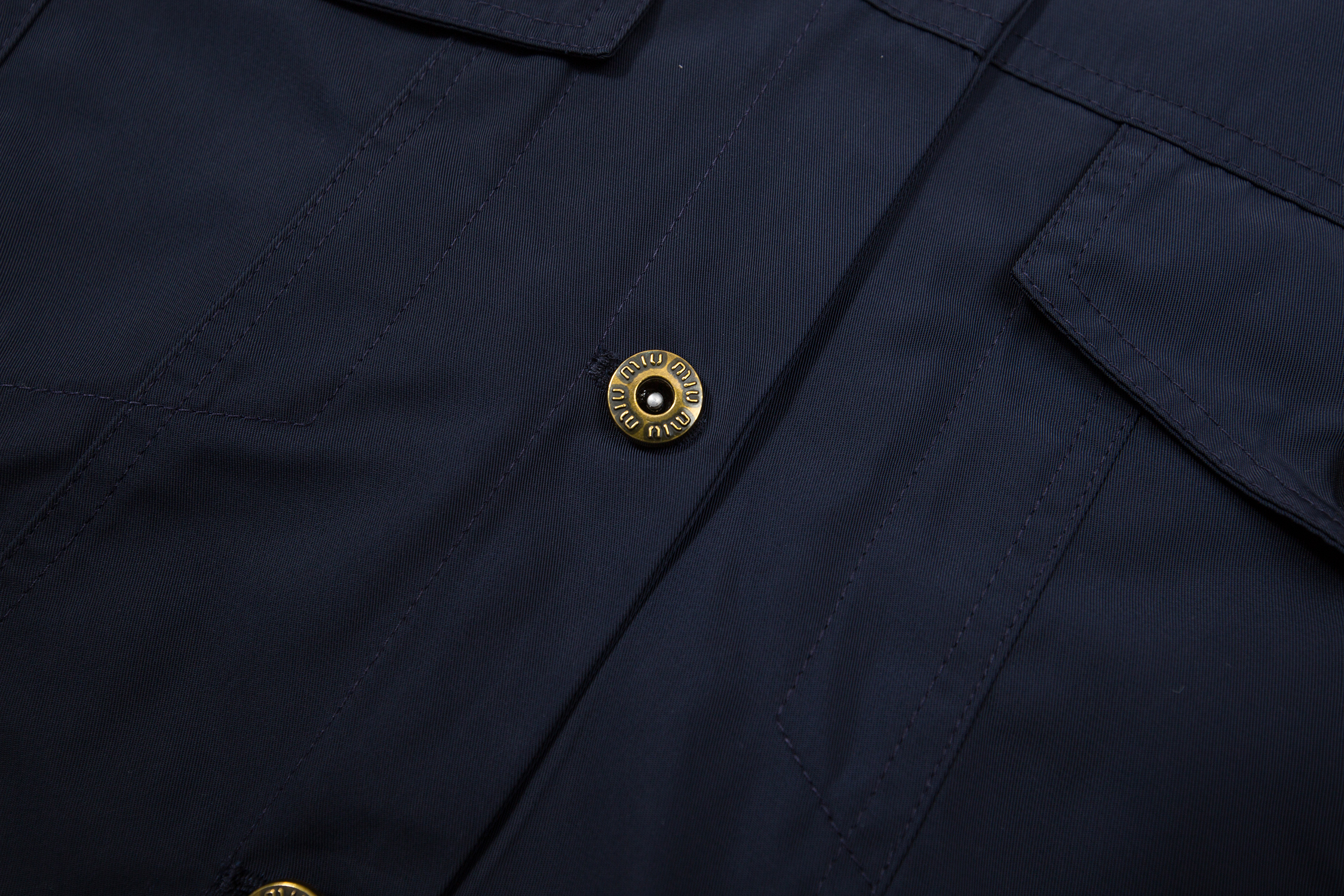 5816#💰185 斜纹尼龙再生棉定制藏蓝色面料 miu miu短款夹克复古纽扣外套 尺码S M L XL