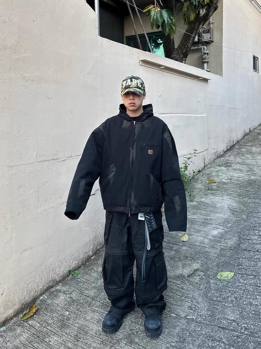🧸Grailz水洗重磅做旧卡哈特风连帽泥染夹克cleanfit工装棉服男外套p225 款号:375 码数:1 2 3 颜色:黑色 这个版就是巴黎泥染加上卡哈特的做旧 结合的很巧妙 整件衣服不让人感觉到生硬,而且还很好搭 面料比卡哈特稍软一点 保留了帆布的粗犷感,让人穿起来没有那种磨的感觉 拉链和四合扣都是YKK的 内里格纹夹棉,御寒能力强,南北方随意驾驭 OS版型,男女胖瘦随意驾驭