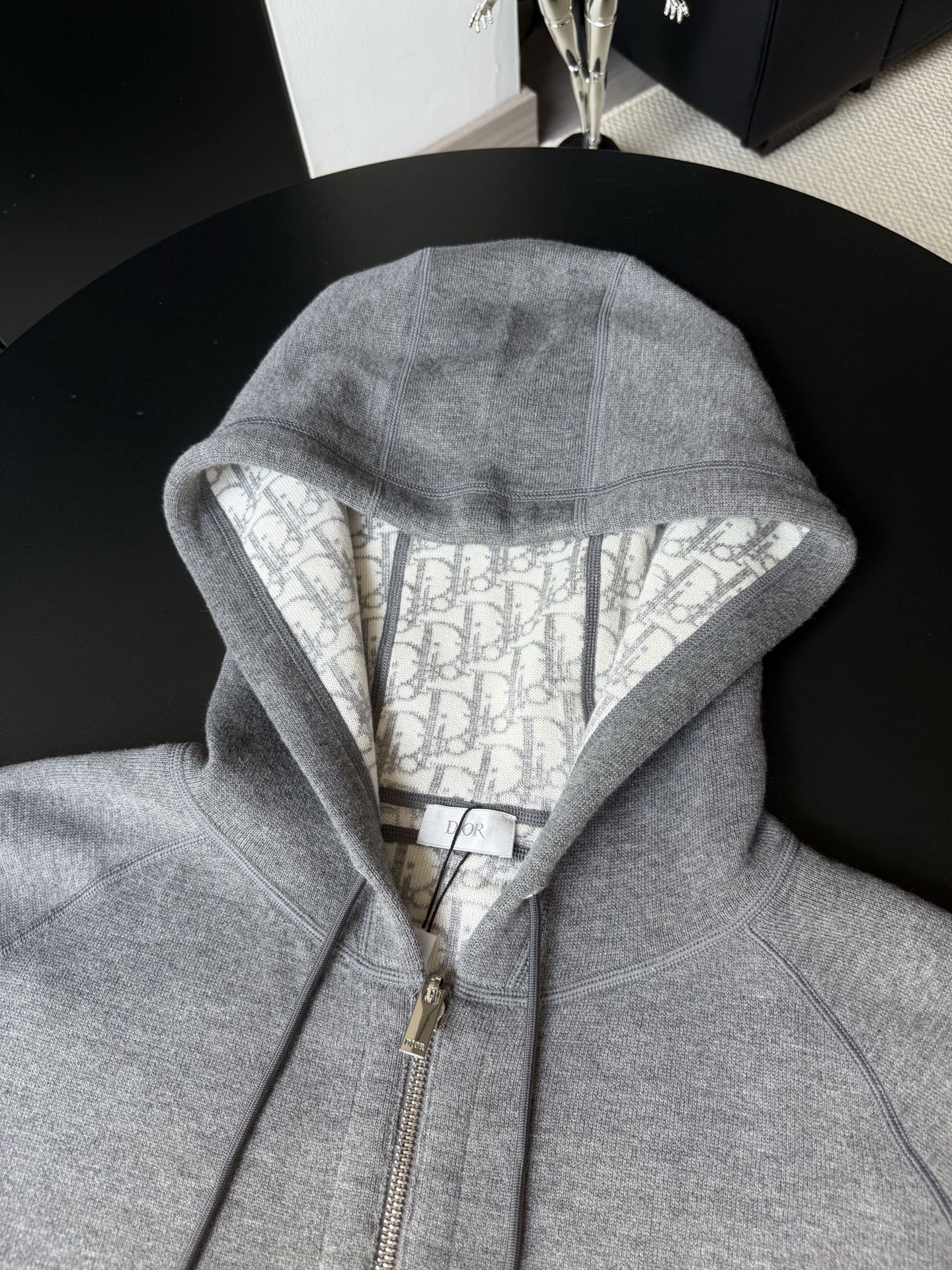 💲325(最高版本双面四口袋) DIOR/迪奥 羊绒老花logo运动针织外套 最高版本 可对比!区别于单面两口袋!细节1:1还原面料采用的是进口羊绒羊毛混纺 双面针织里外一致,手感极为亲肤舒适摸上去非常的细腻,摸起来硬挺有质感 做工精细 懂货的来! 颜色:藏青色 灰色 白色 尺码:S M L XL