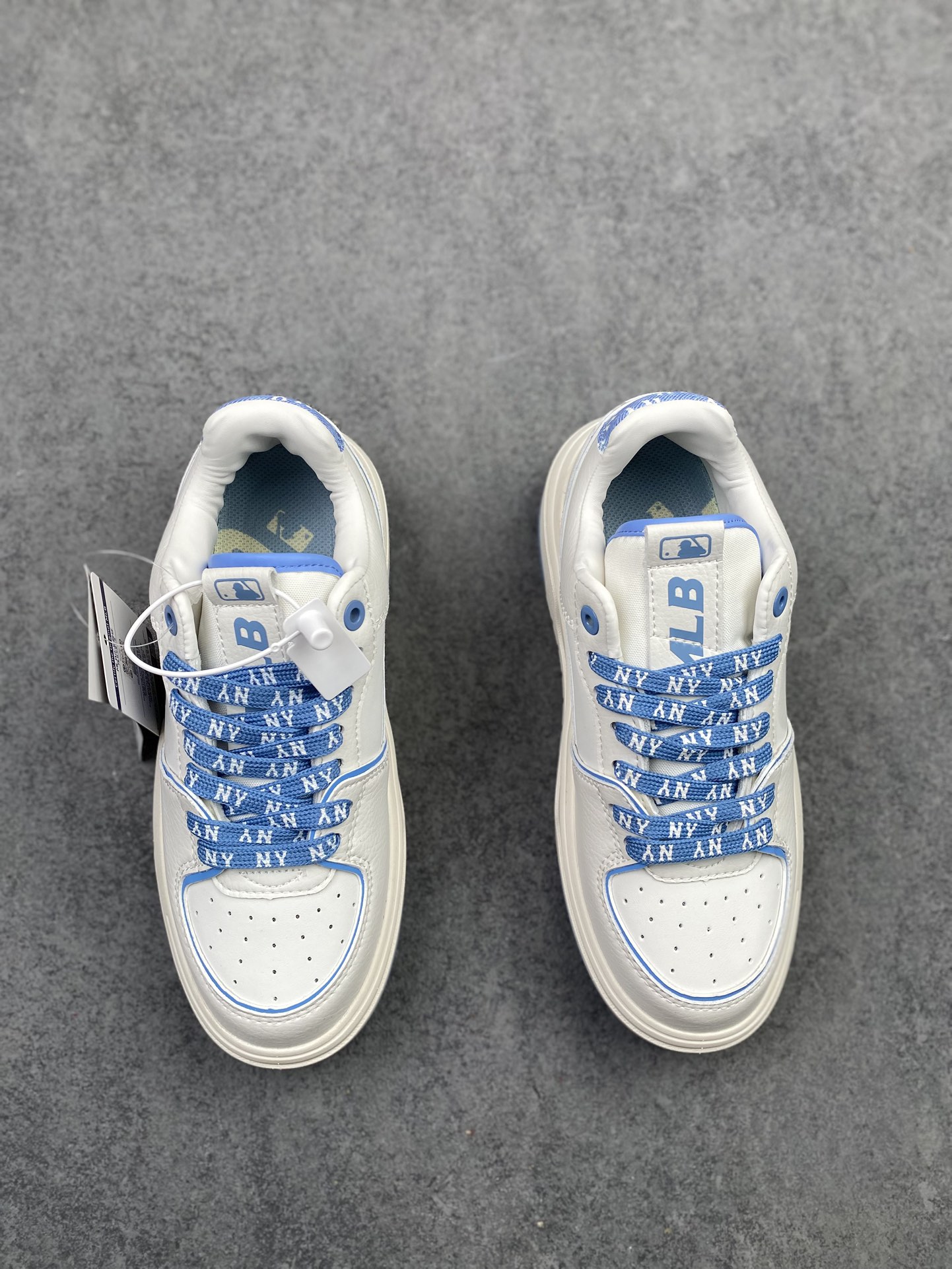 Korea韩国限定!联乘美国榄球洋基队New York Yankees x MLB Chunky Liner Low 学长鞋系列低帮老爹风轻量增高厚底百搭休闲运动板鞋“米白浅蓝牛仔NY大标”3ASXD025N-50BLS